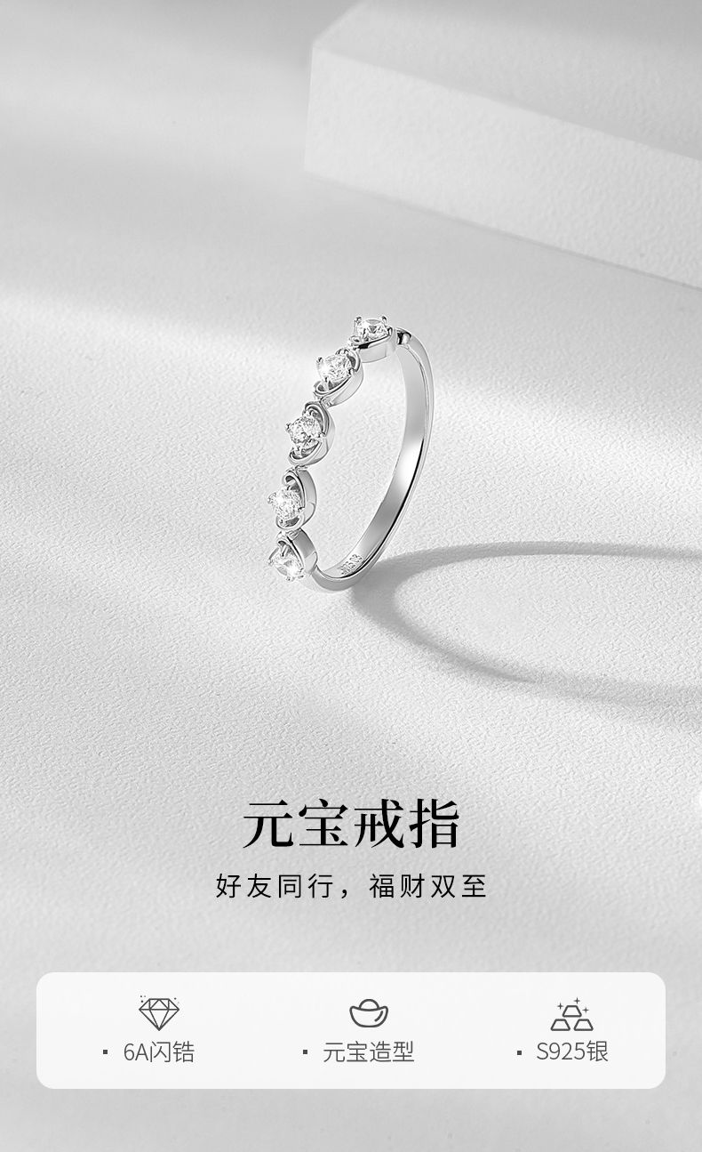 卡蒂罗KADER 元宝女戒 新中式925银闪锆点缀元宝财运环绕好运来简约大气可调节单戒 日常通勤百搭