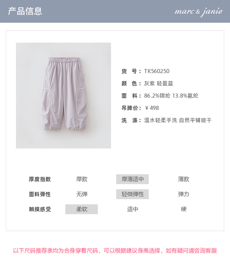 马克珍妮轻氧运动女童工装速干裤2026年春装新款560250