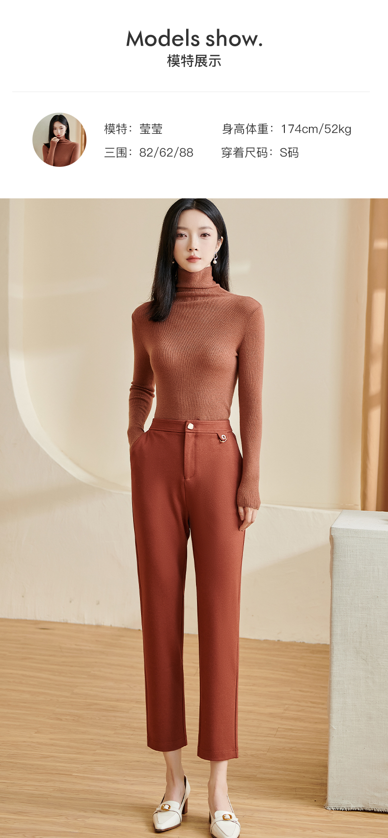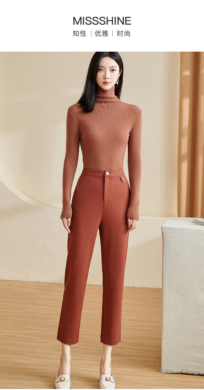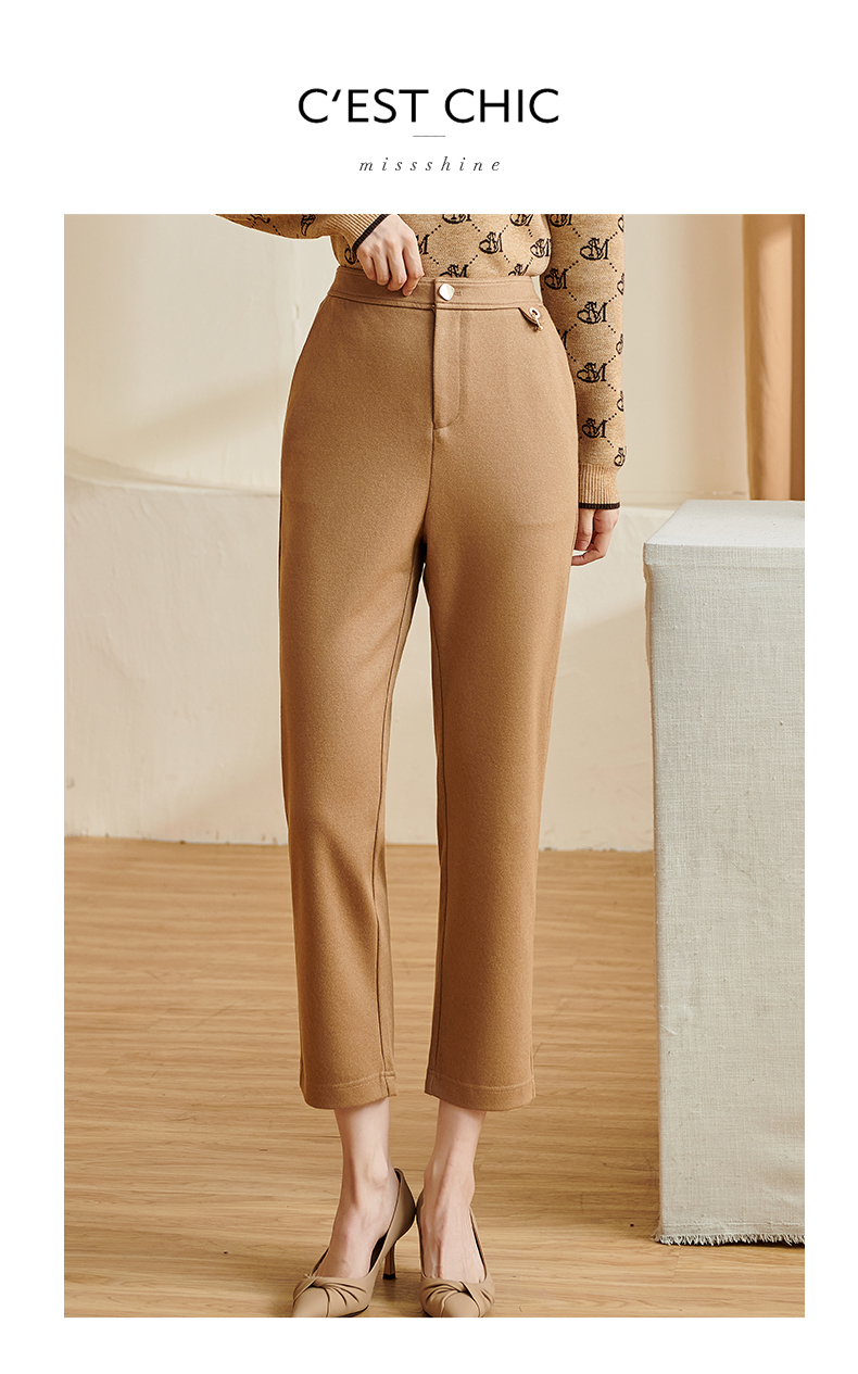 剩S/M/L/XL 米思阳2024秋季新款百搭简约针织休闲裤修身纽扣九分直筒裤子2867