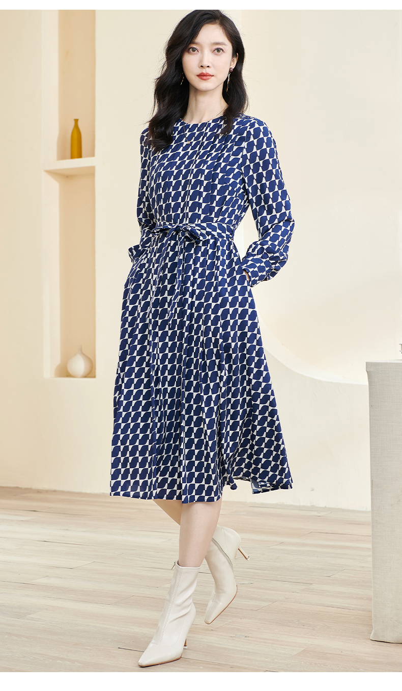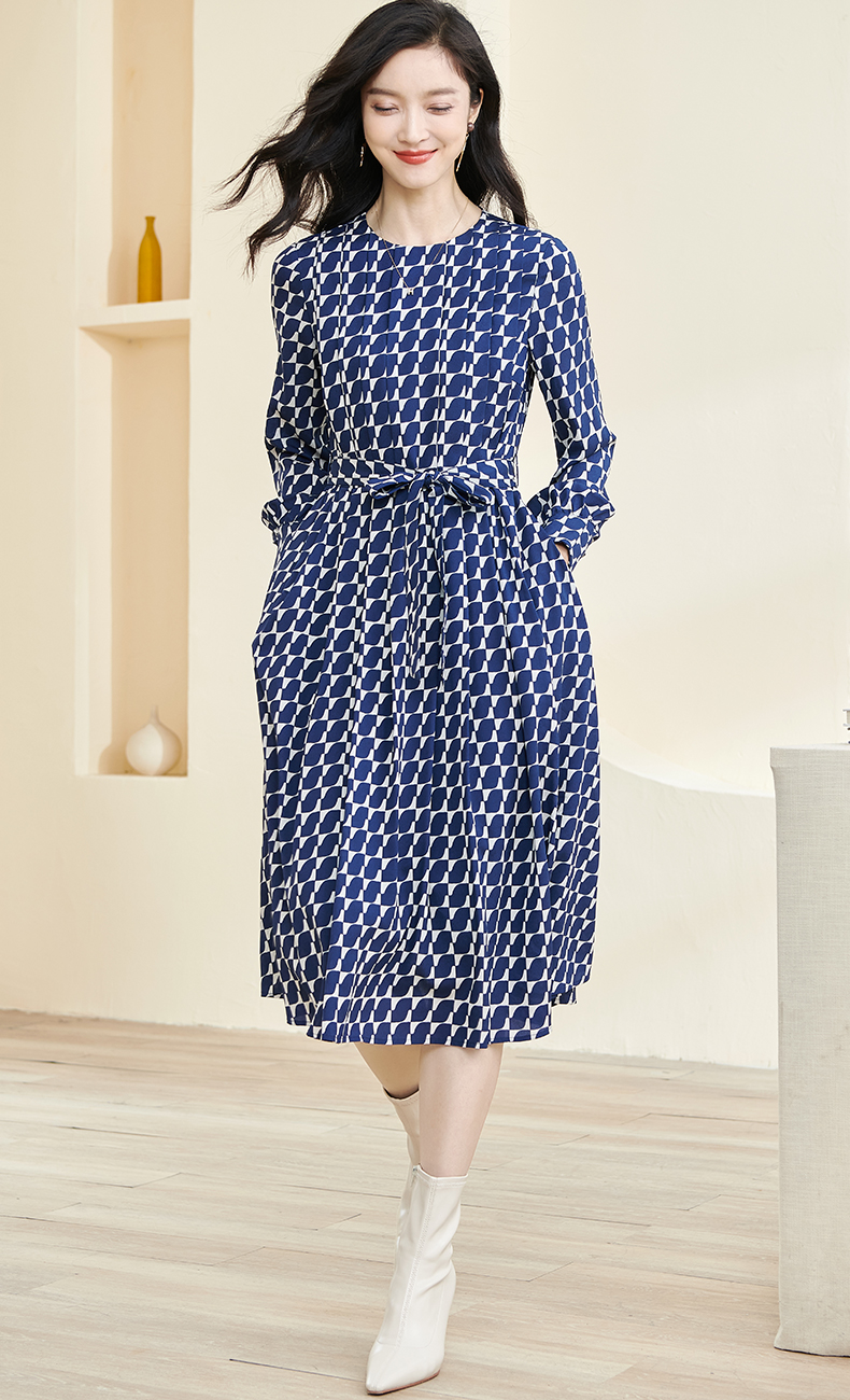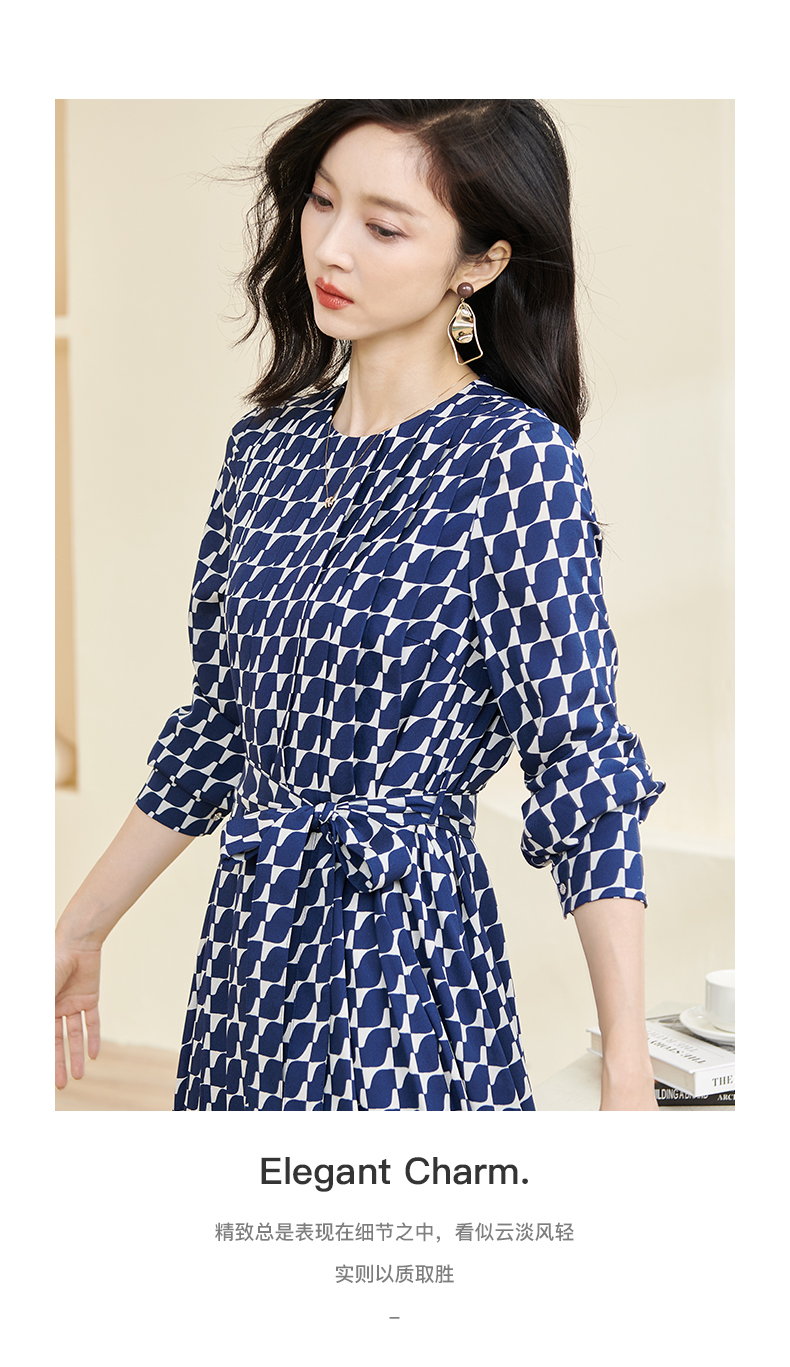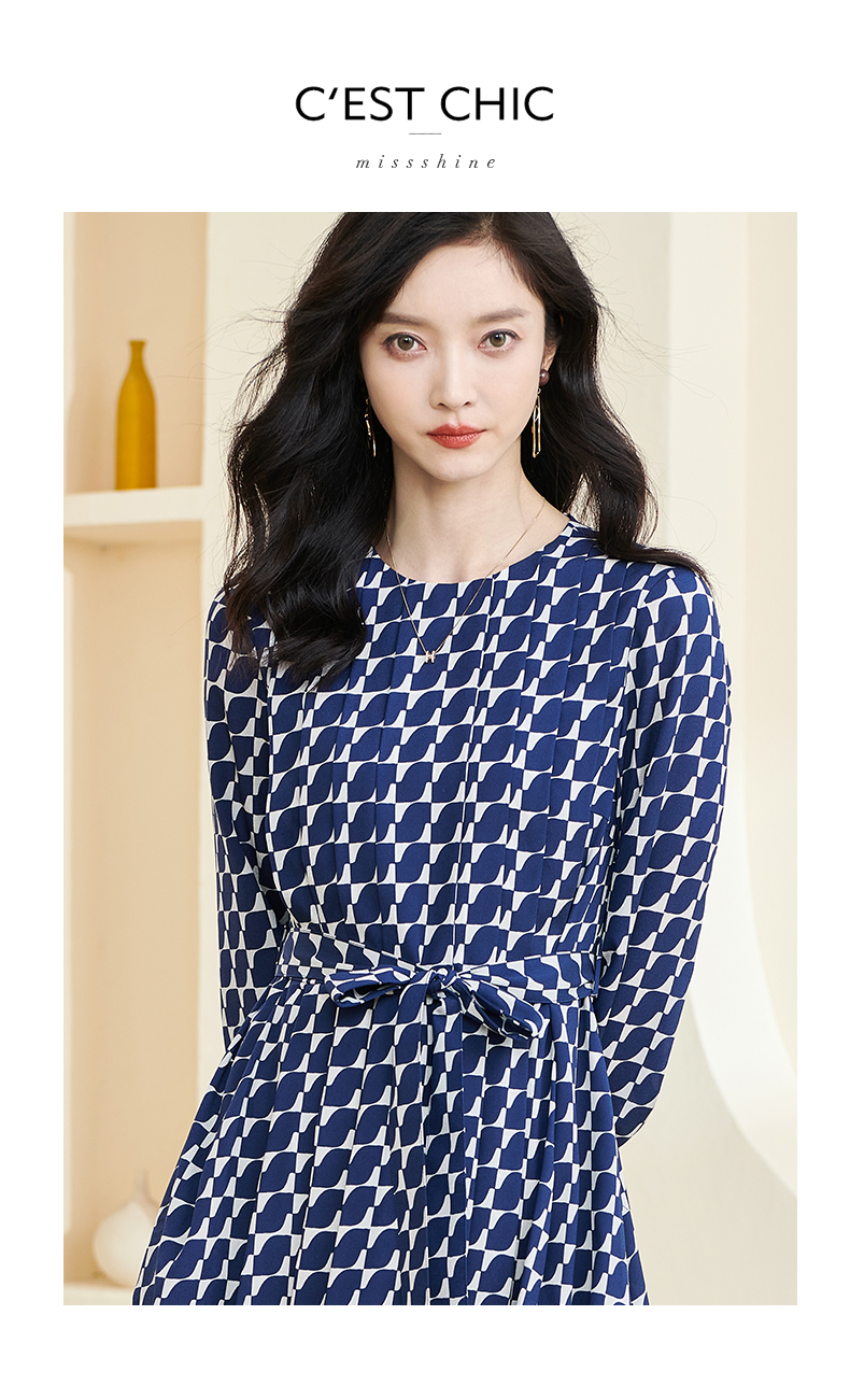 剩S 米思阳2024秋季新款时尚印花宽松长袖大摆裙系带中长款连衣裙2914