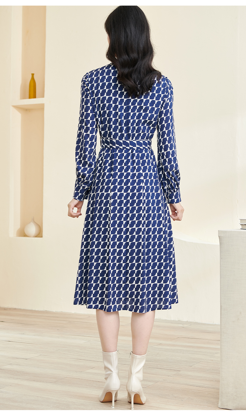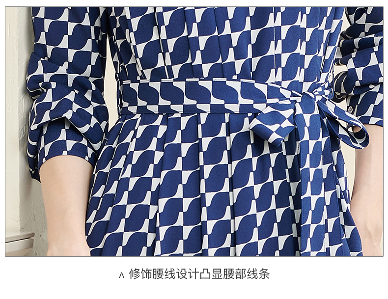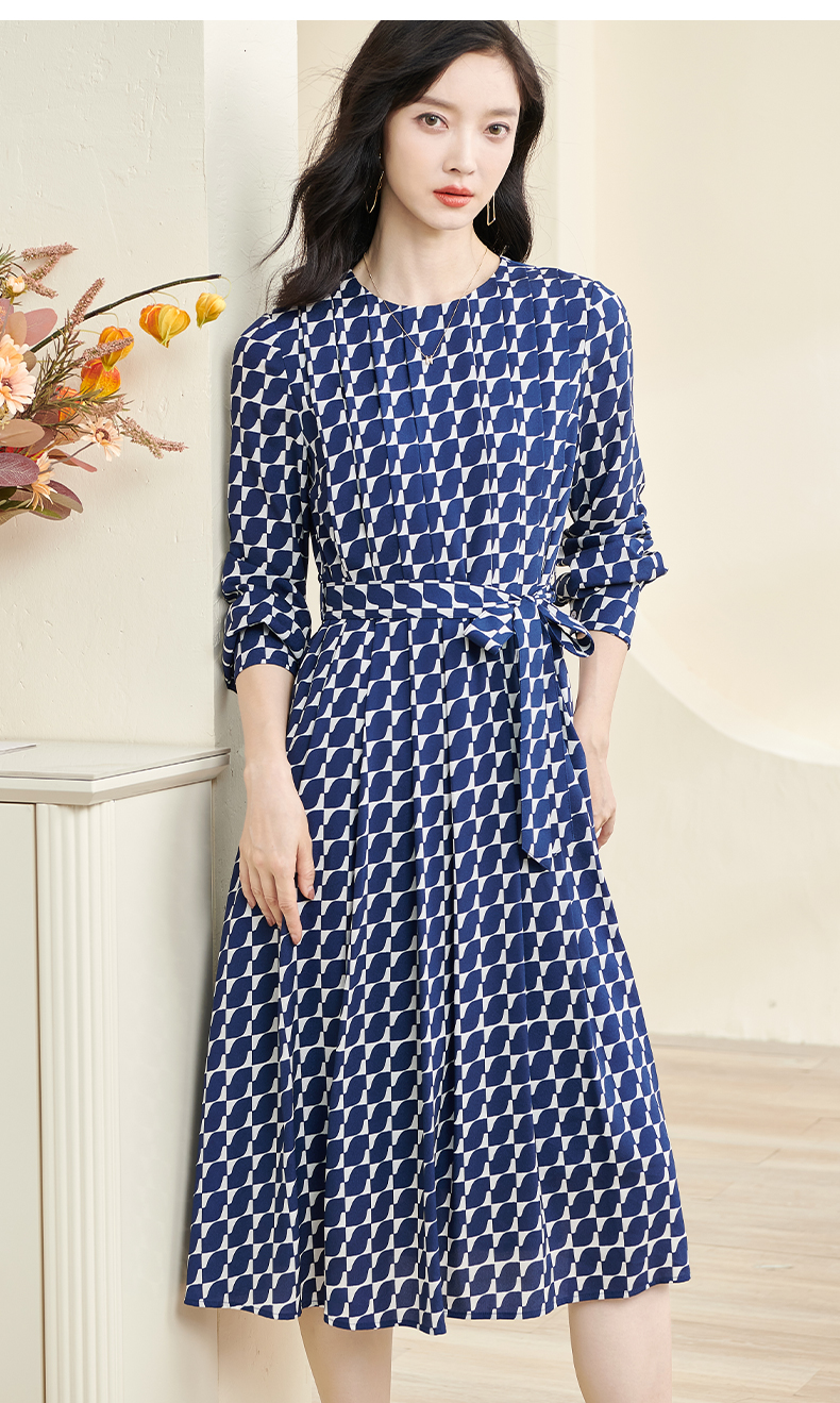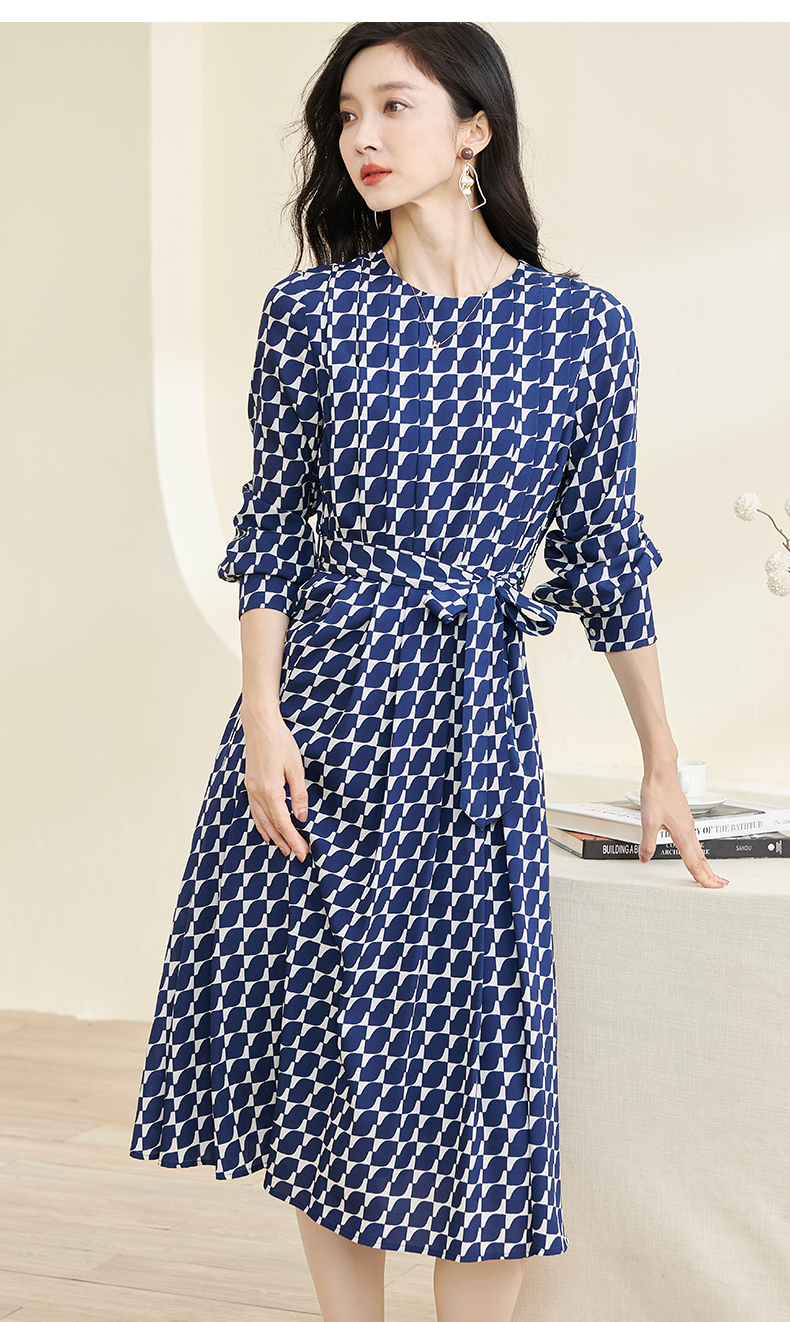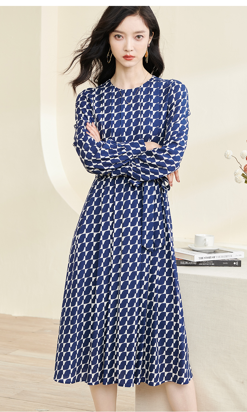 剩S 米思阳2024秋季新款时尚印花宽松长袖大摆裙系带中长款连衣裙2914