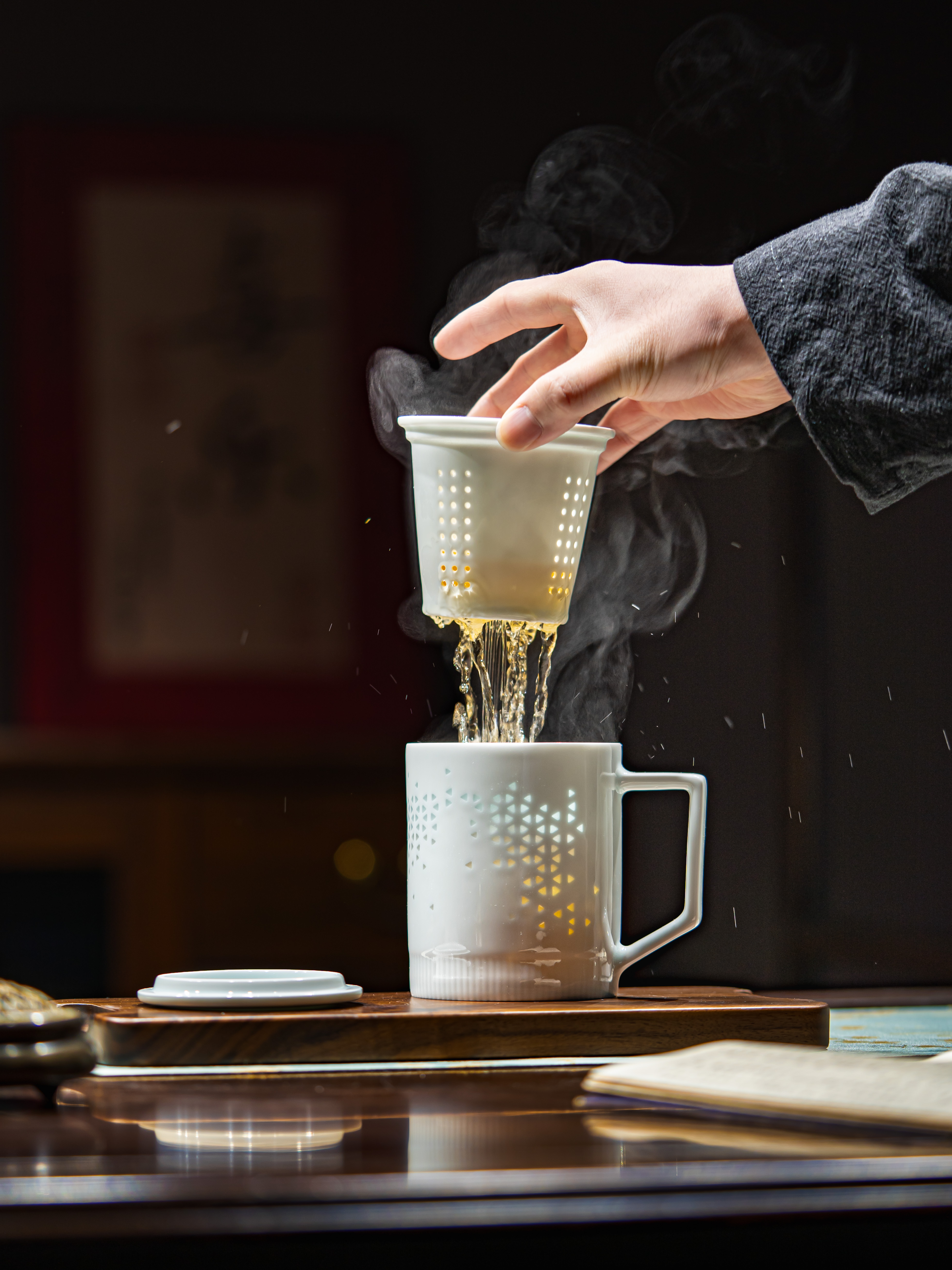 新品 富玉 | 景德镇陶瓷星韵茶漏杯带盖水杯