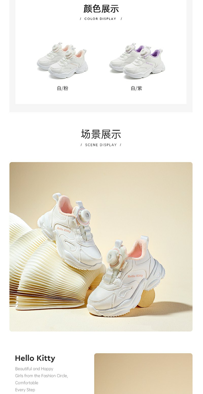 HelloKitty童鞋儿童加绒运动鞋冬季新款中大童女孩加厚保暖棉鞋