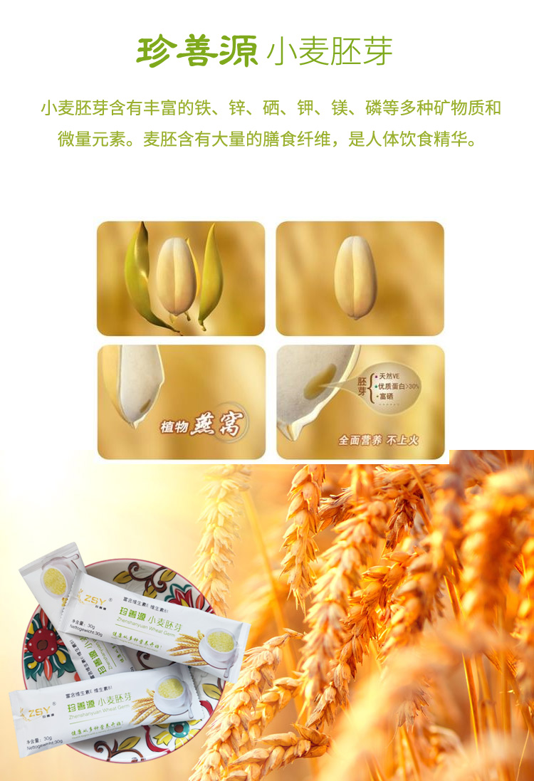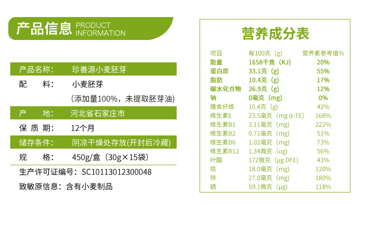 珍善源 小麦胚芽片 方便省心营养丰富 450g/盒 易冲泡