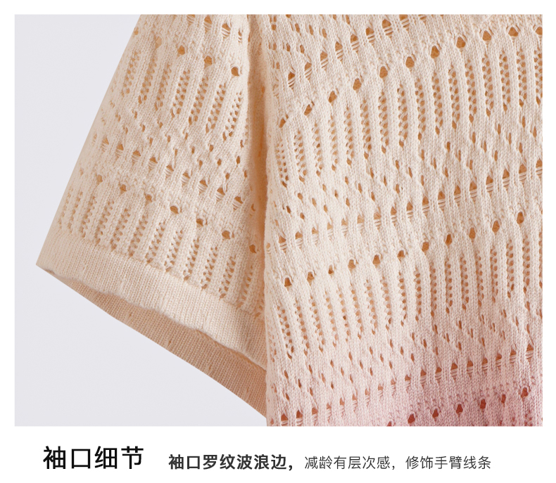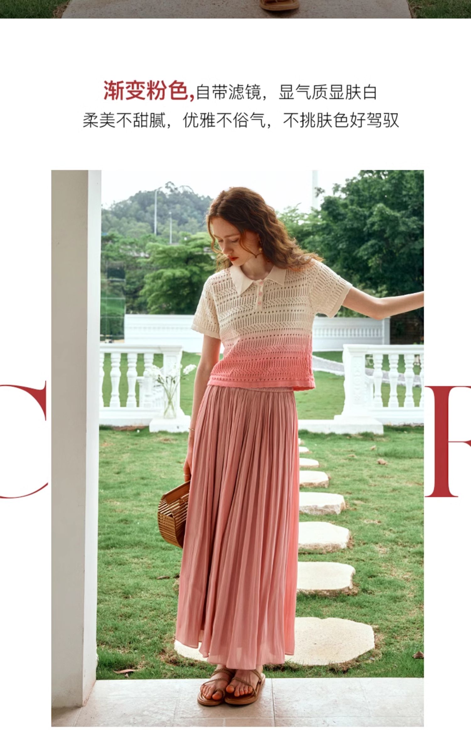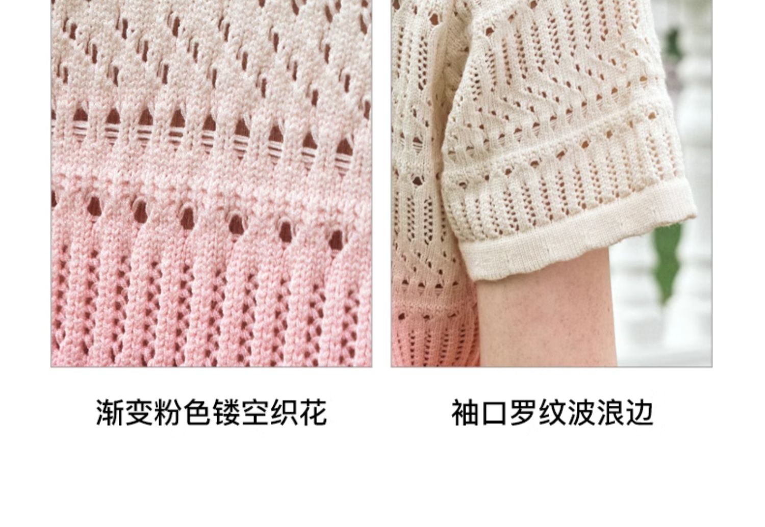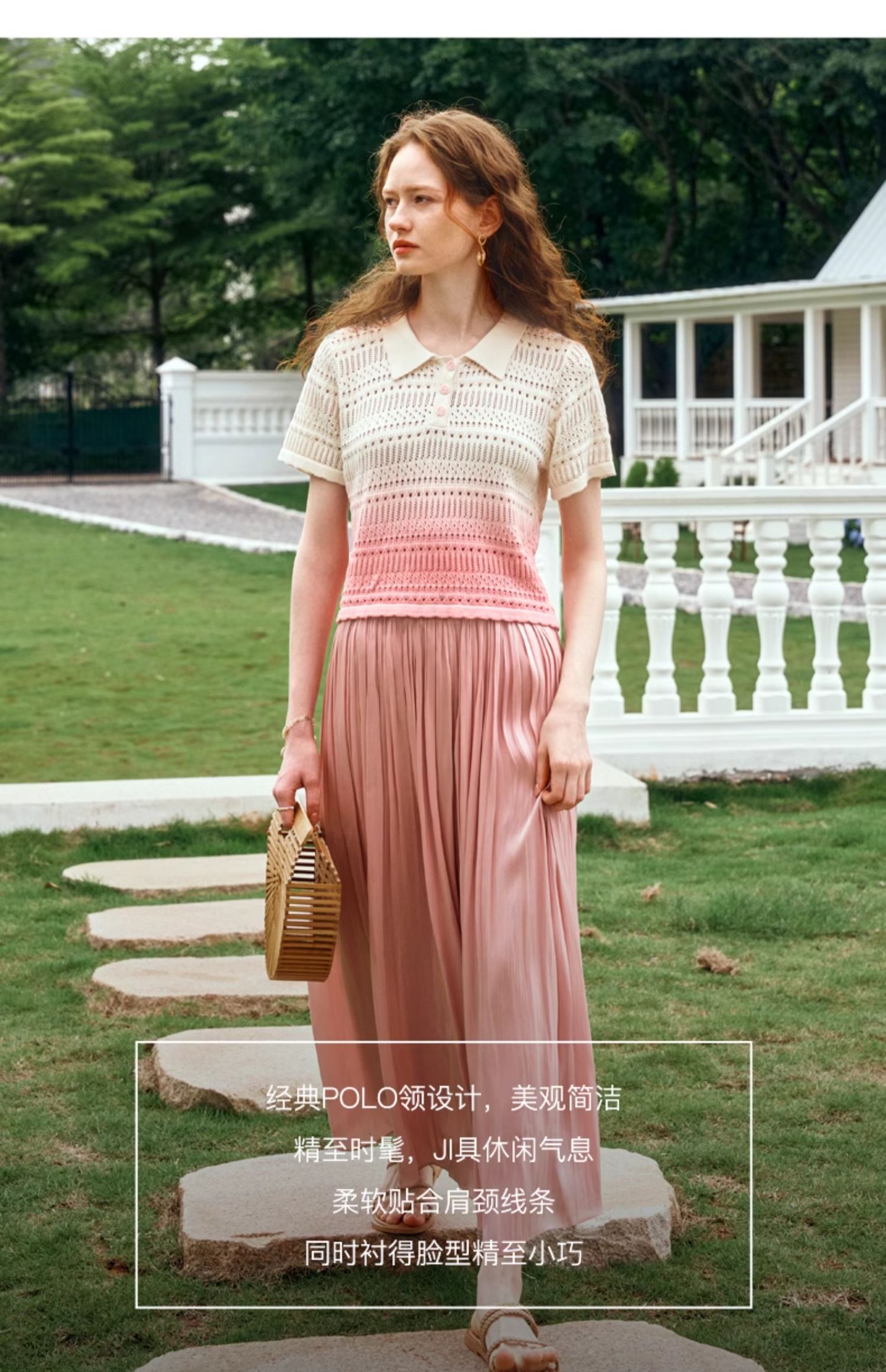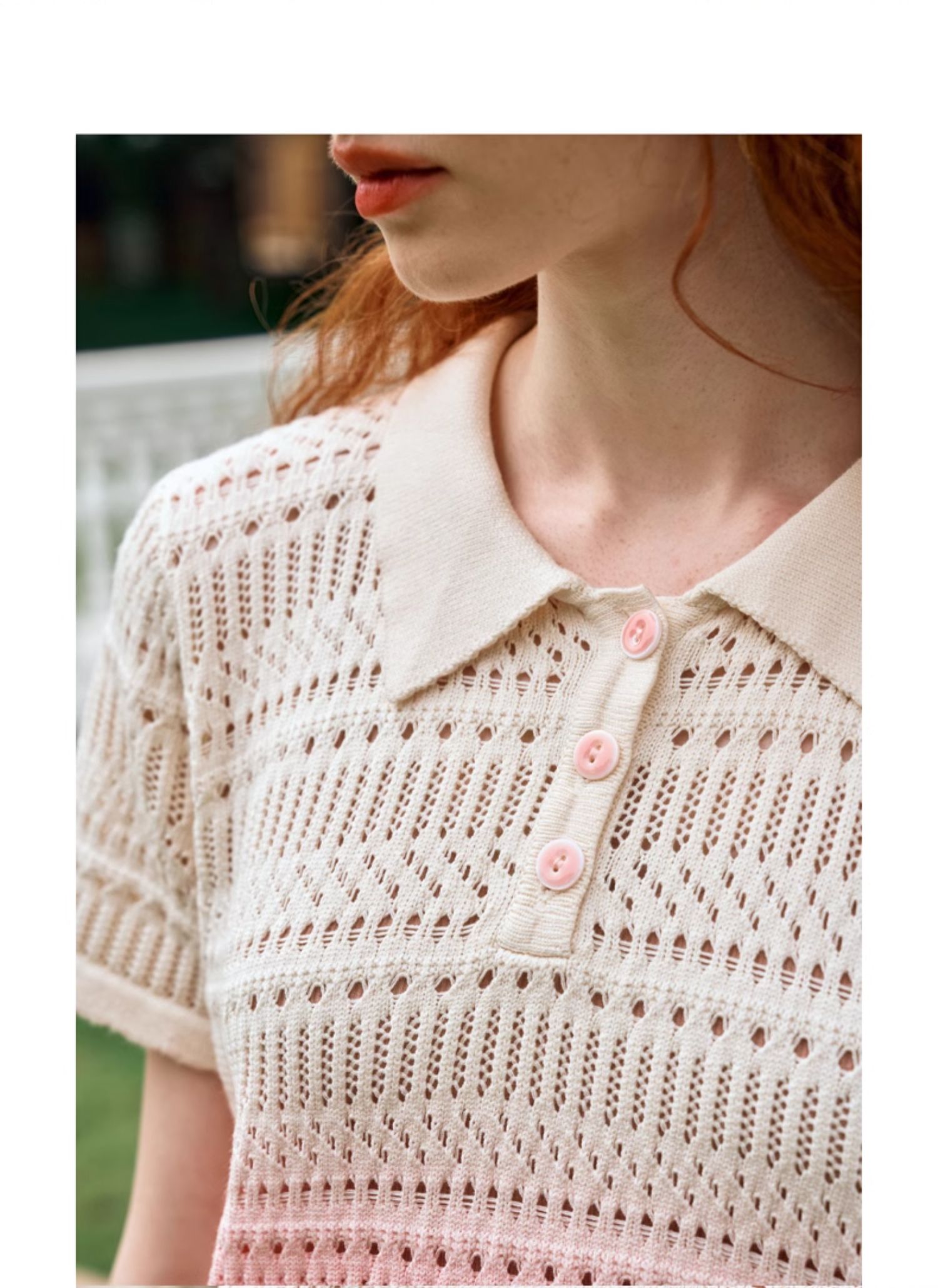 OLrain欧芮儿粉色POLO领针织衫女夏季2024年新款美式复古渐变短袖