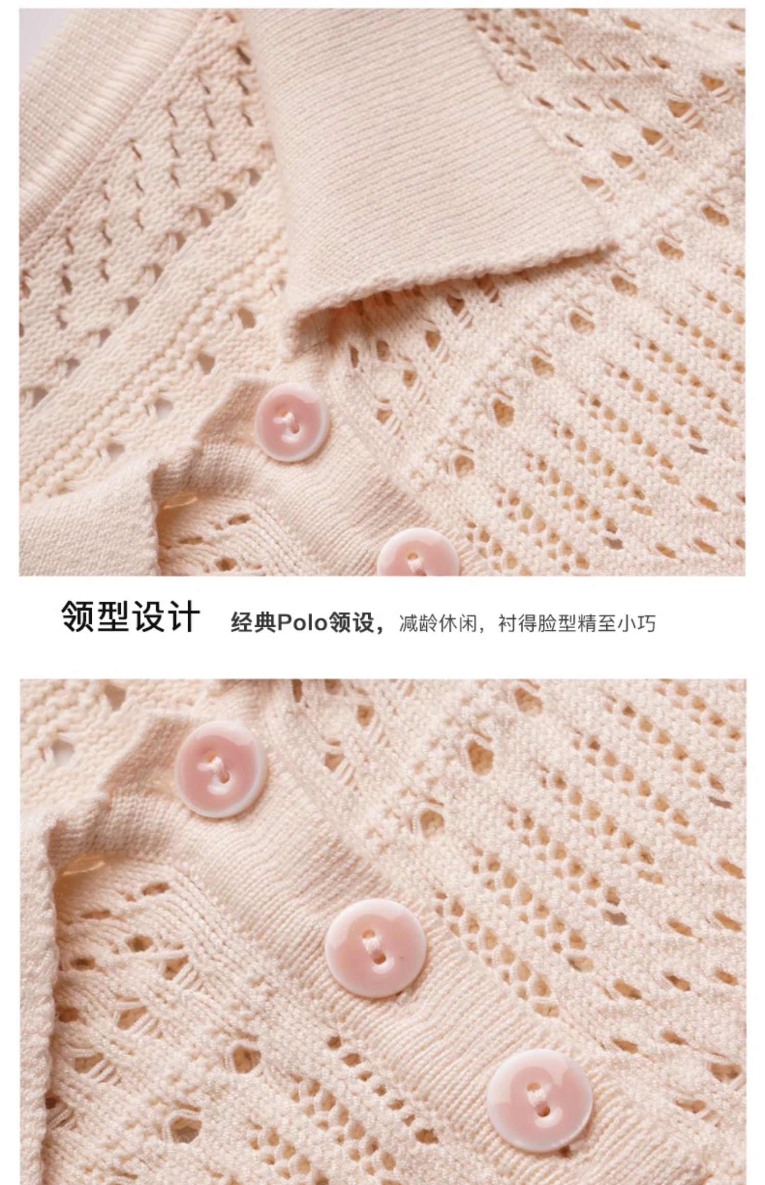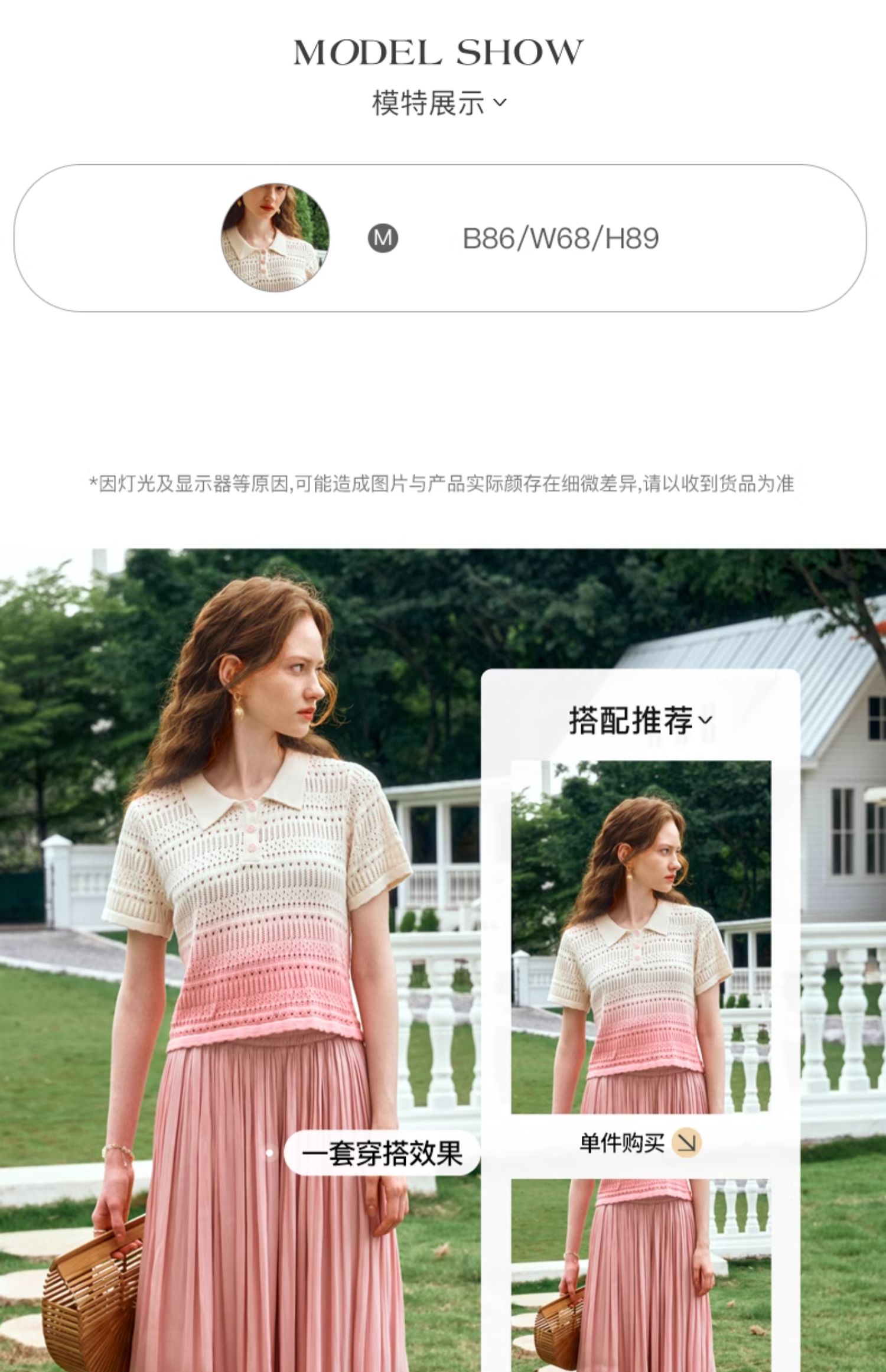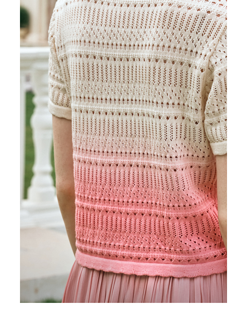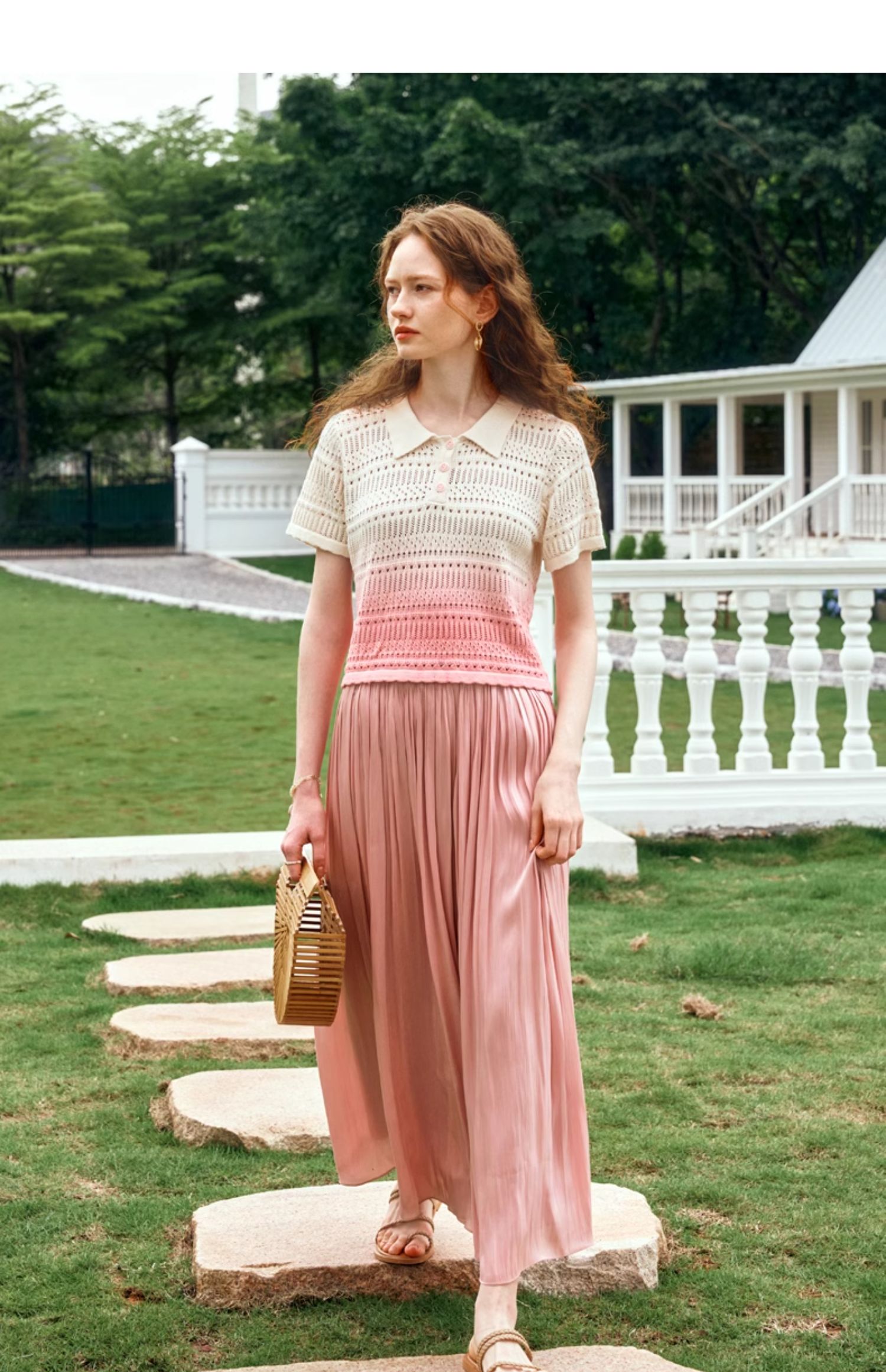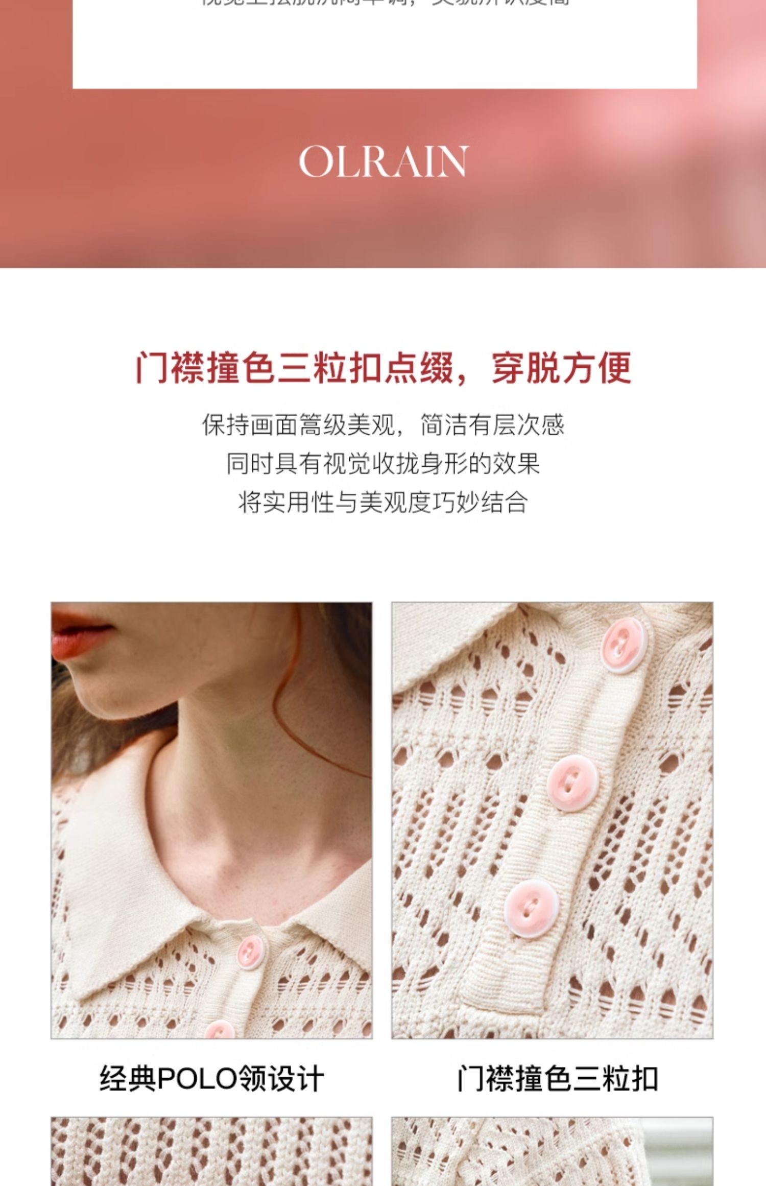 OLrain欧芮儿粉色POLO领针织衫女夏季2024年新款美式复古渐变短袖