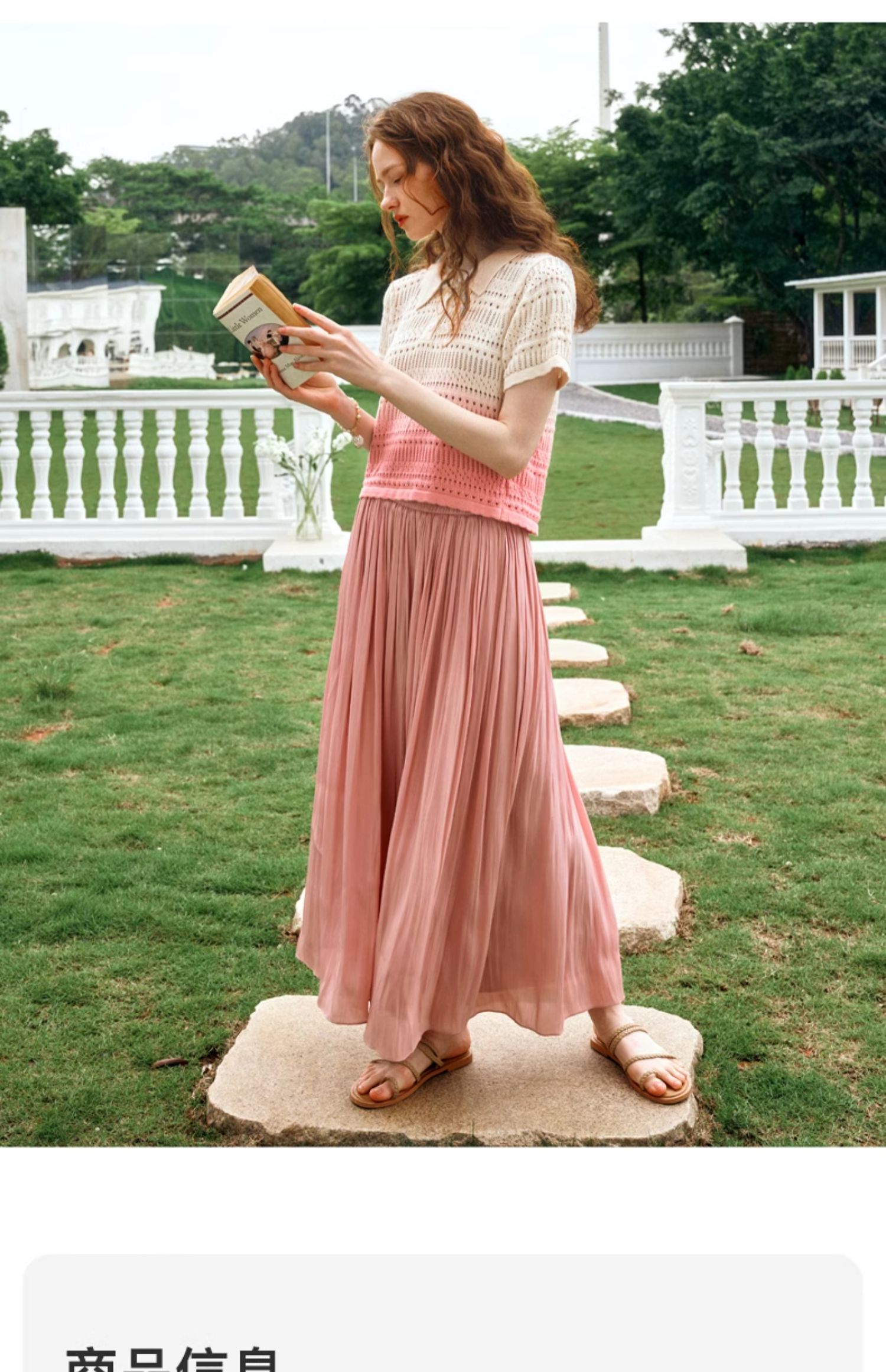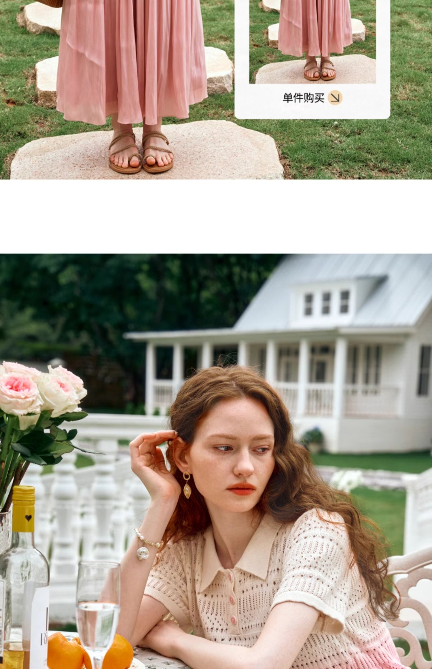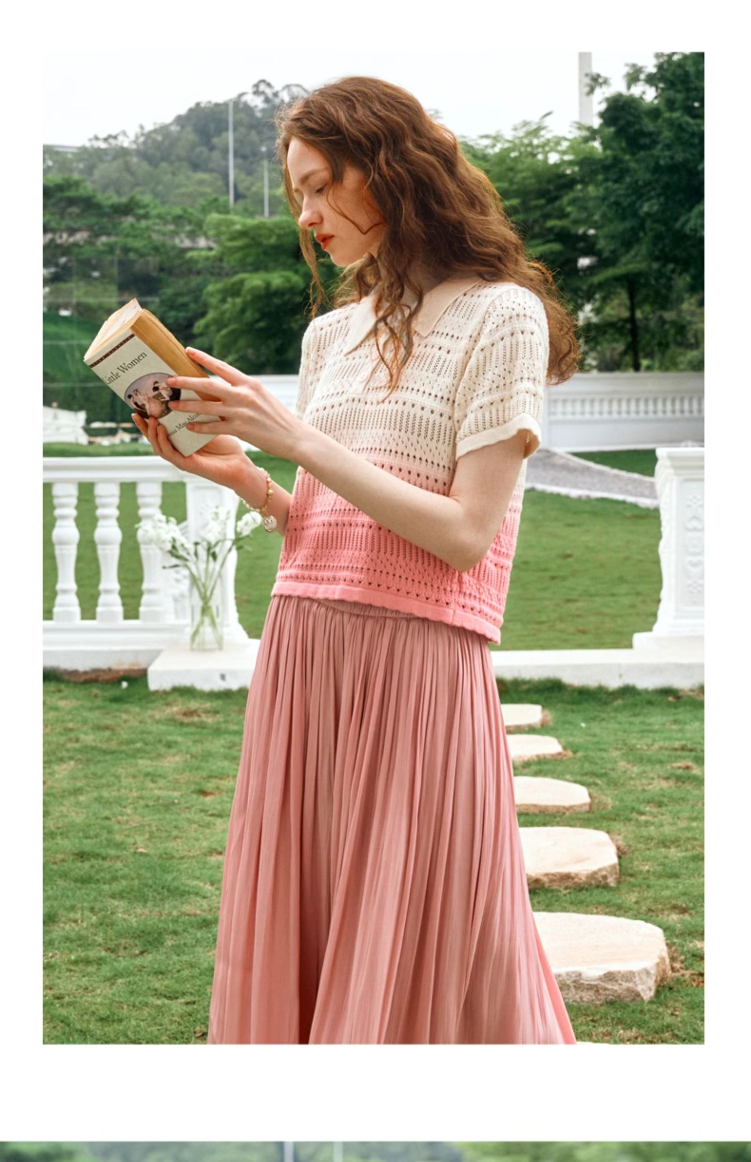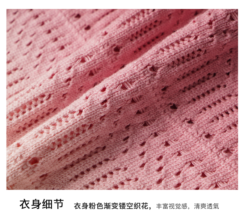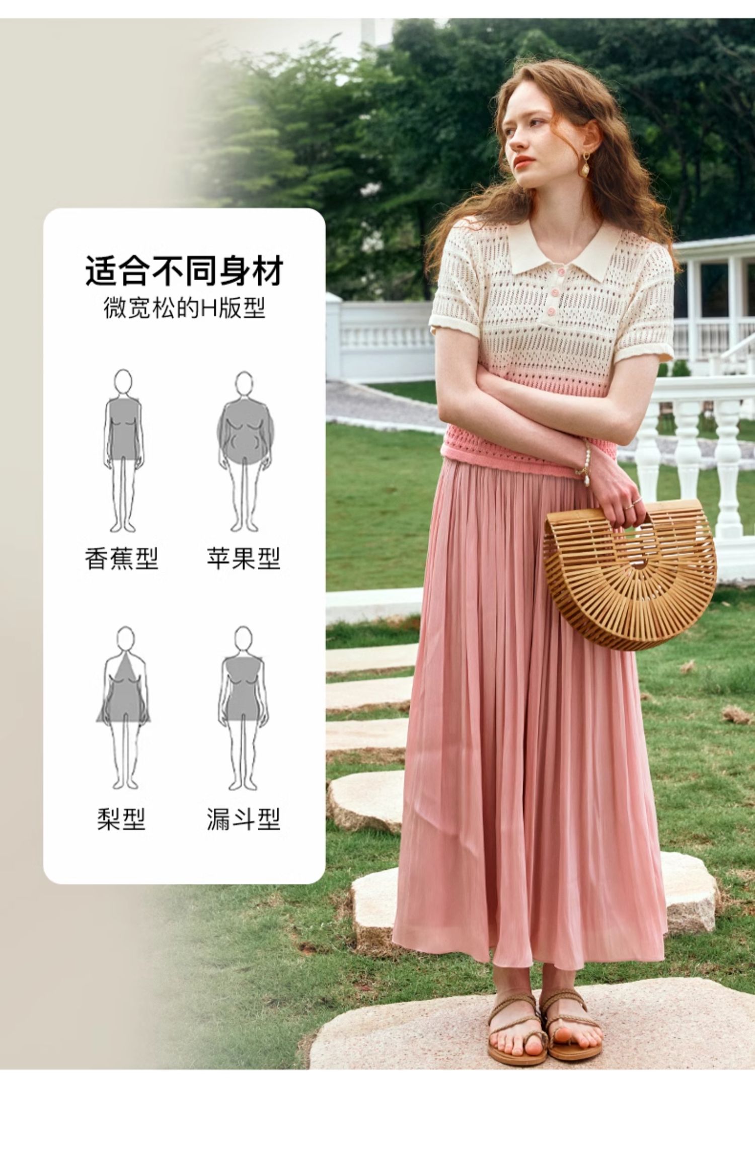 OLrain欧芮儿粉色POLO领针织衫女夏季2024年新款美式复古渐变短袖