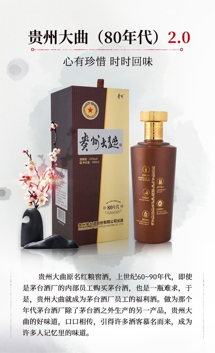茅台贵州大曲酒 80年代 53度 酱香型白酒 500ml*1瓶/2瓶