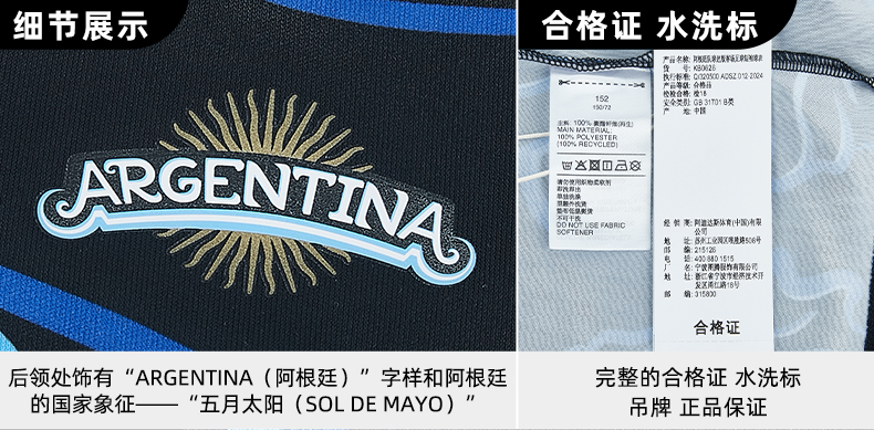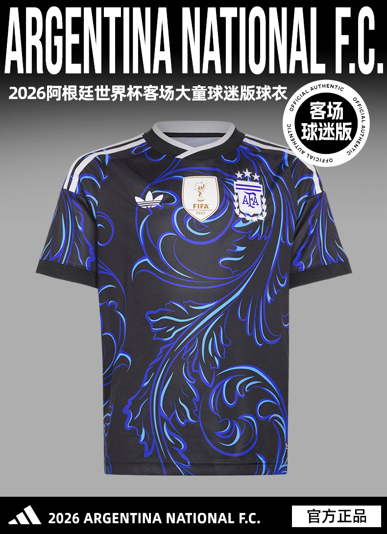 SFS阿迪达斯2026阿根廷客场大童球迷版短袖球衣足球服 KB0626