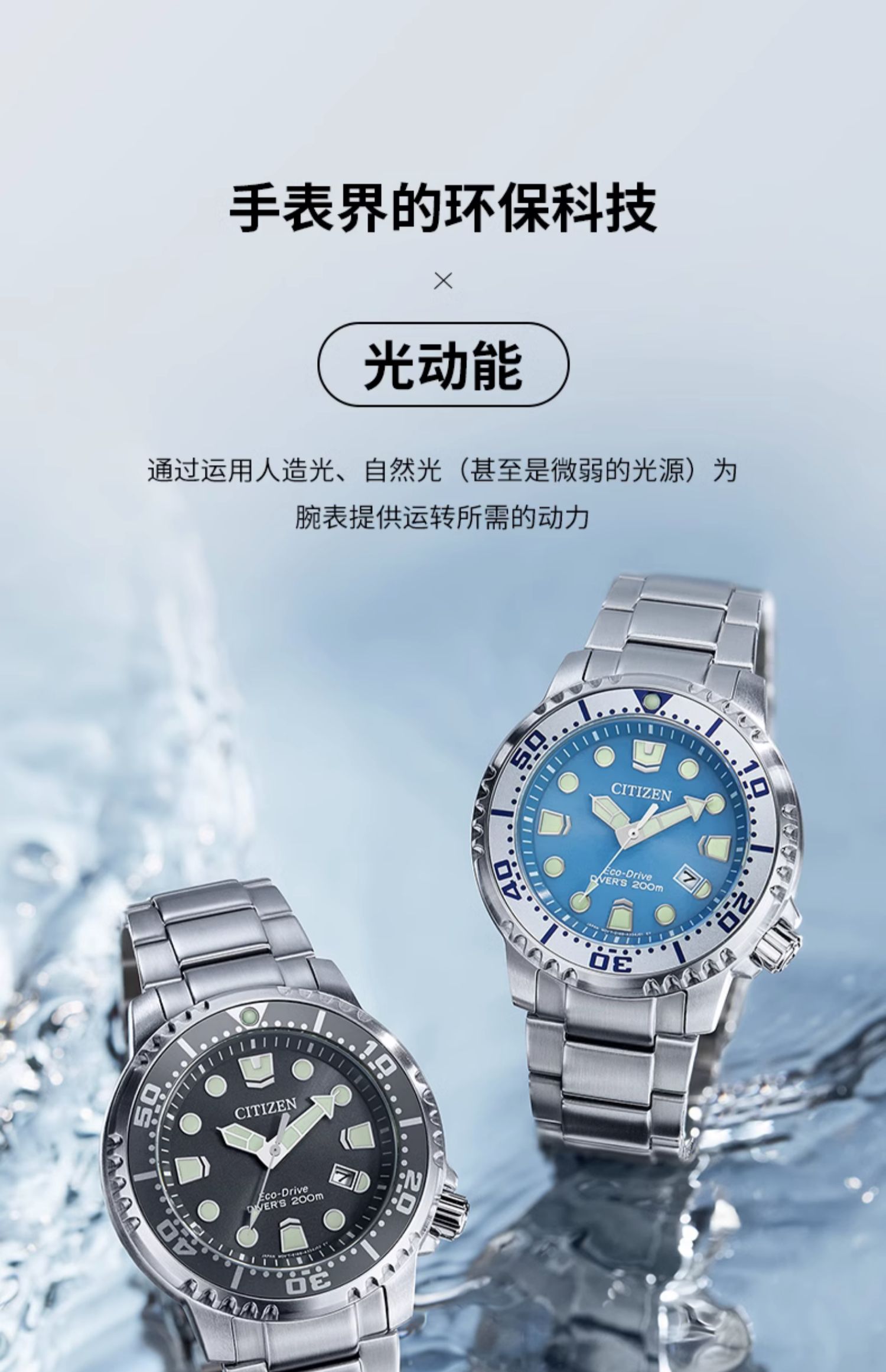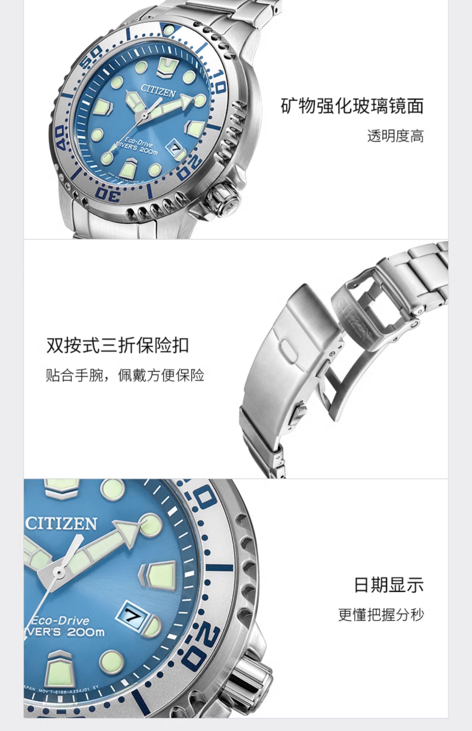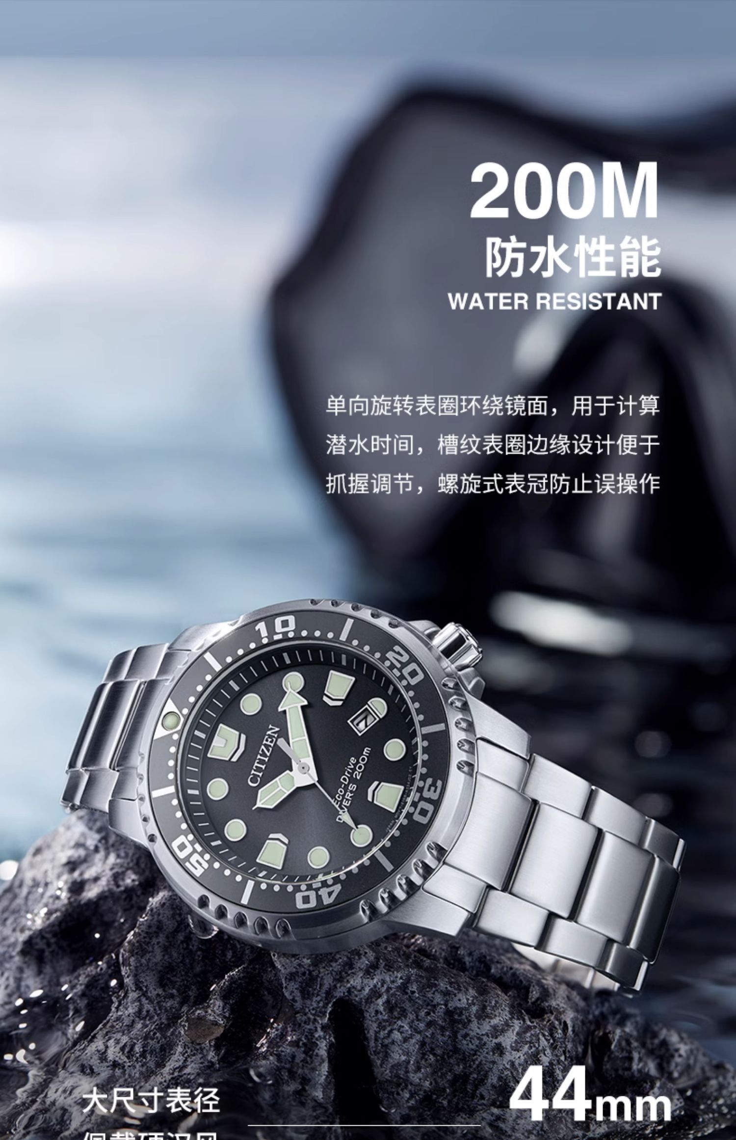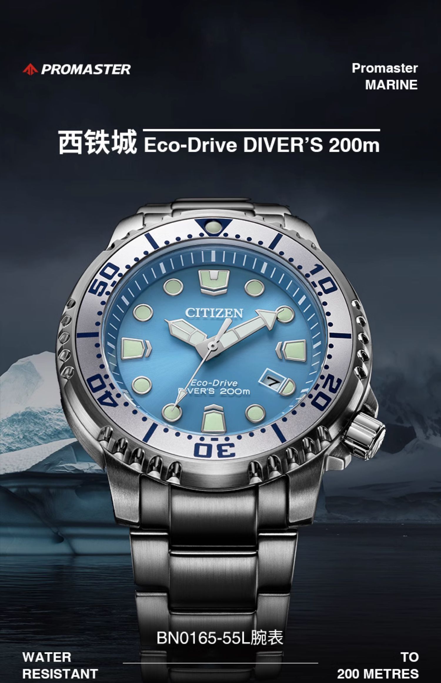 西铁城/CITIZEN PROMASTER系列光动能夜光运动男表BN0167-50H
