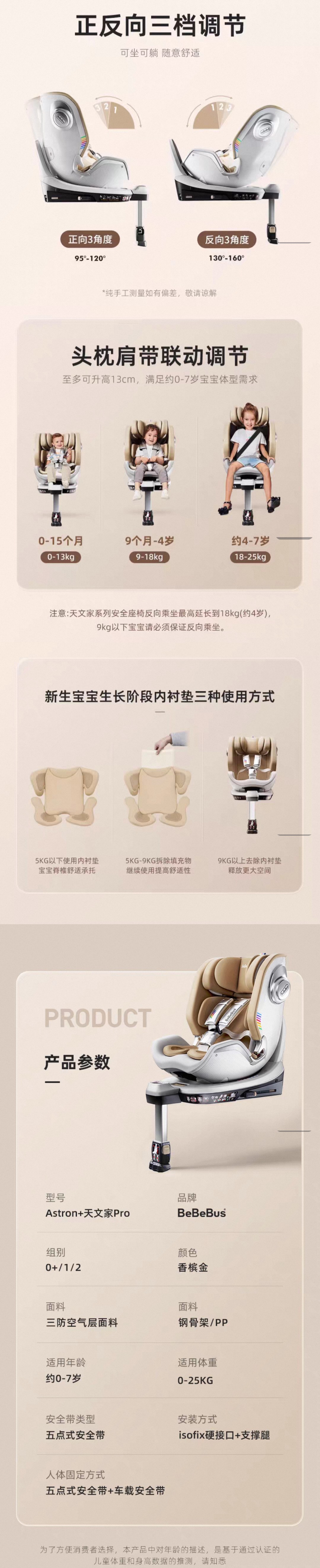 BeBeBus新生婴儿安全座椅天文家pro智能0-7岁儿童宝宝汽车载通风