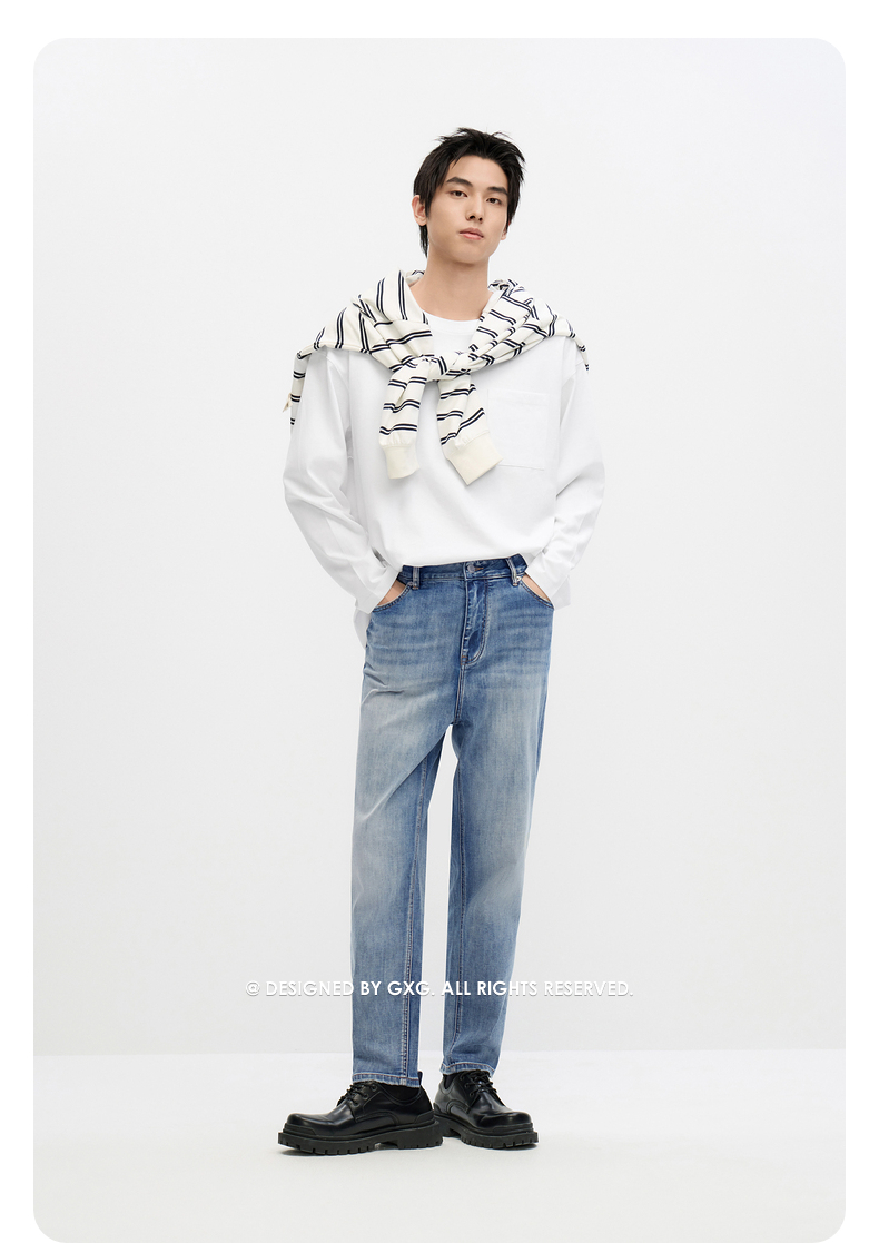 GXG男装多色圆领纯色舒适打底长袖T恤 秋季热卖#G24D343016