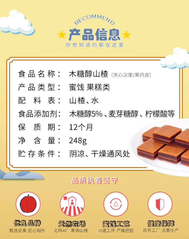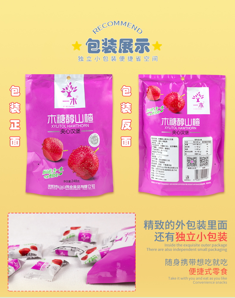 木糖醇山楂系列 222g*2袋 无蔗糖 楂条 山楂 汉堡 条糕 蜜饯 老人休闲零食 包邮