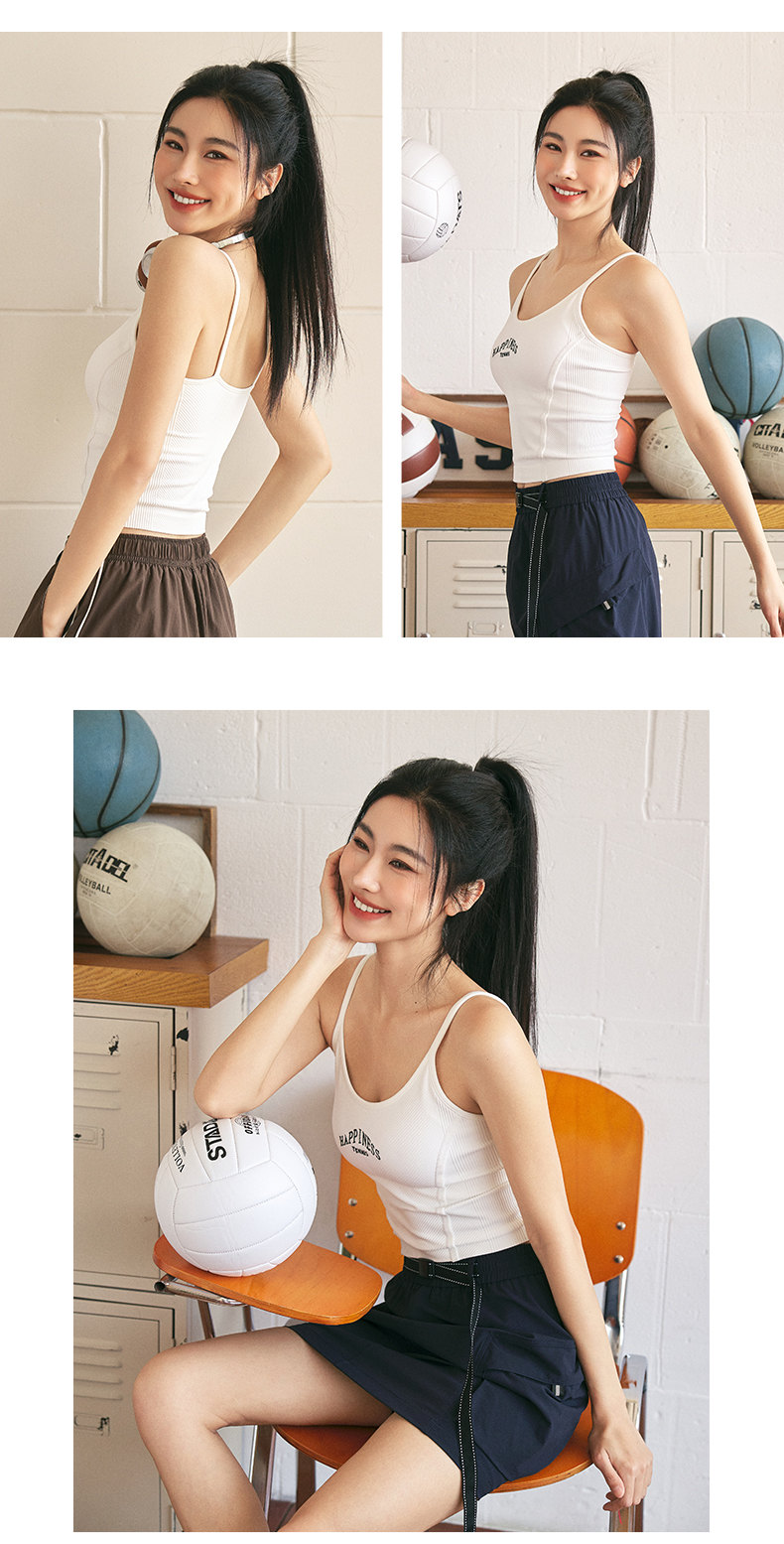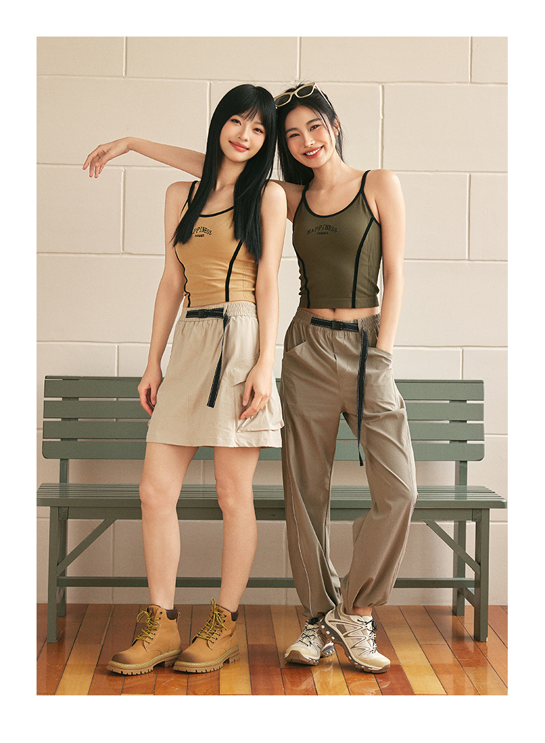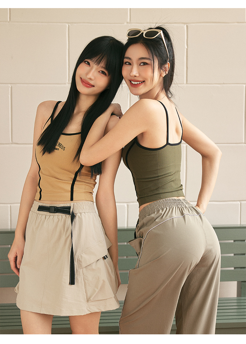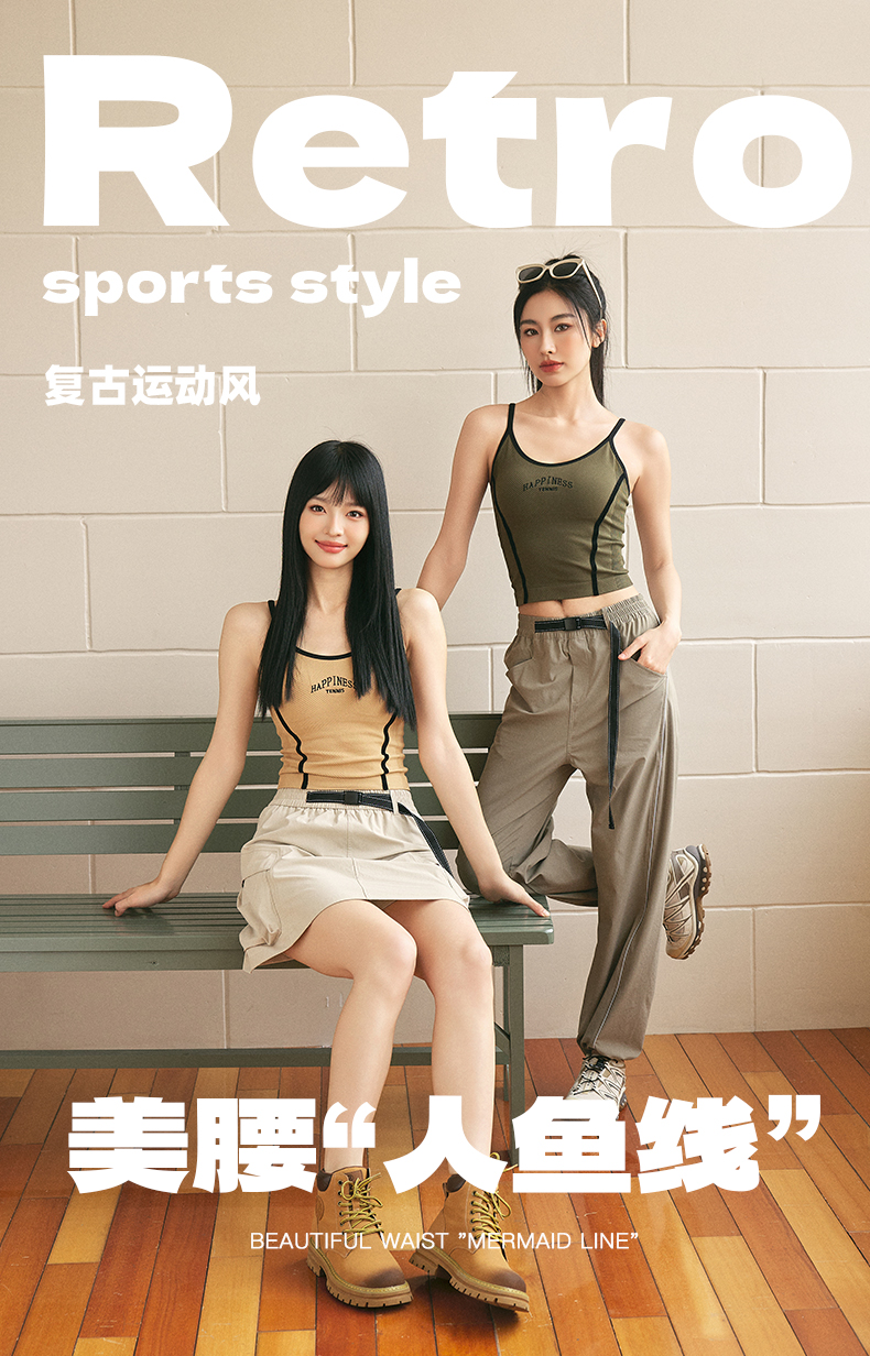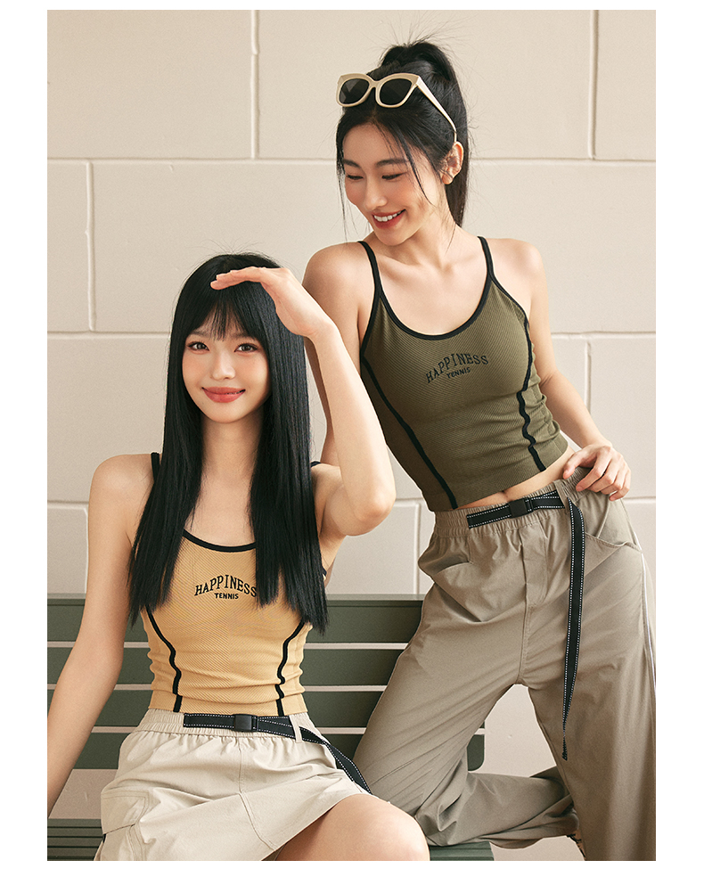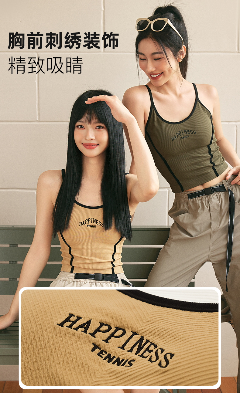 Leorrey/乐拉复古风撞色人鱼线舒适细肩带刺绣美背运动背心