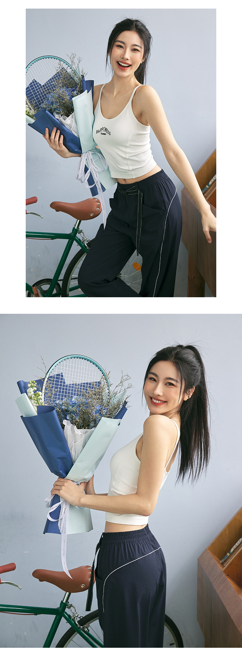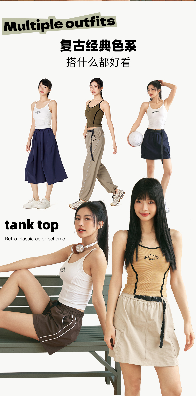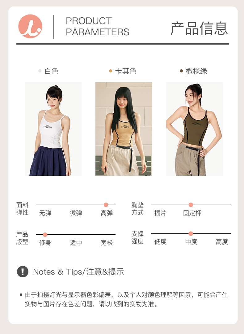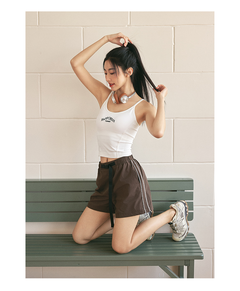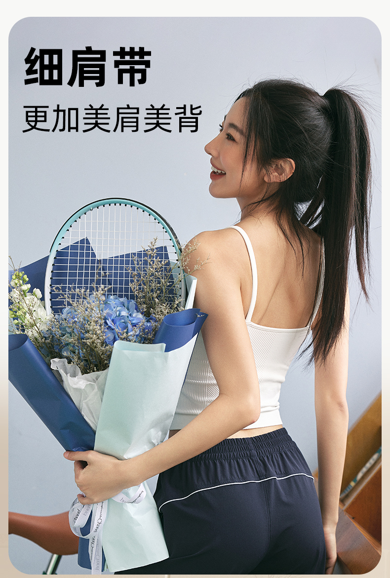 Leorrey/乐拉复古风撞色人鱼线舒适细肩带刺绣美背运动背心