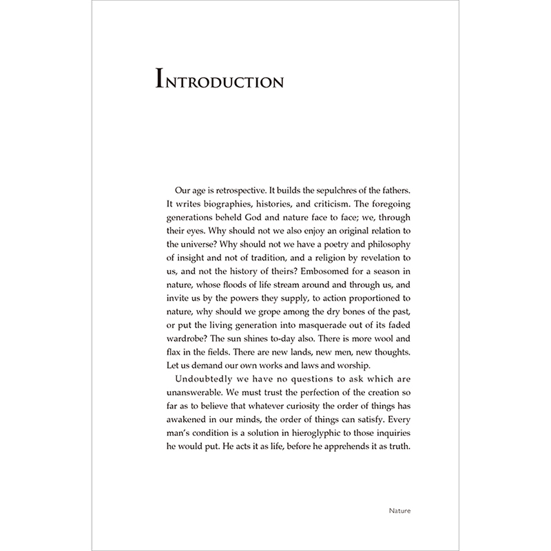 ★收录了美国19世纪超验主义文学运动的两位代表人物——R.W.爱默生和H.D.梭罗的代表作,包括爱默生的《论自然》《人生的行为》,以及梭罗的《瓦尔登湖》
