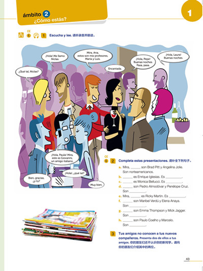 《走遍西班牙新版1学生用书》是《新版走遍西班牙》系列中的一本,系外语教学与研究出版社从西班牙阿纳亚出版集团引进的一套原版教材。该系列共分四册,本书为其中的第一册,有配套的教师用书和练习册。作为一套由西班牙专家编写的供外国人学习西班牙语的教材,该书的特点在于依托目前国际外语教学方面流行的交际教学法,通过色彩缤纷的图片、丰富多样且灵活生动的练习以及与老师、同学的互动交流,全面训练学生听说读写各方面的能力。同时由于该书内容贴近现实生活,而且每课课后还有专门的“生活方式”,使学生能够现学现用,在学习语言技能的同时增加对西语世界的了解。