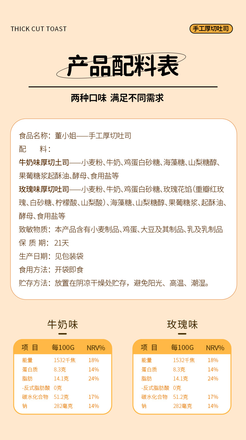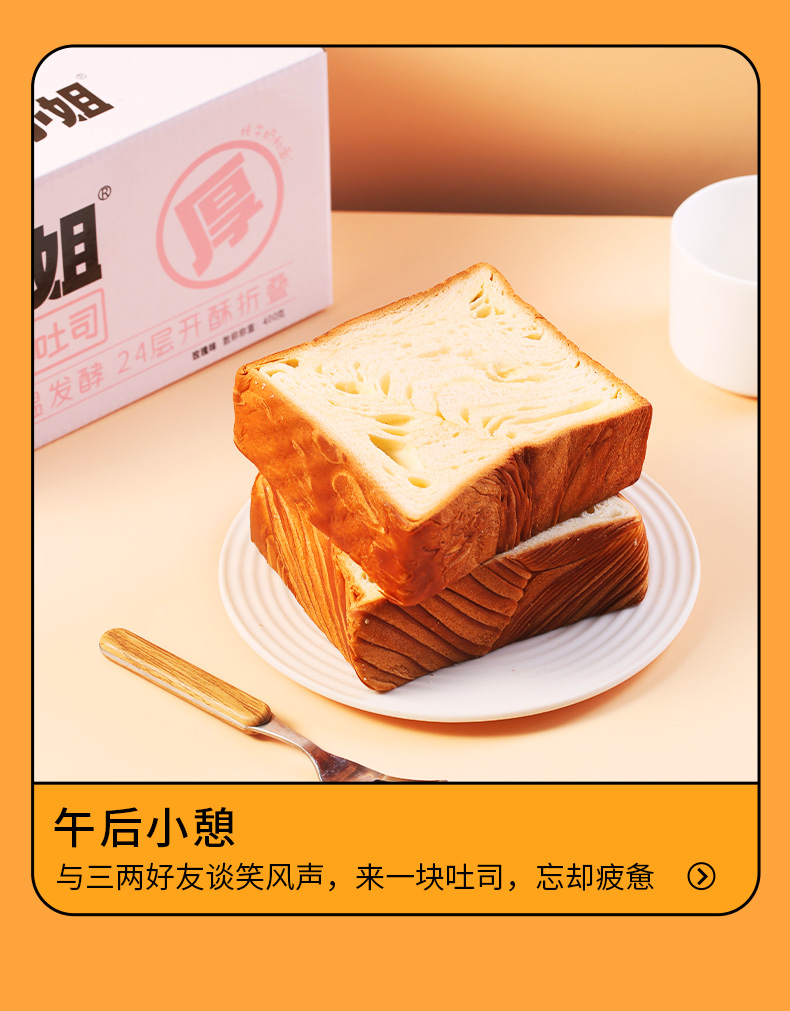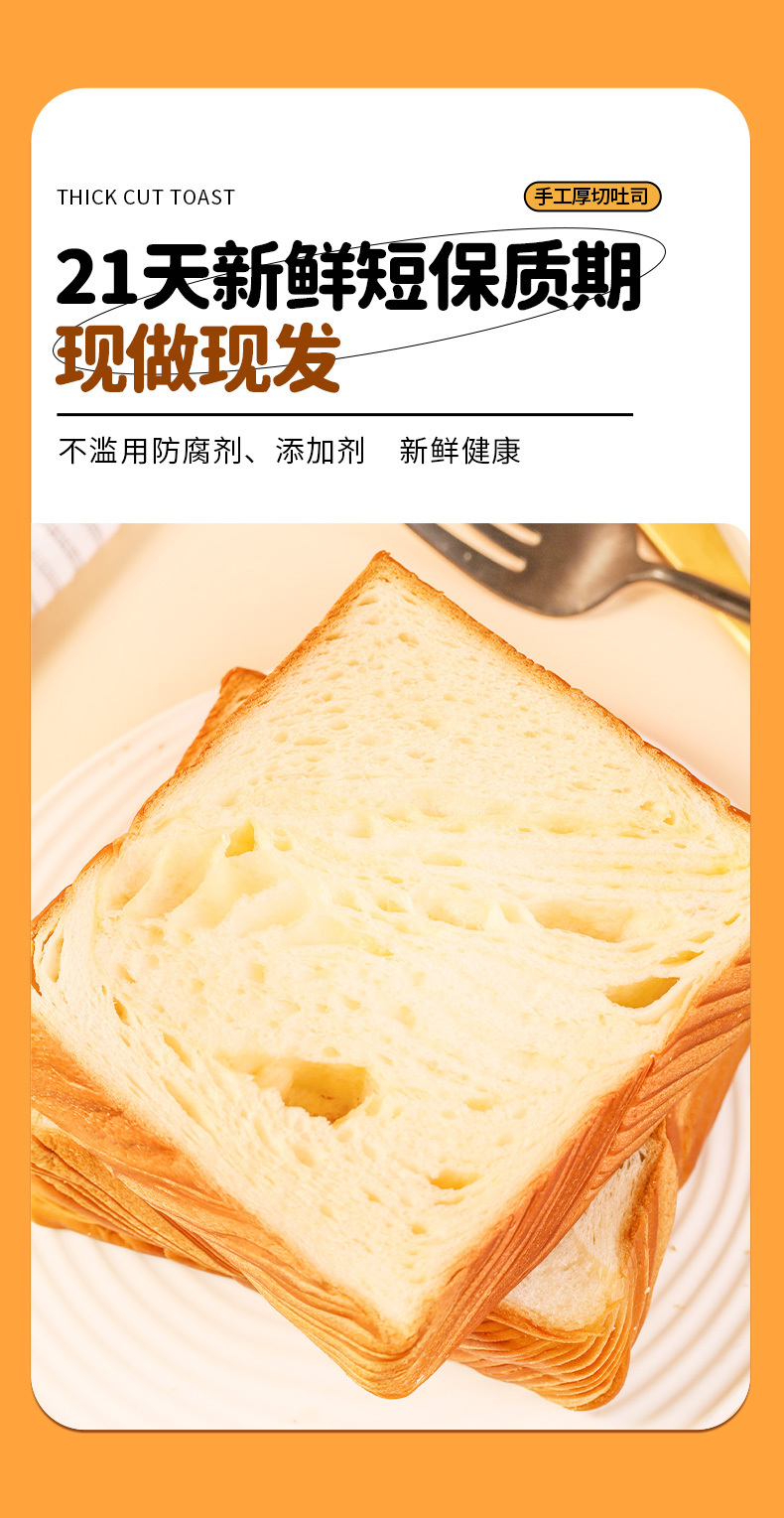 【21天新鲜短保】董小姐厚切吐司400g*2箱 原味 玫瑰味 切片 手撕面包 网红早餐代餐食品