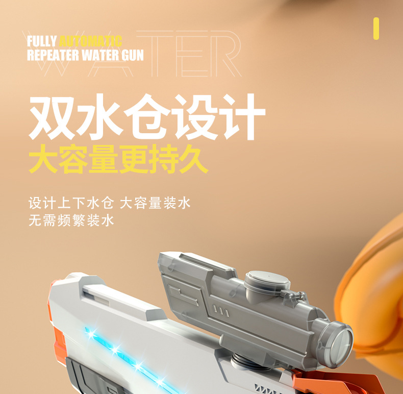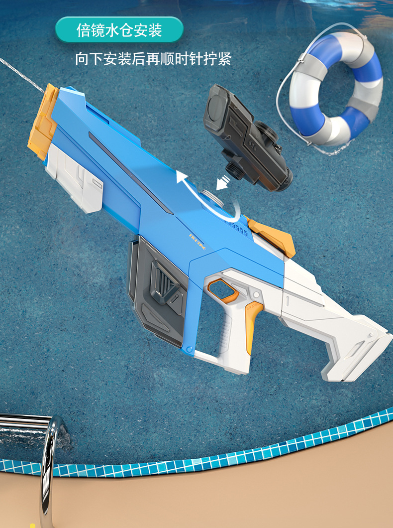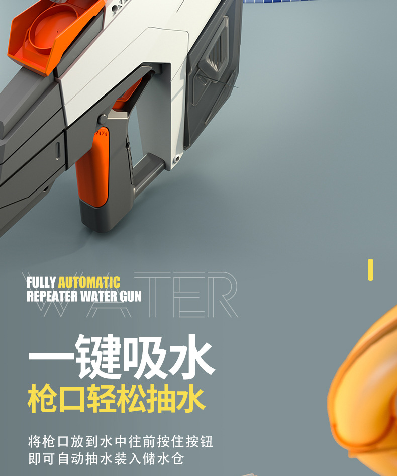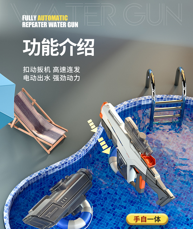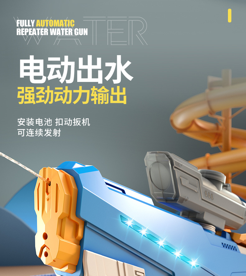 【高颜值时尚拼接撞色,电动连发水枪!】儿童电动连发水枪 大容量自动吸水 高压喷水呲水枪 男孩戏水玩具-QQ