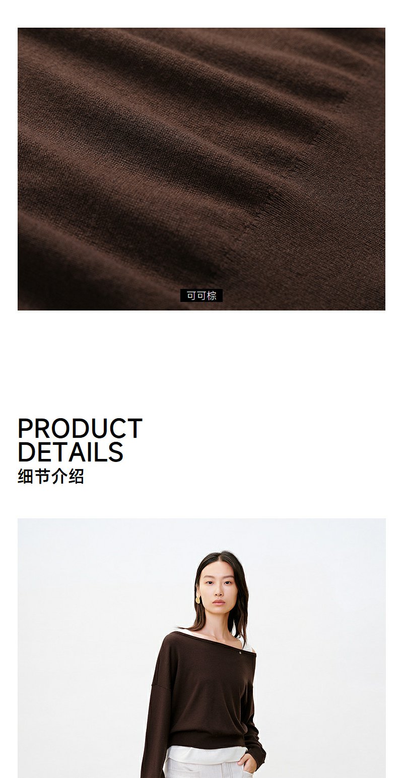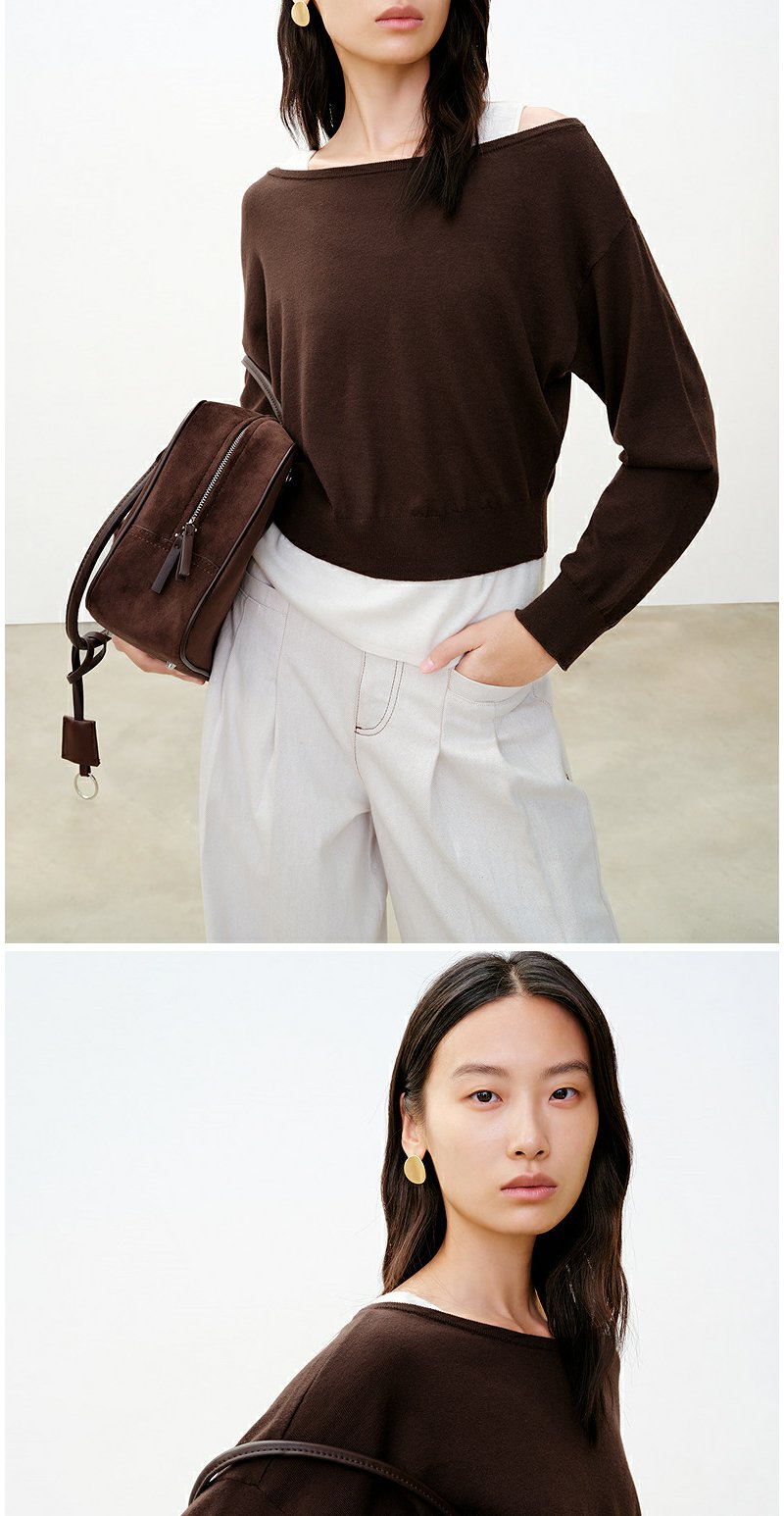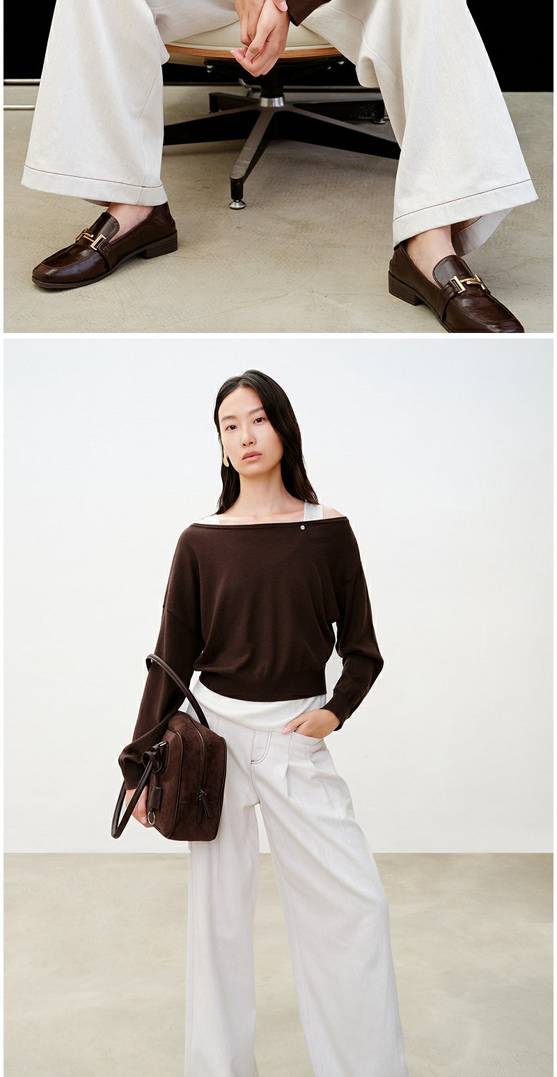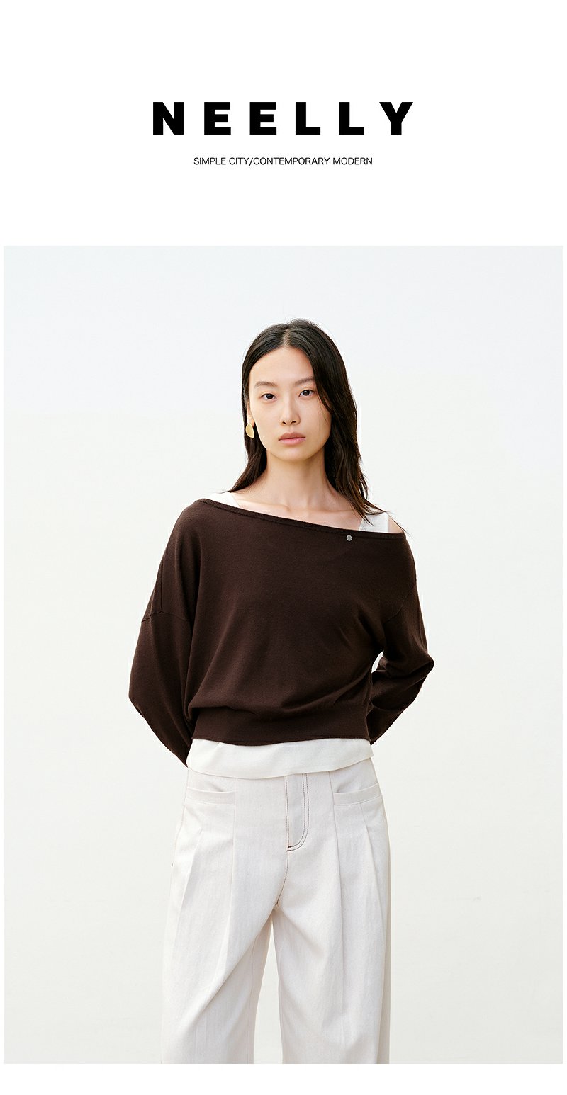NEELLY纳俪商场同款秋季新款法式休闲一字领针织衫女休闲舒适上衣N25081A01054