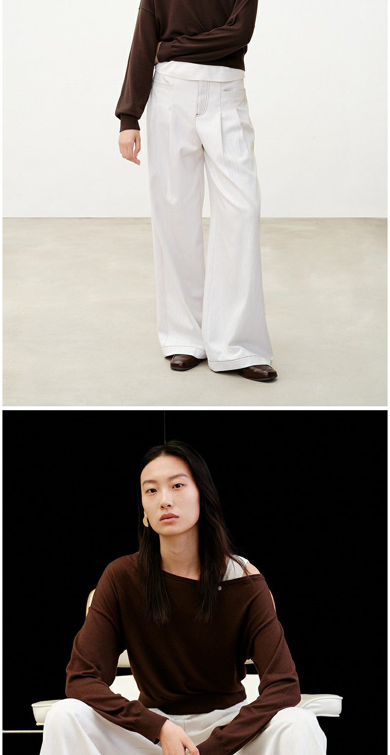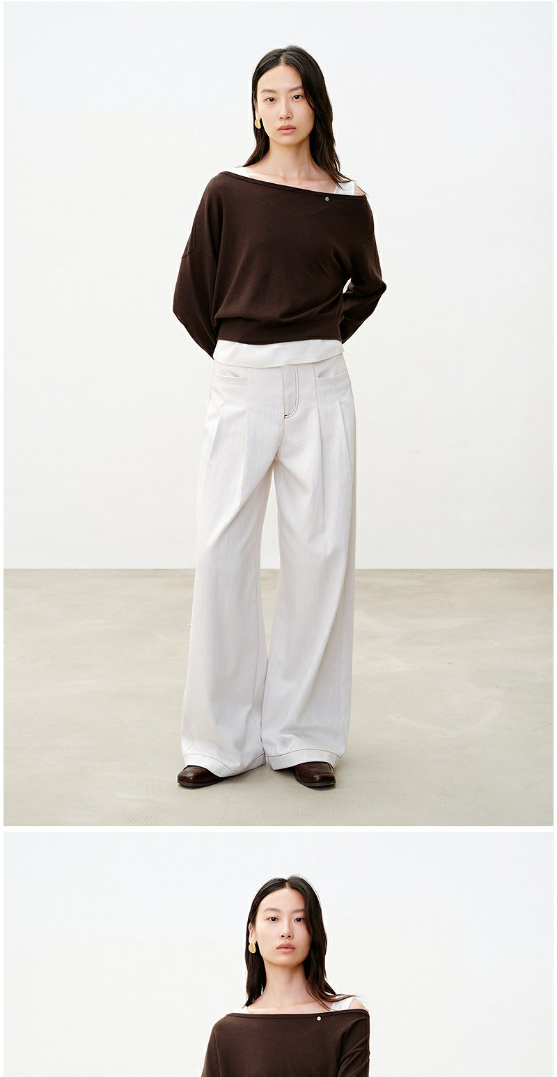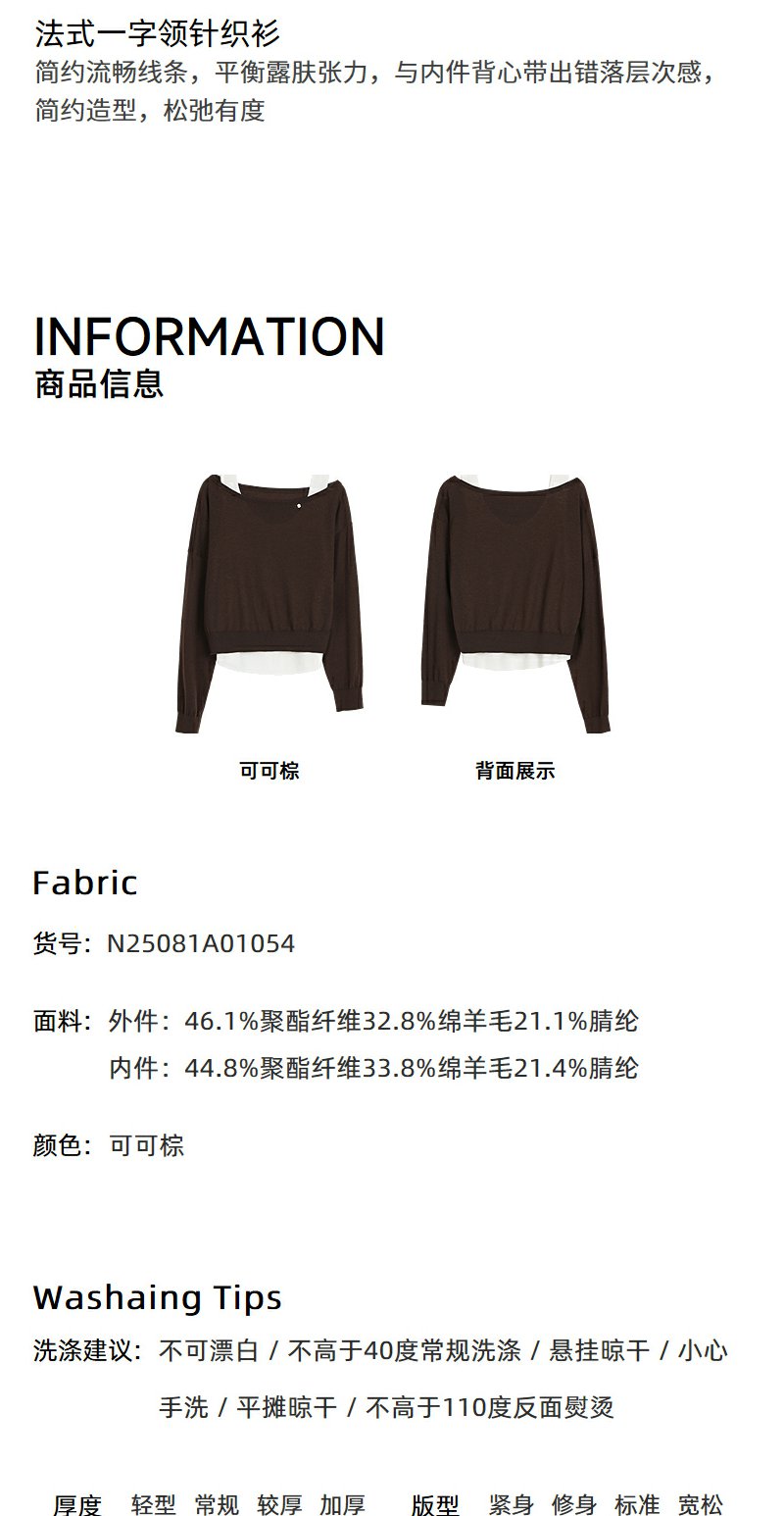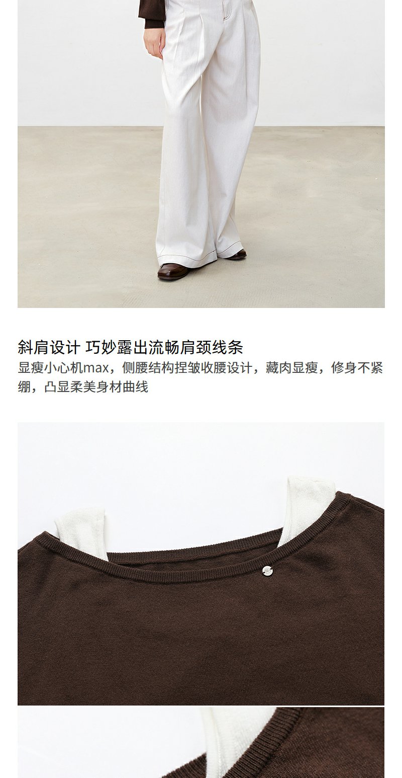 NEELLY纳俪商场同款秋季新款法式休闲一字领针织衫女休闲舒适上衣N25081A01054