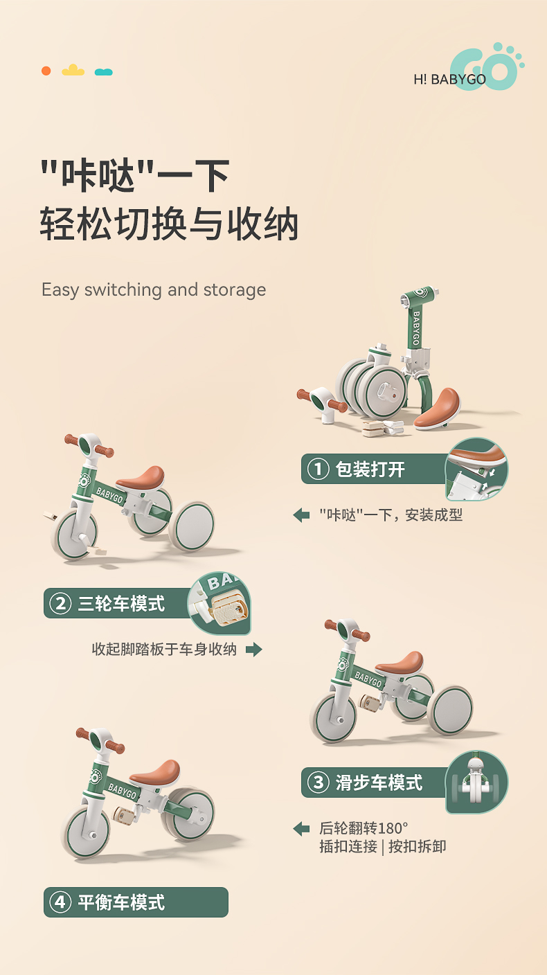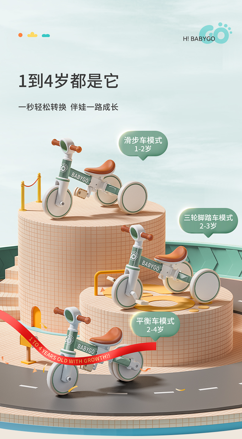 利贝乐儿童三轮车脚踏车溜娃神三合一【XPQ】