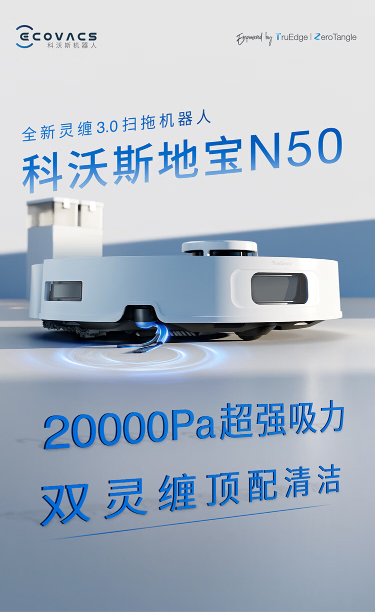 科沃斯新品N50扫地机器人扫拖一体自动清洗全自动洗地机智能家用吸拖一体_水箱版【新】