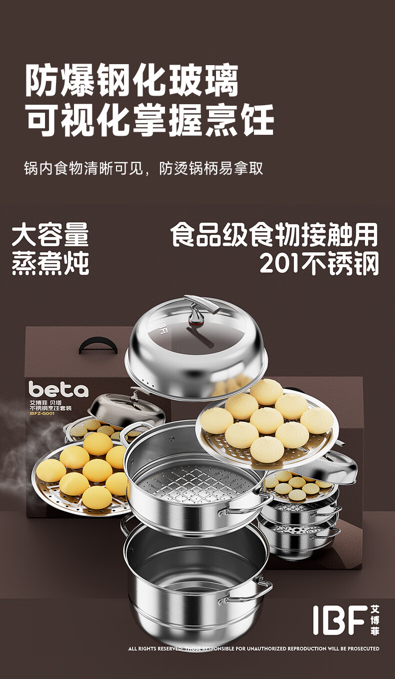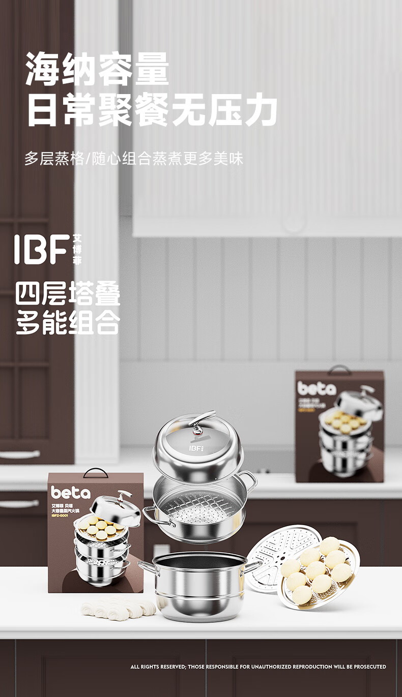 IBF艾博菲艾博菲贝塔_不锈钢大容量三层蒸锅【K】