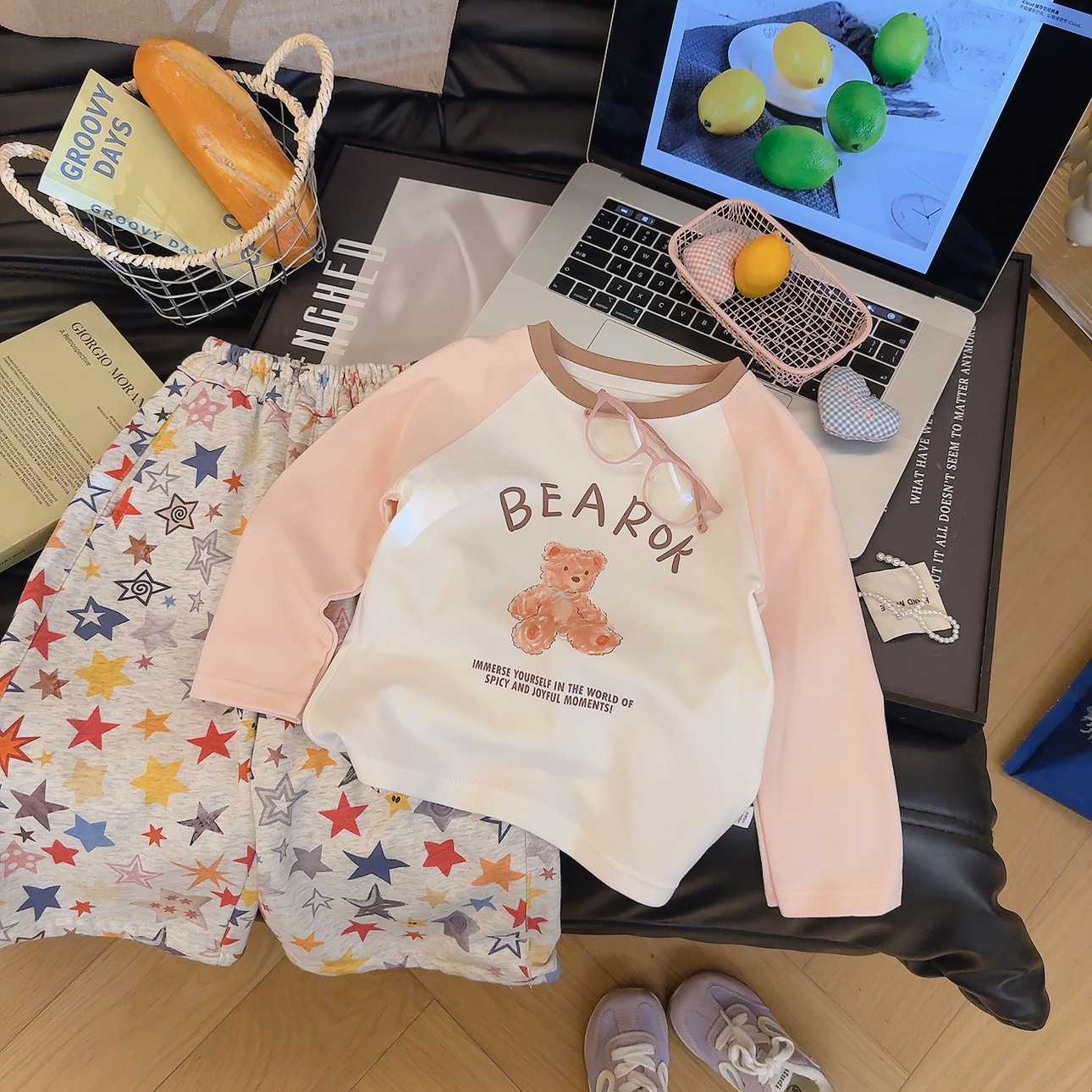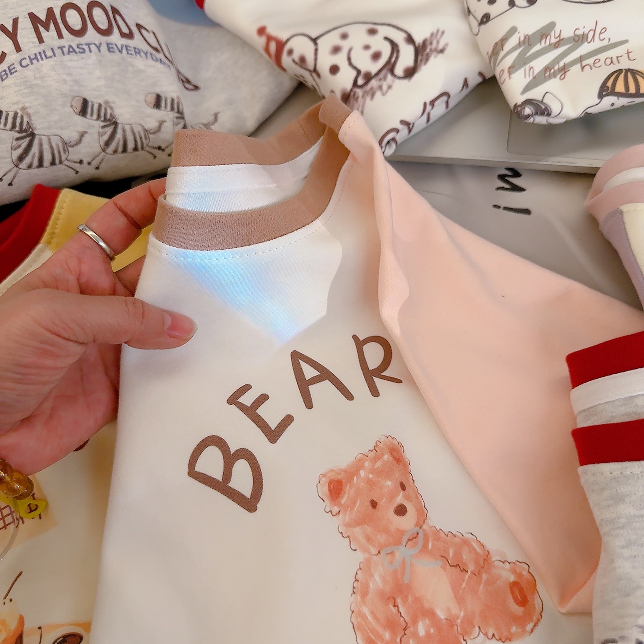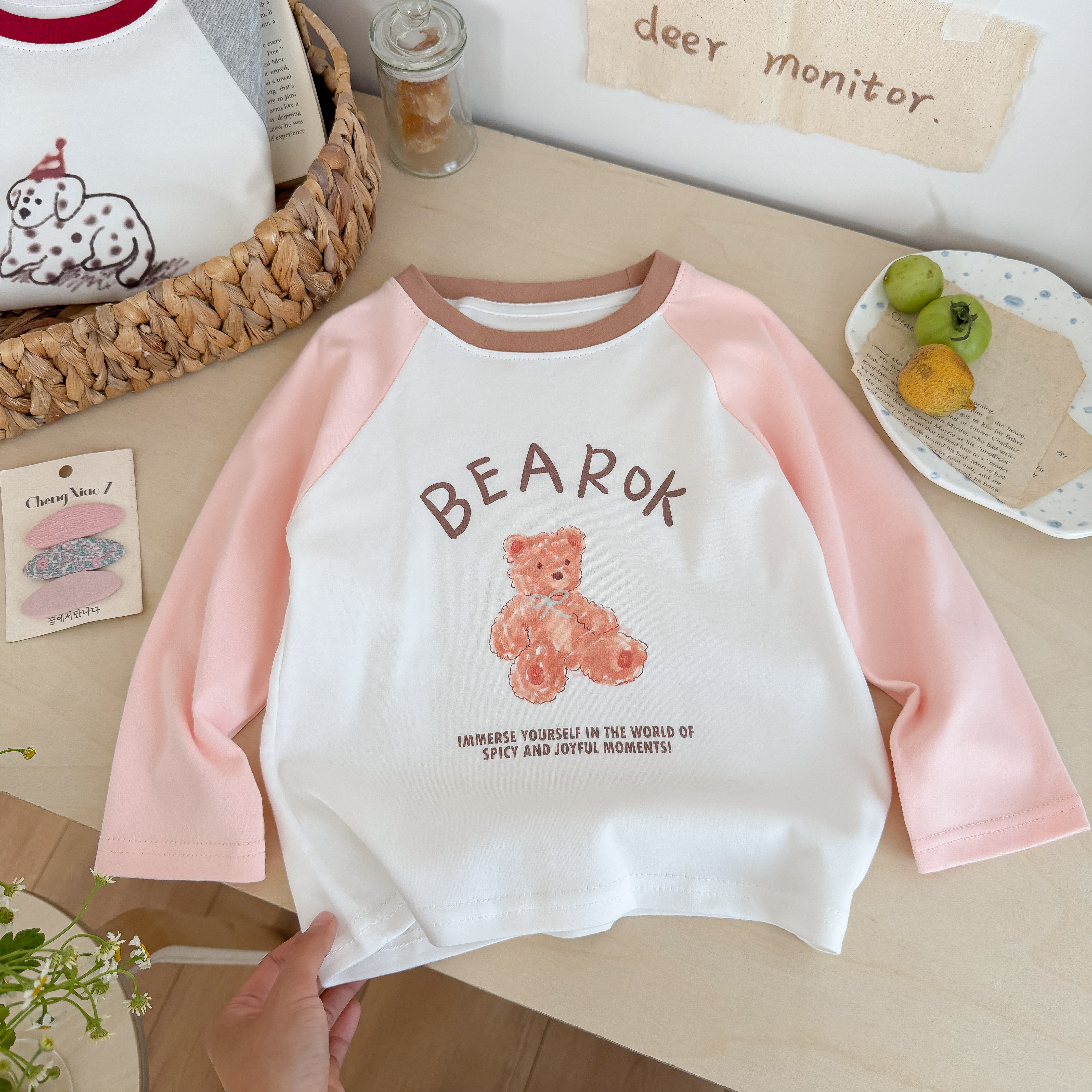 🐻 浅粉 + 米白温柔撞色,软萌小熊印花,配 “BEAROK” 字样,可爱又治愈!