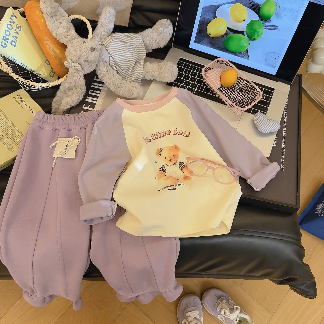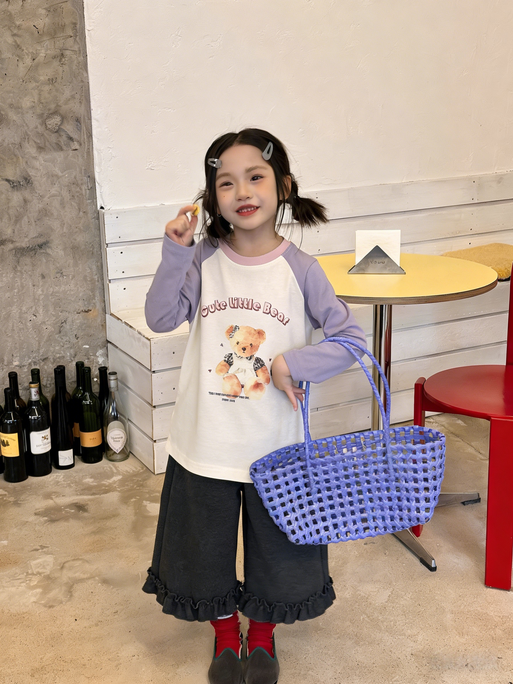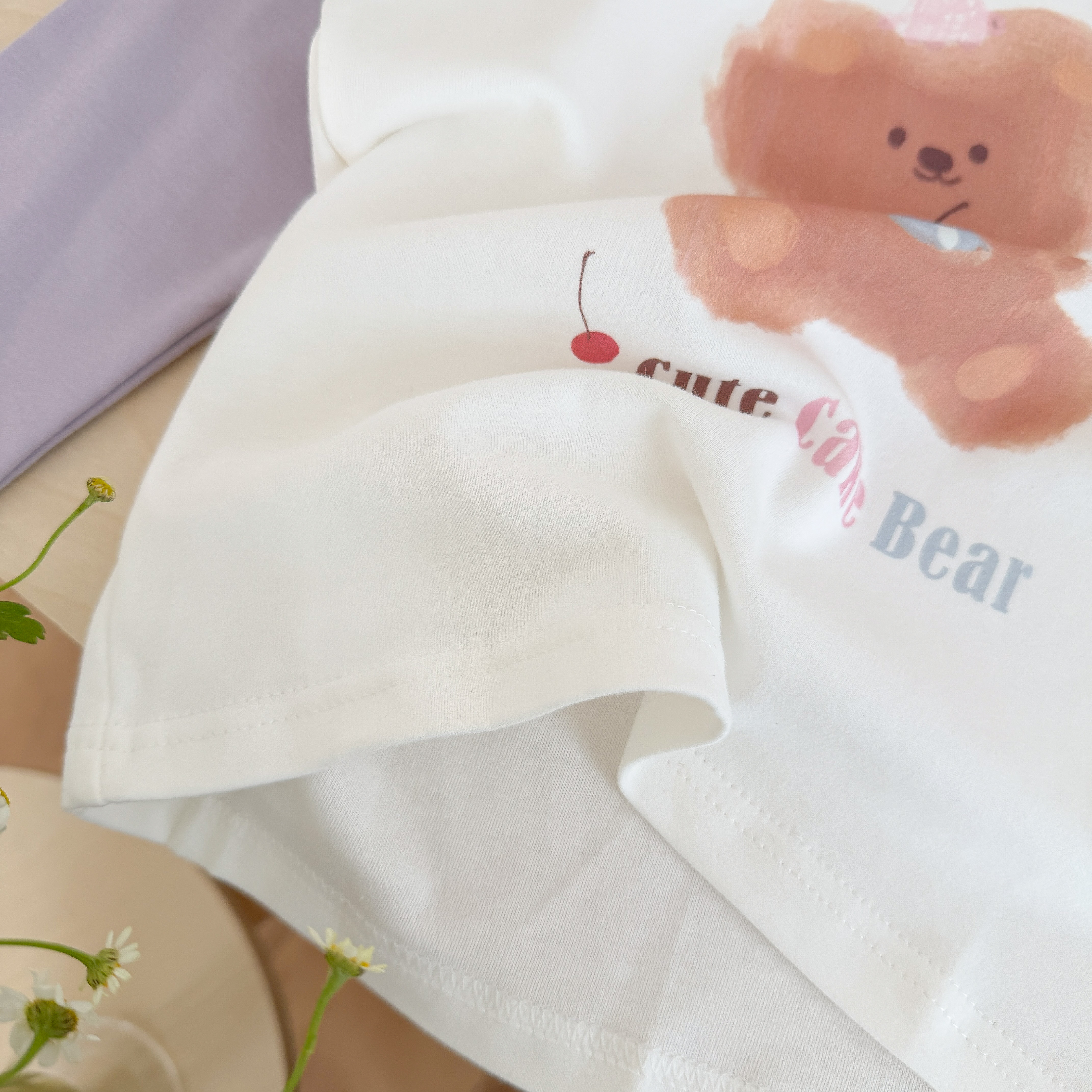 💜 温柔紫白撞色,背带裤小熊 +“Cute Little Bear” 字样,清新女童款!