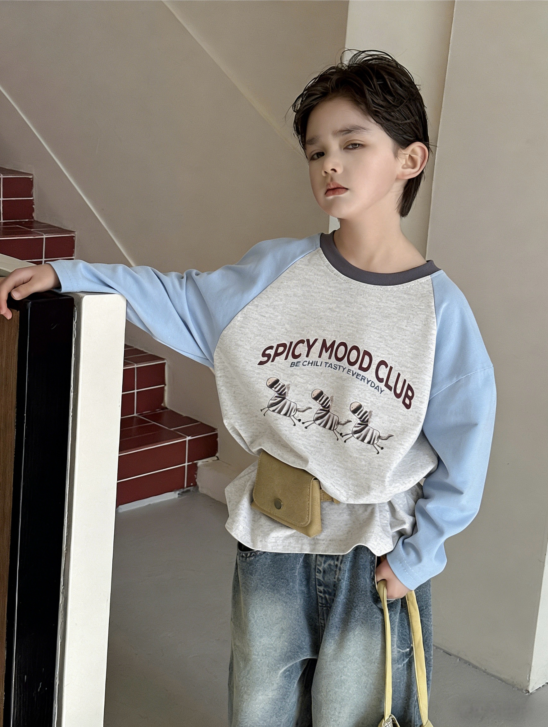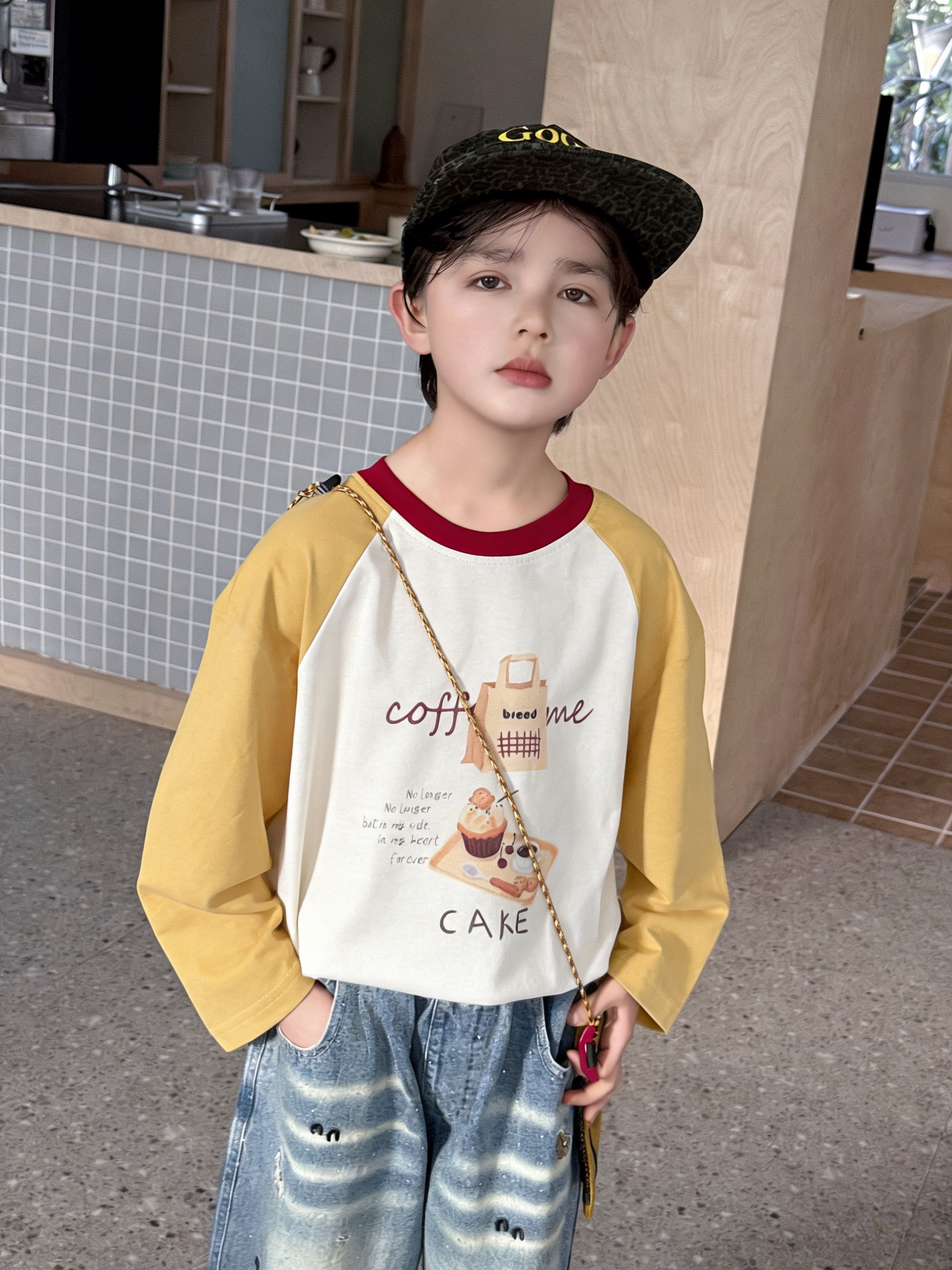 ✨ 红领撞色超吸睛,插肩袖设计不勒肩,面料透气耐洗,上学 / 遛弯都元气满满~