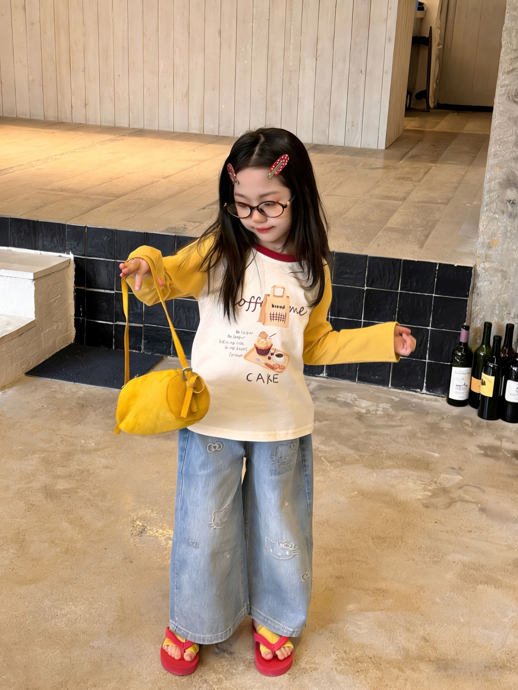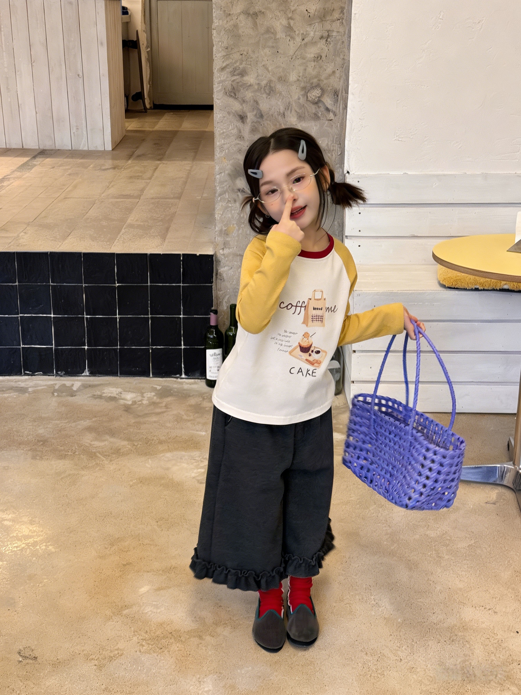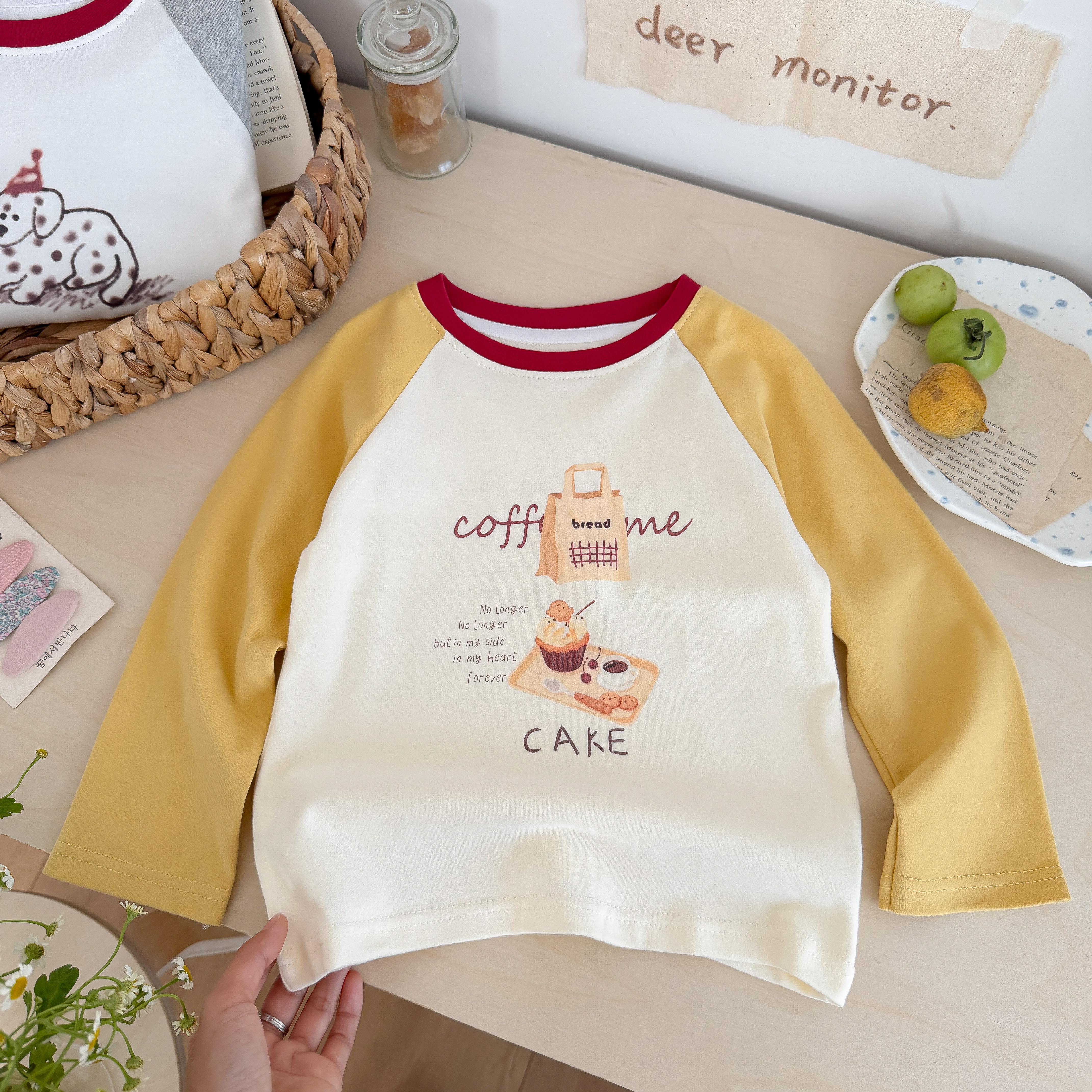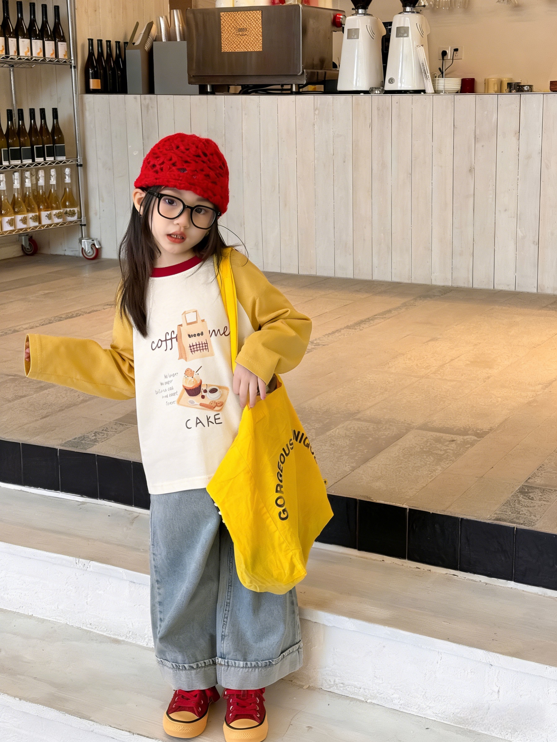 💛 暖调黄白撞色(酒红领点缀),咖啡 + +“coffee me” 印花,文艺女童款!