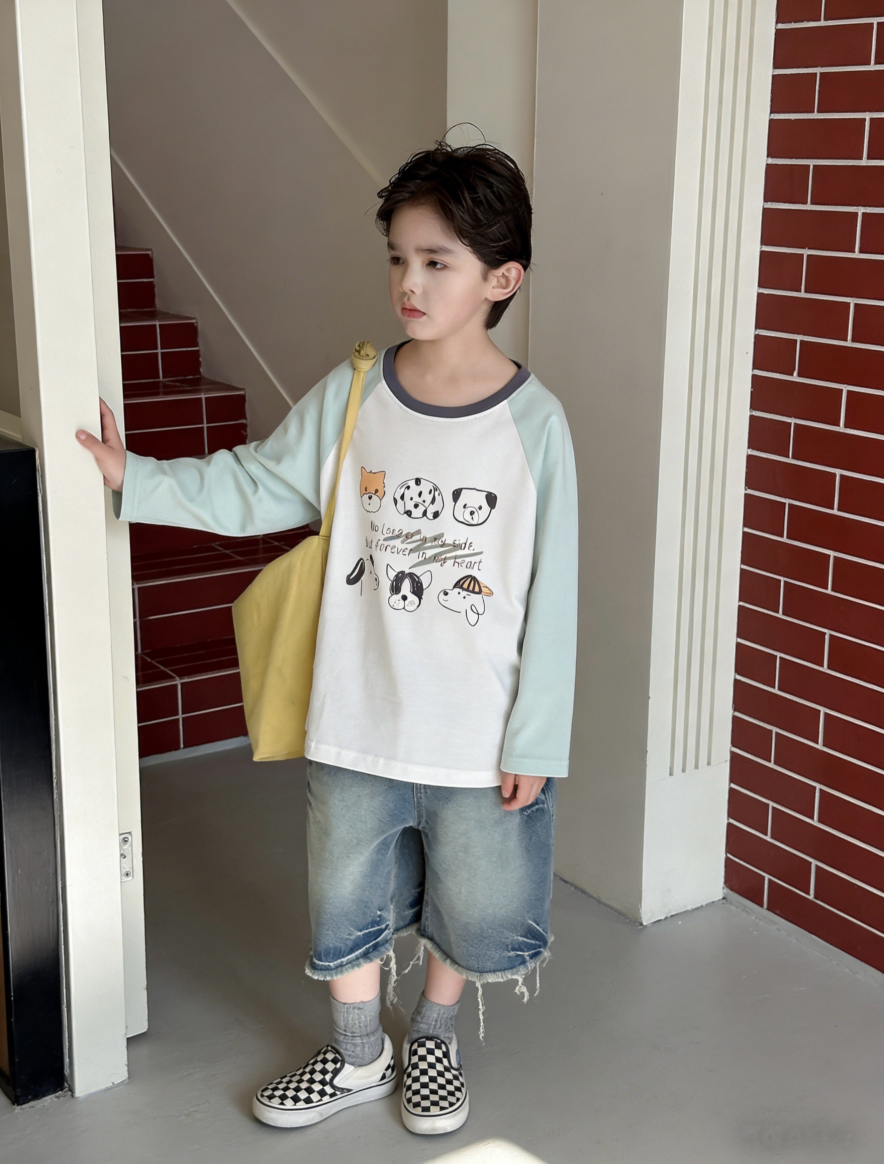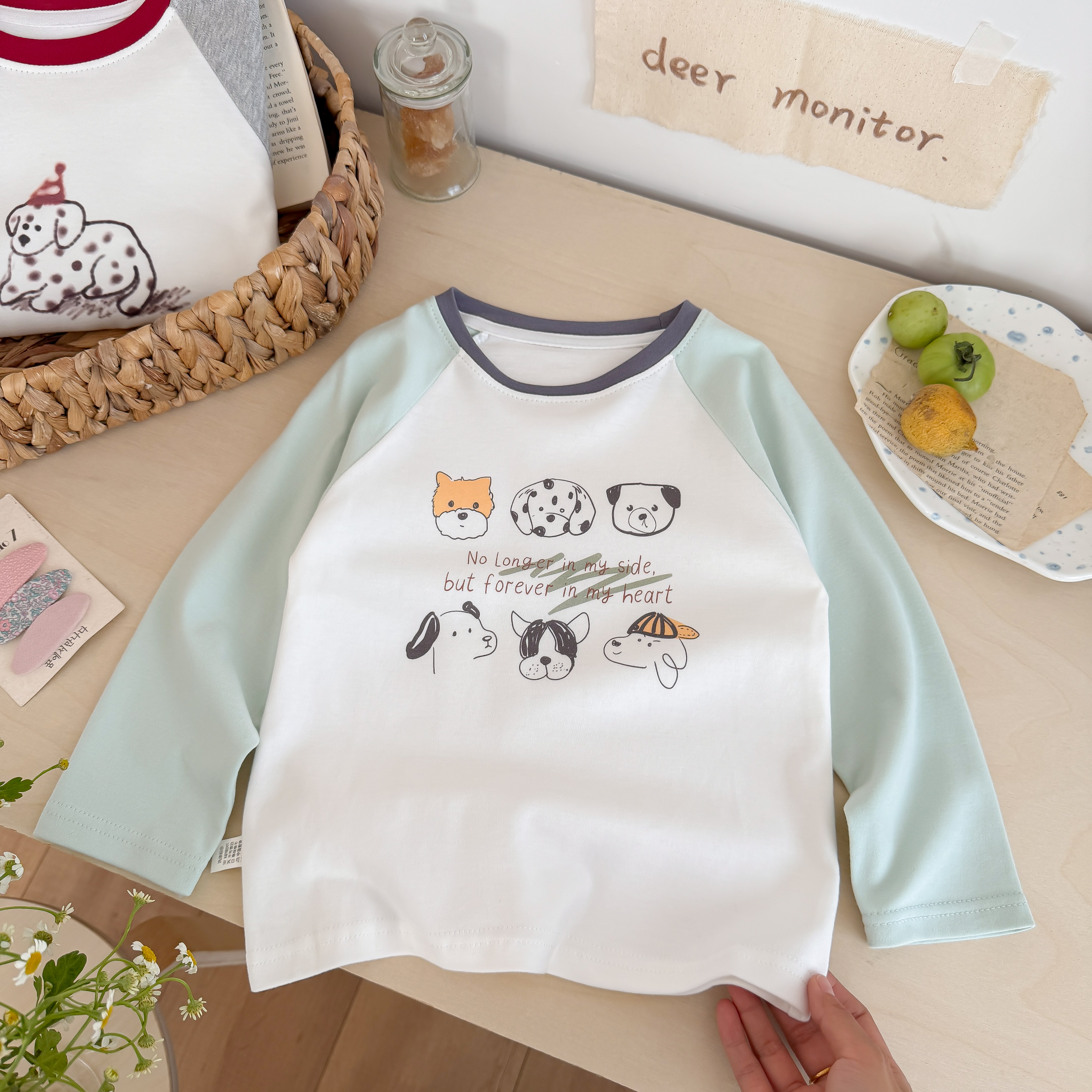 💚 清新浅绿白撞色,六只可爱小狗头像 + 治愈英文,男女童通吃款!
