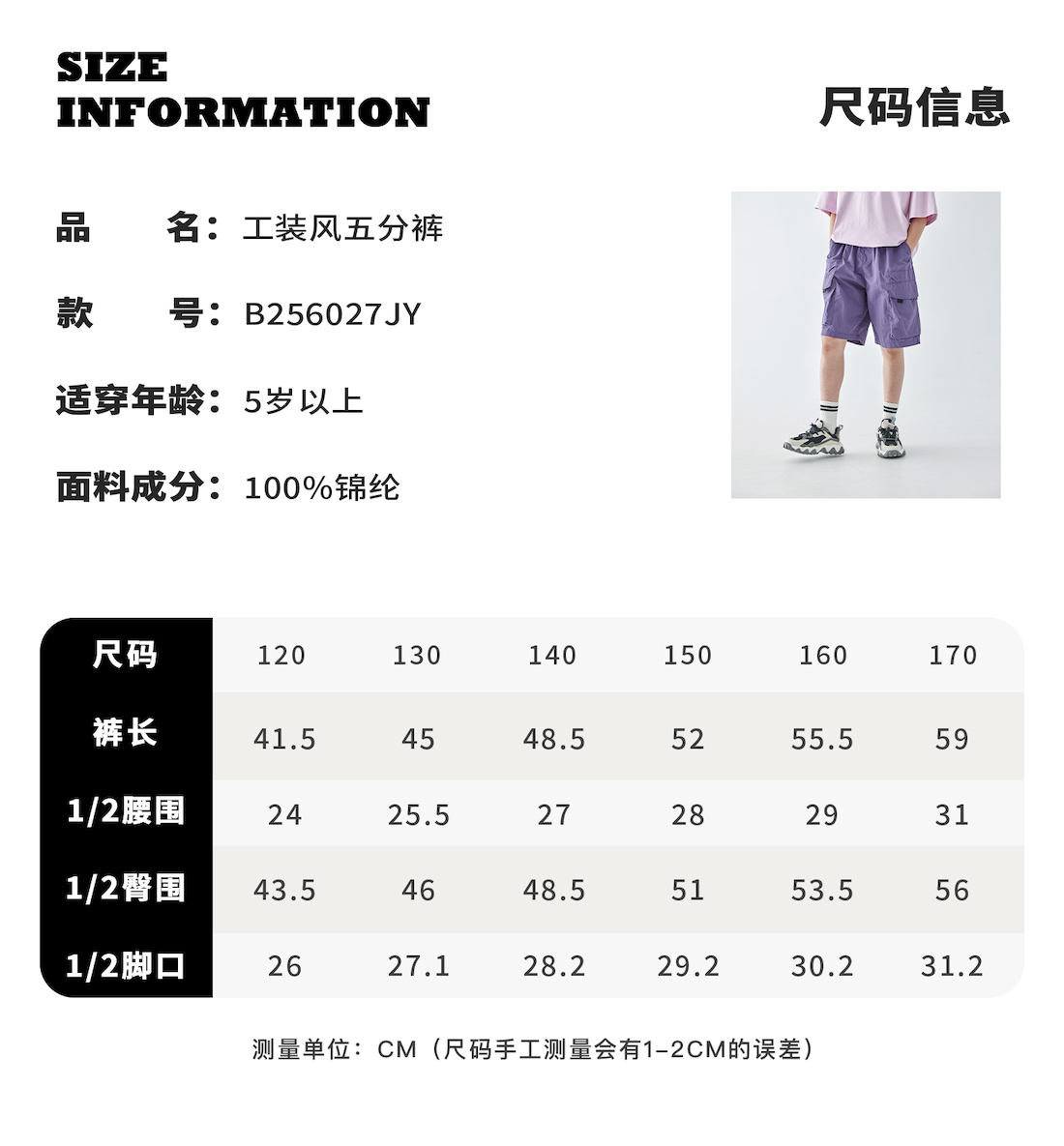 【代发】男童工装风五分裤 蓝汽水夏季山系户外轻薄短裤立体感工装大口袋亲子直筒裤紫色/深咖色