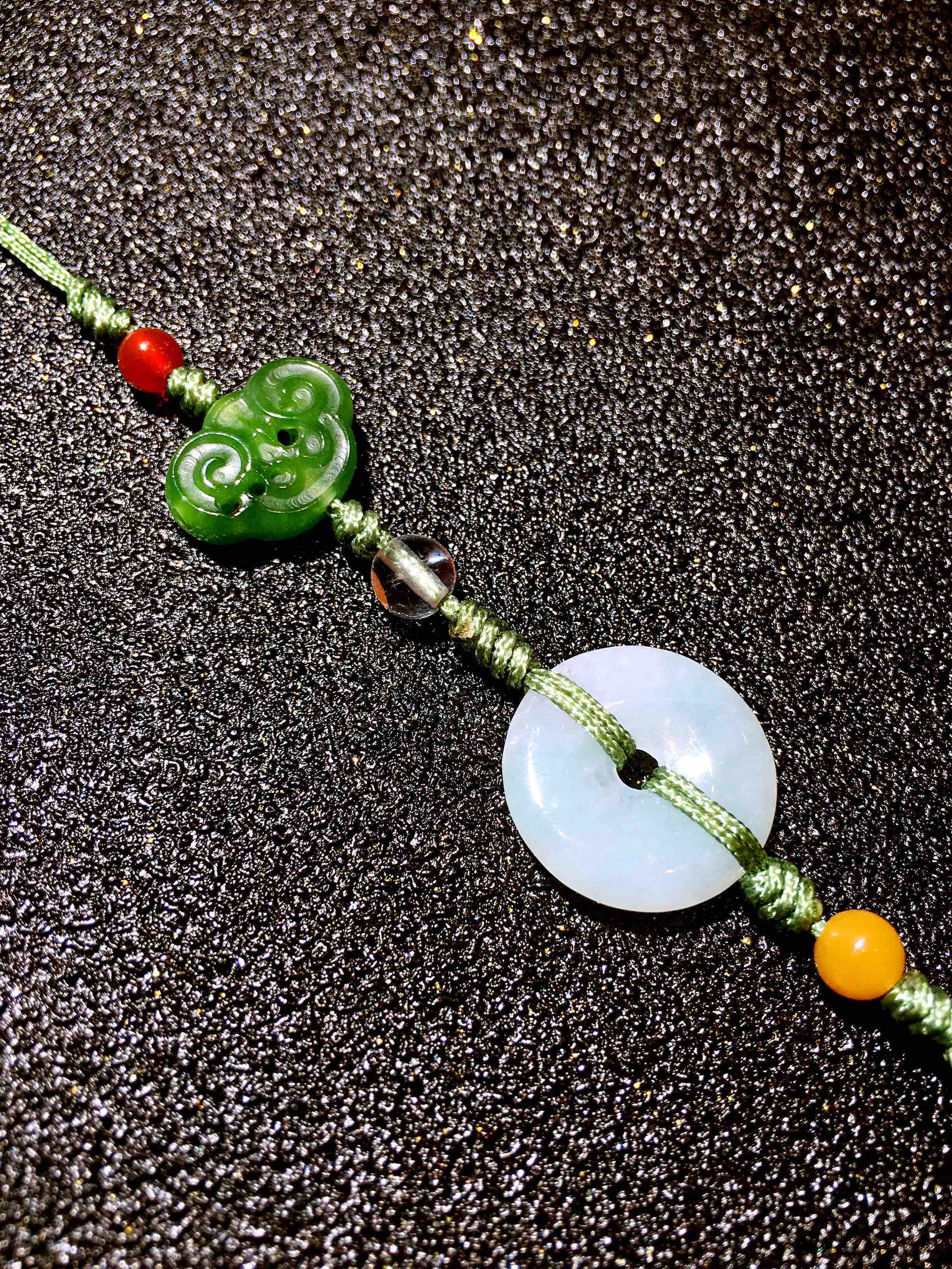 原创定制款翡翠平安扣高档冰丝流苏挂件包包手机汽车挂件汉服旗袍