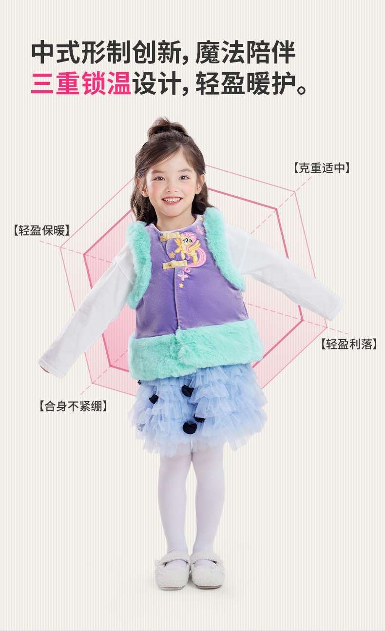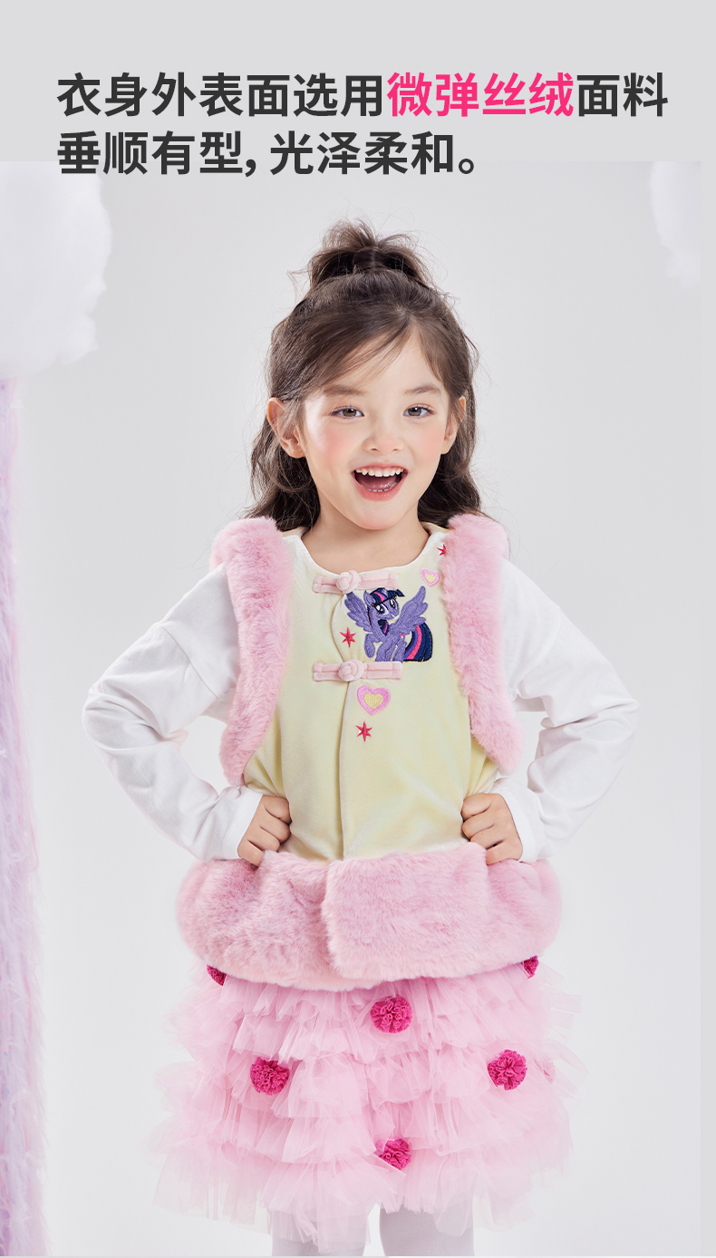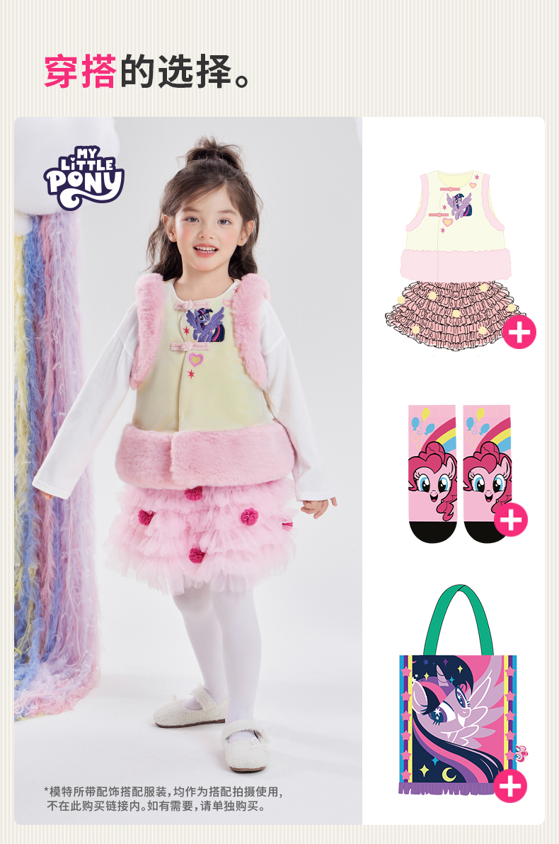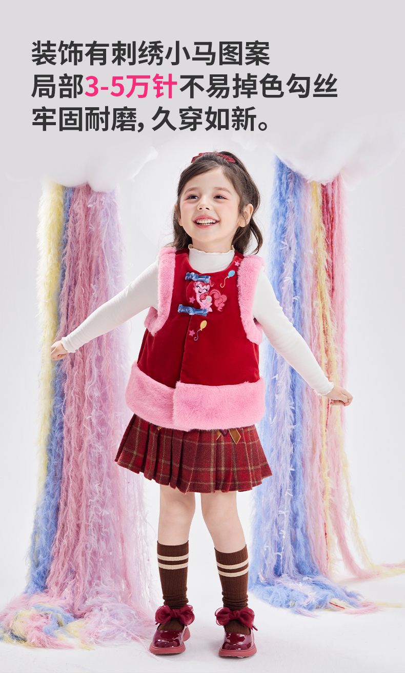 小马宝莉联名年衣马甲秋冬新款女童卡通中式拼接小马宝莉拼接马甲