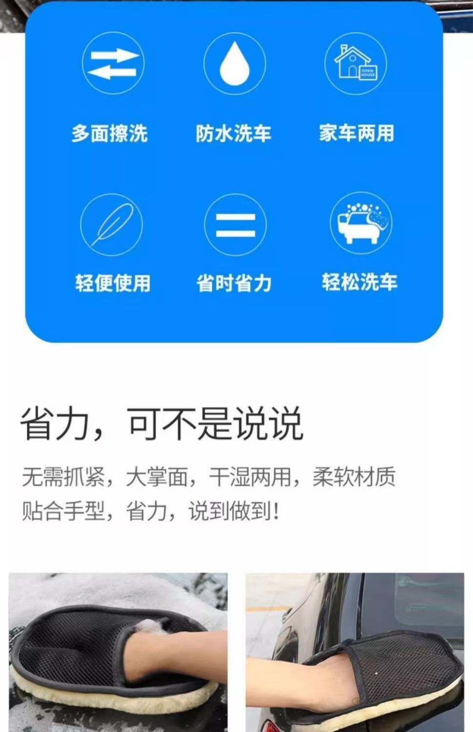 洗车手套毛绒羊毛工具抹布熊掌不伤漆面擦车巾专用泡沫棉海绵毛巾