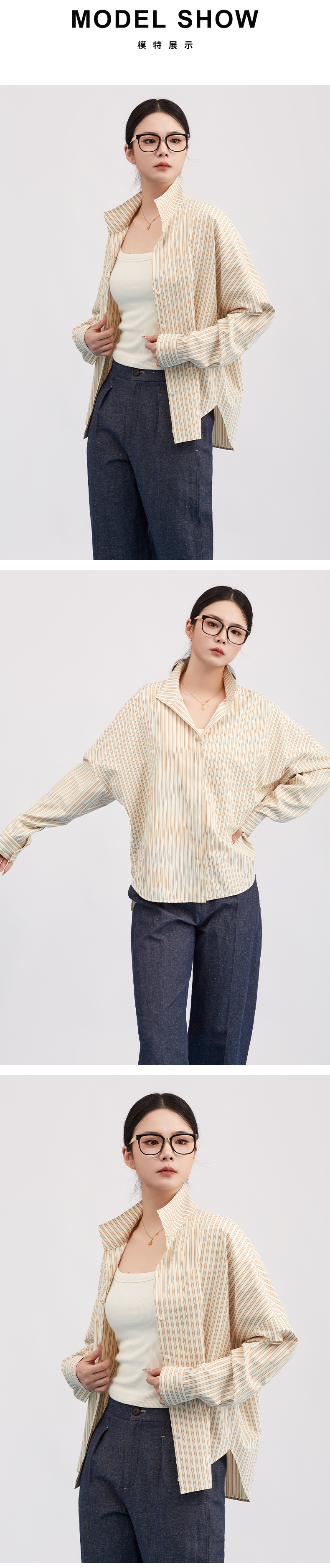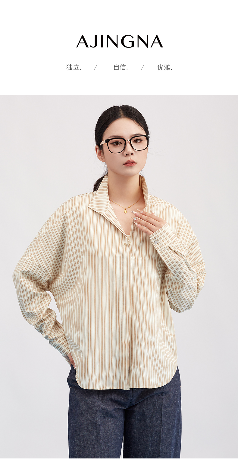【商场同款】阿菁娜春季新款设计感条纹衫半开襟可翻可立实用与元气感兼具A31C109035