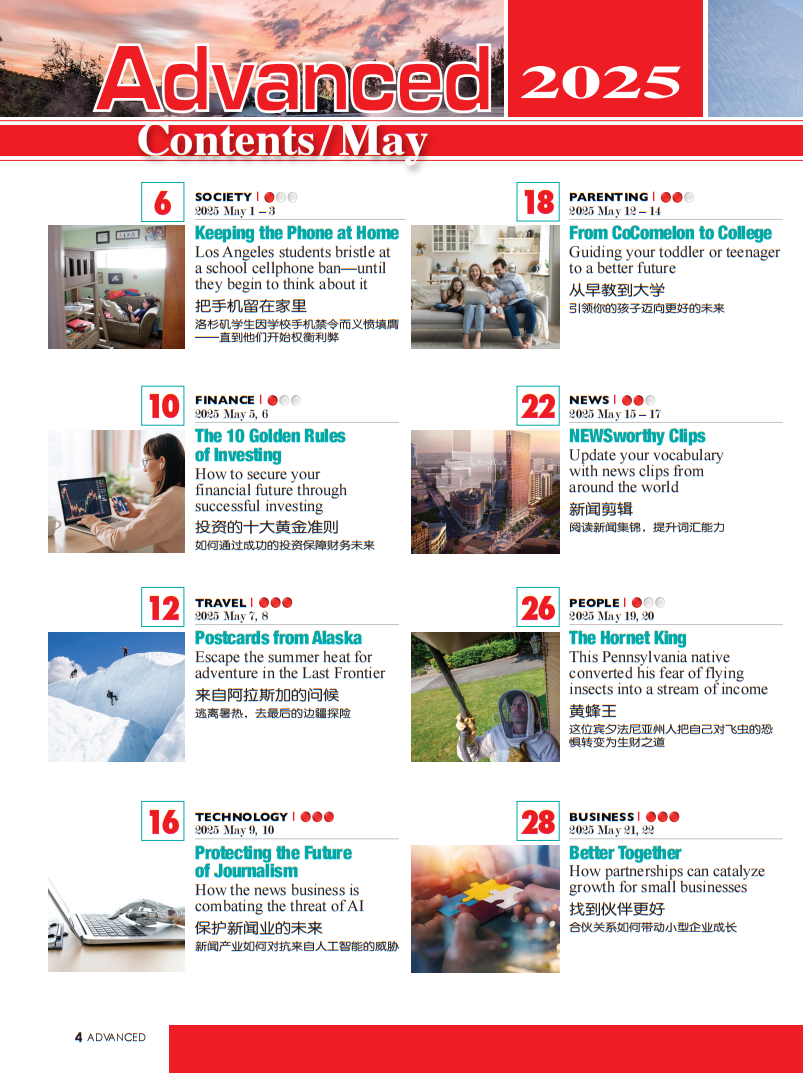 2025年第4~6期新刊,每期1本,赠送价值49元的单月视频会员权益,初级和中级赠送对应等级单月视频课会员,高级杂志暂无配套视频,可从初级或中级课程中选择。