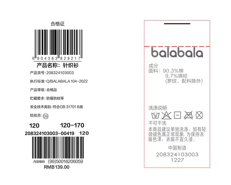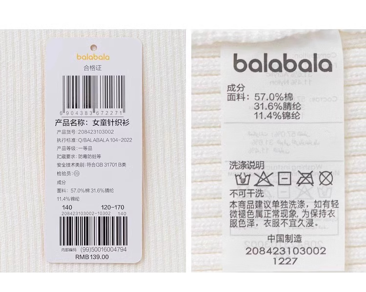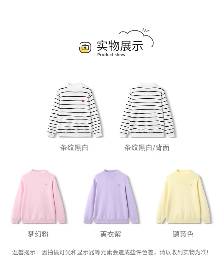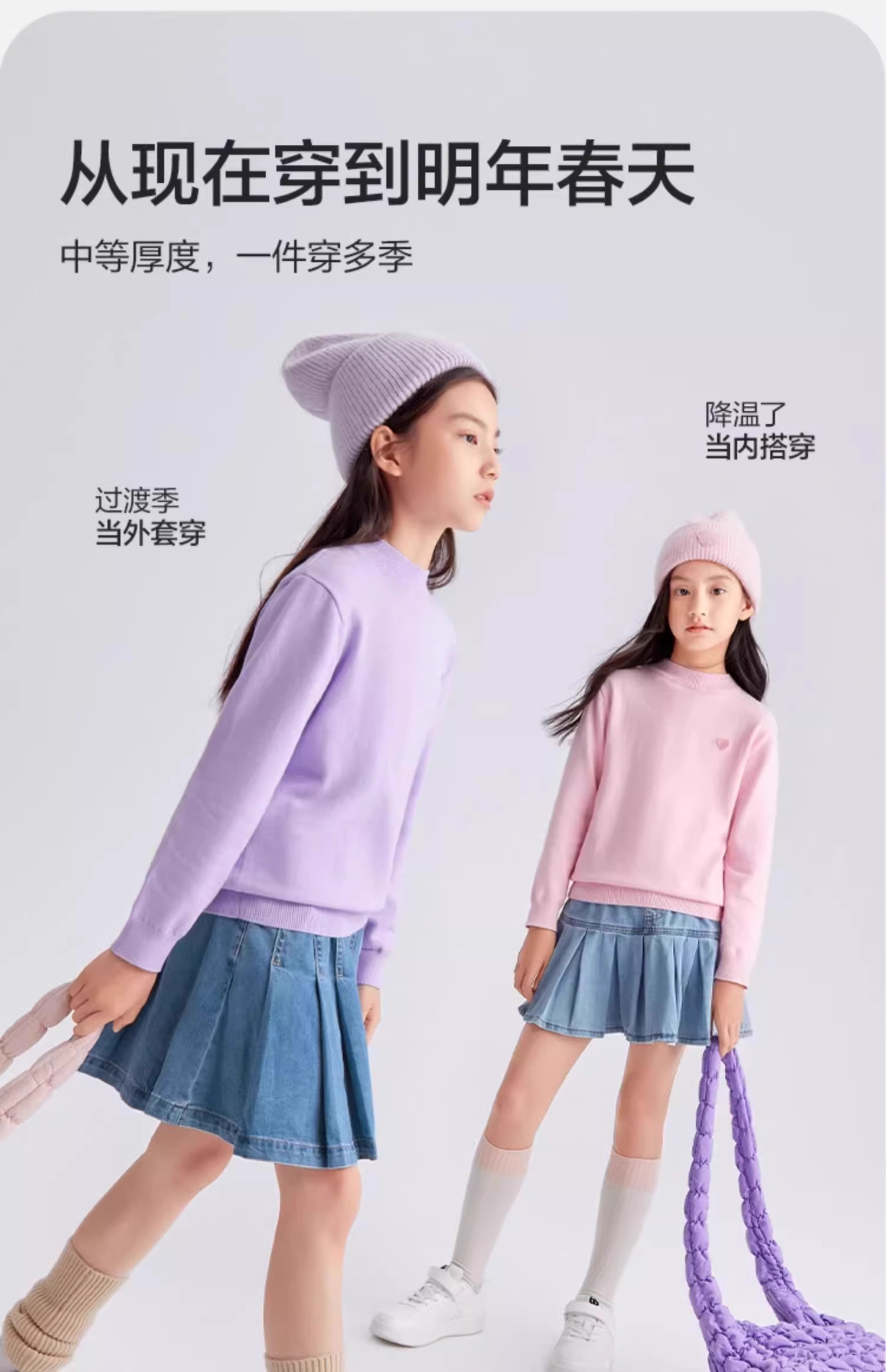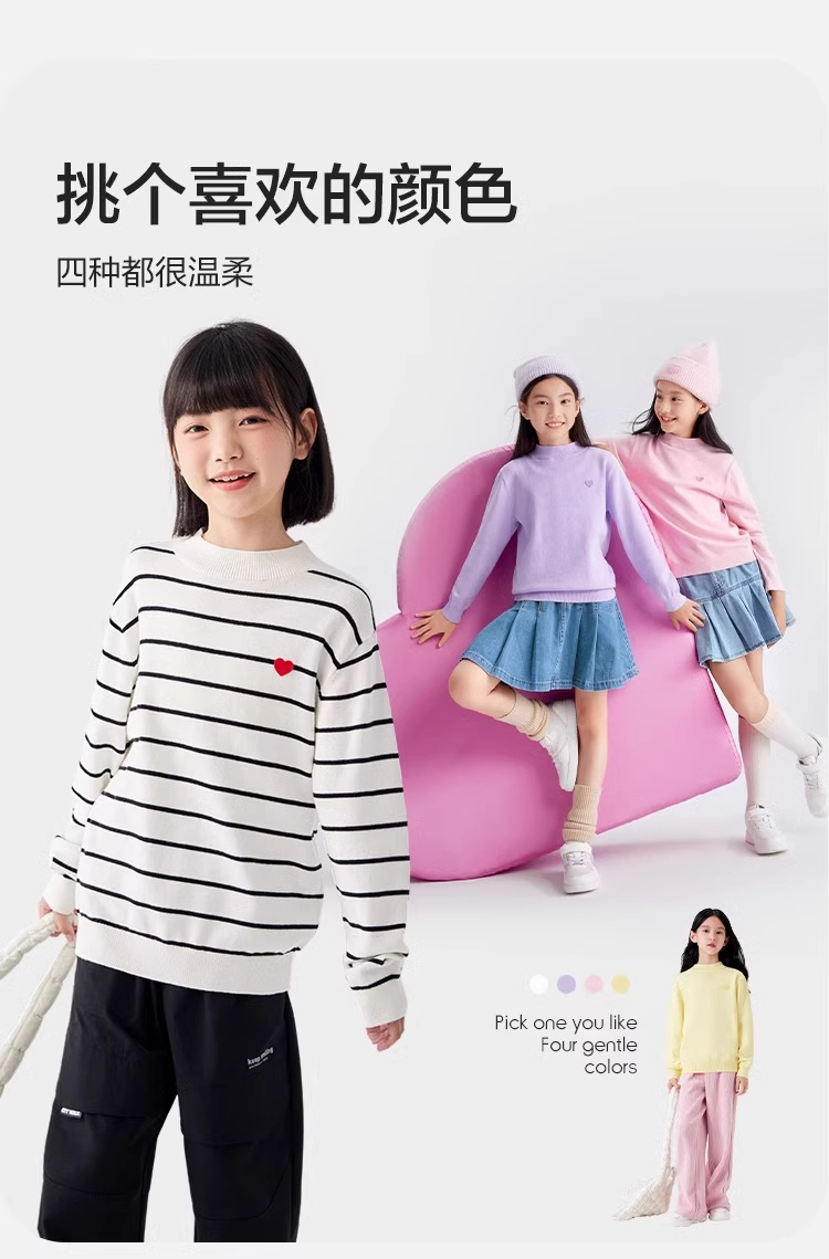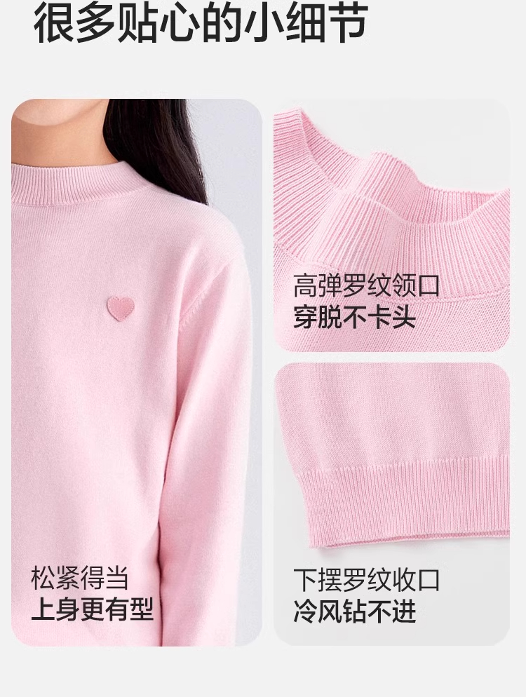 巴拉巴拉儿童打底衫女童秋冬针织保暖中大童打底套头毛衣洋气