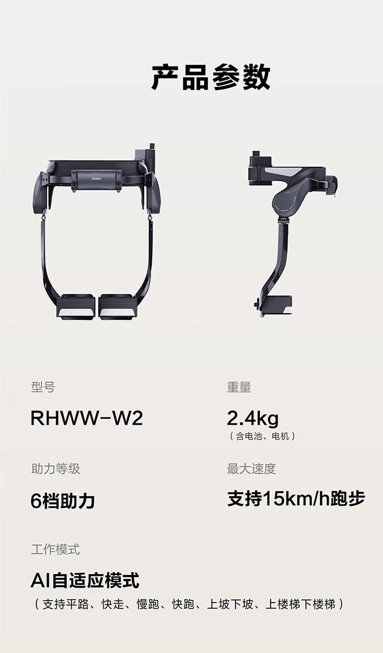 海尔(Haier)海尔外骨骼行走助力器老年人辅助康复户外爬山徒步燃脂登山运动AI可穿戴助力机器人海尔官方正品 W2(户外运动/爬山助力)