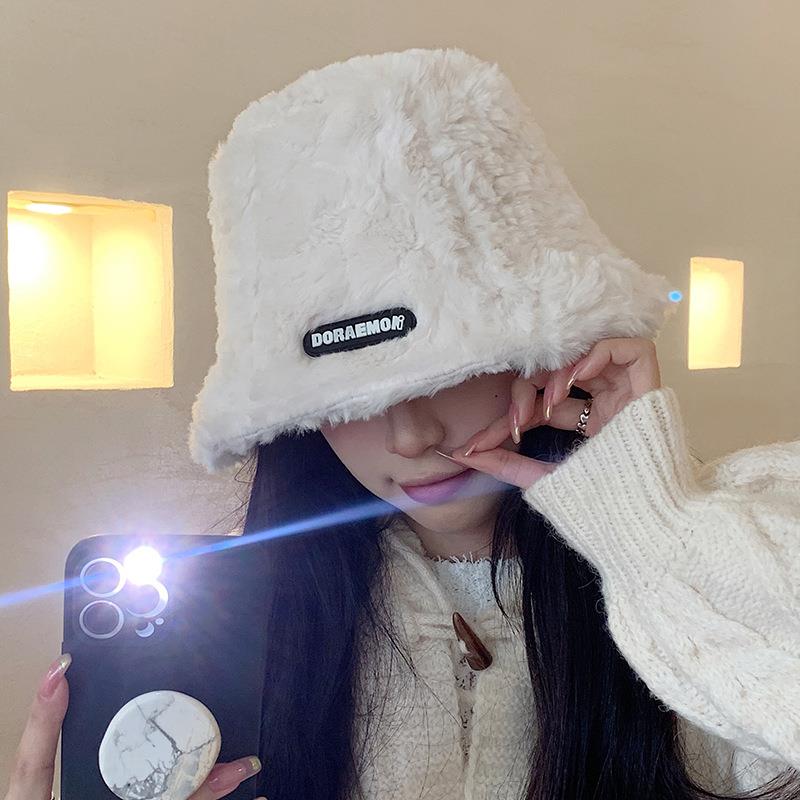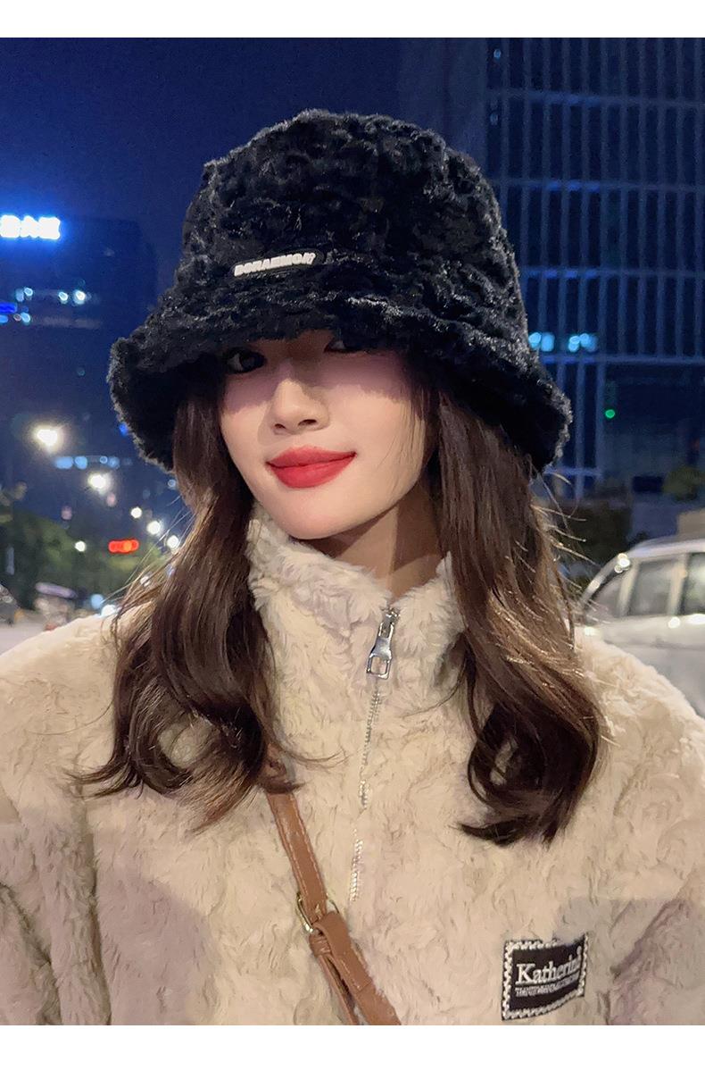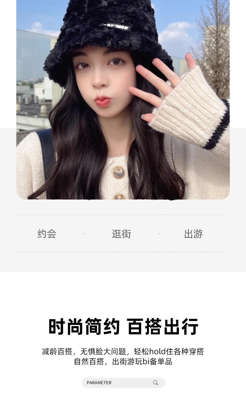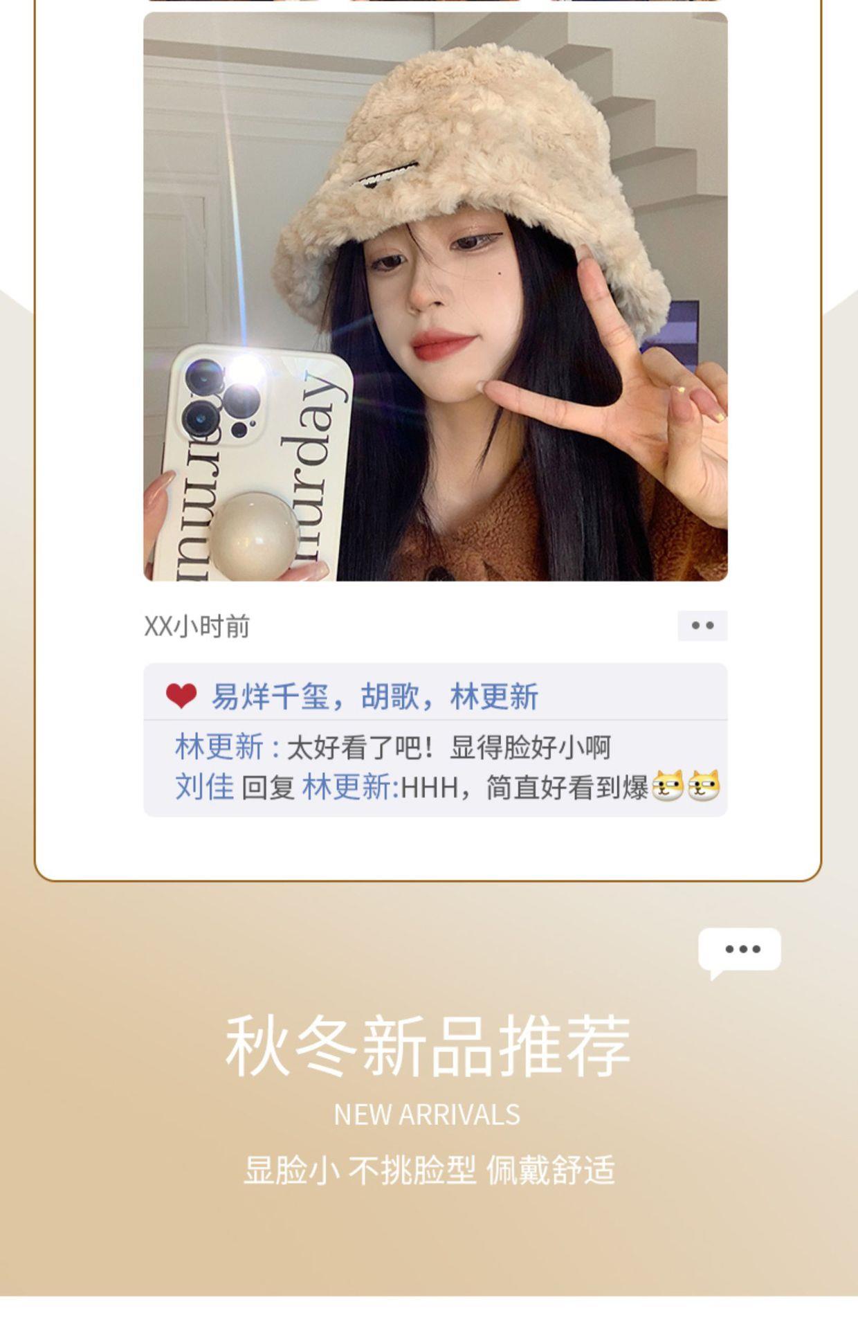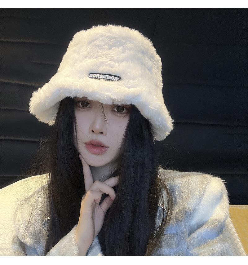2023新款百搭毛绒渔夫帽女秋冬季可爱保暖盆帽显脸小水桶帽
