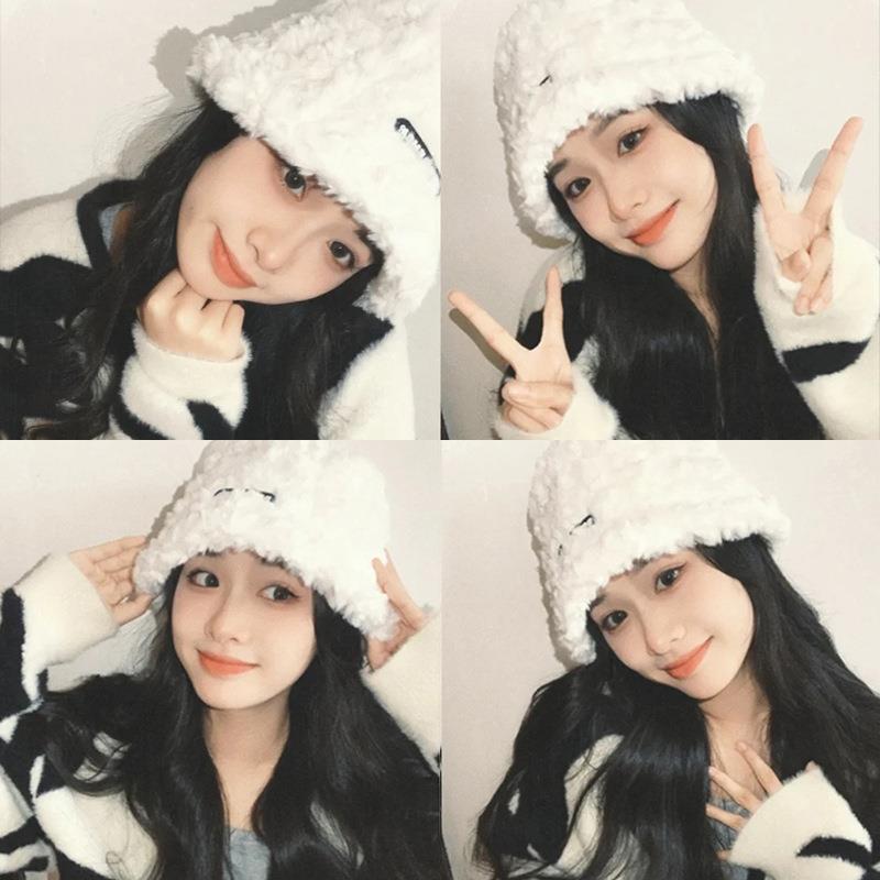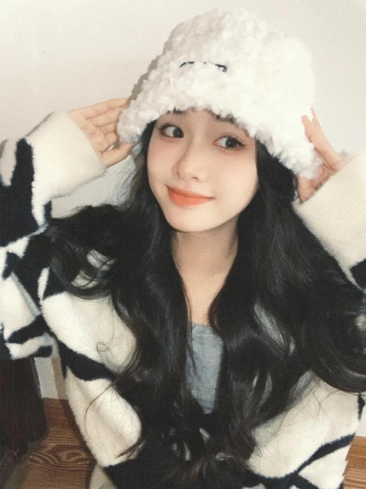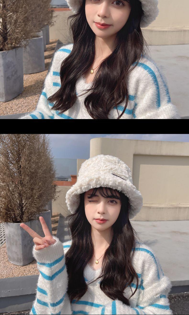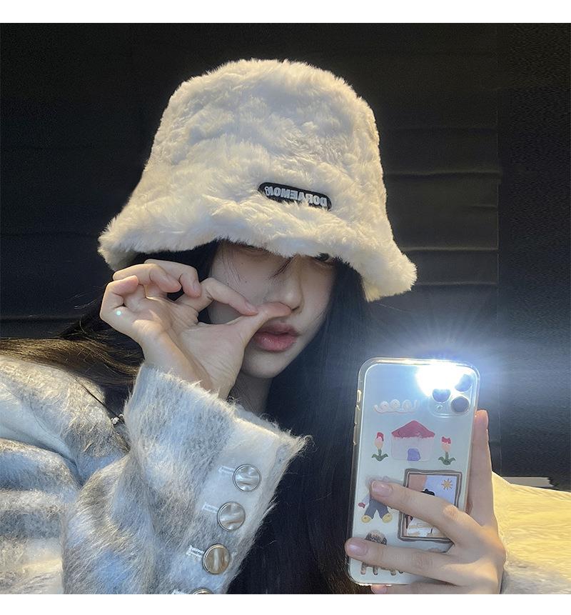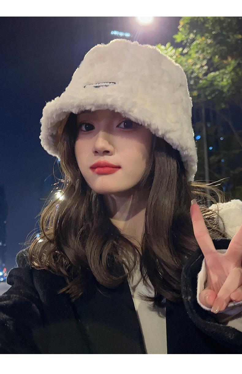 2023新款百搭毛绒渔夫帽女秋冬季可爱保暖盆帽显脸小水桶帽