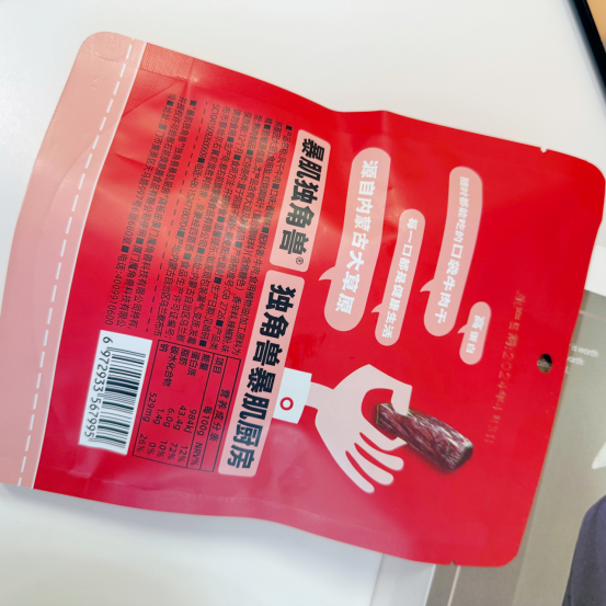 包装设计,方便携带。一次一根,既方便携带又卫生安全,是你外出旅行、办公室加班的必备良伴。 无论你是健身人士♂需要补充蛋白质,还是上班族需要解馋减压,甚至是游戏🎮玩家需要磨牙提神,暴肌独角兽口袋牛肉干都能满足你的需求。它是你生活中的得力助手,陪伴你度过每一个重要时刻。