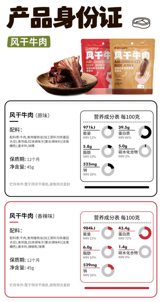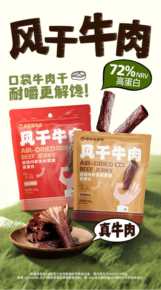 🛒【暴肌独角兽风干牛肉】🌸1、暴肌独角兽坚持0添加淀粉、0添加香精和0添加防腐剂,🔺力求为消费者呈现最纯粹的口感🏕️