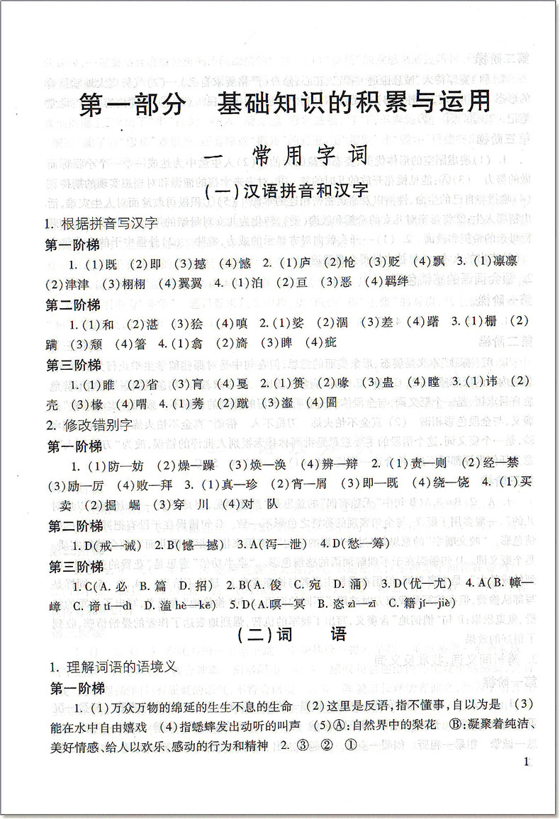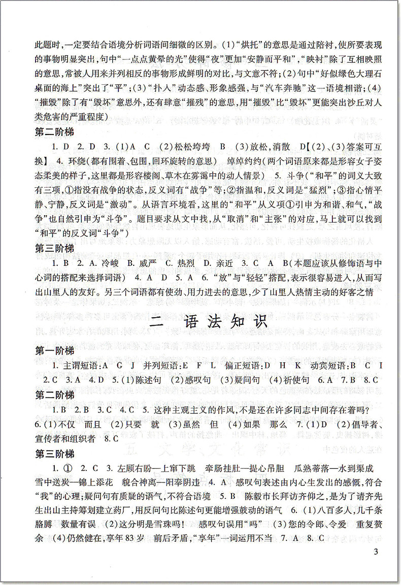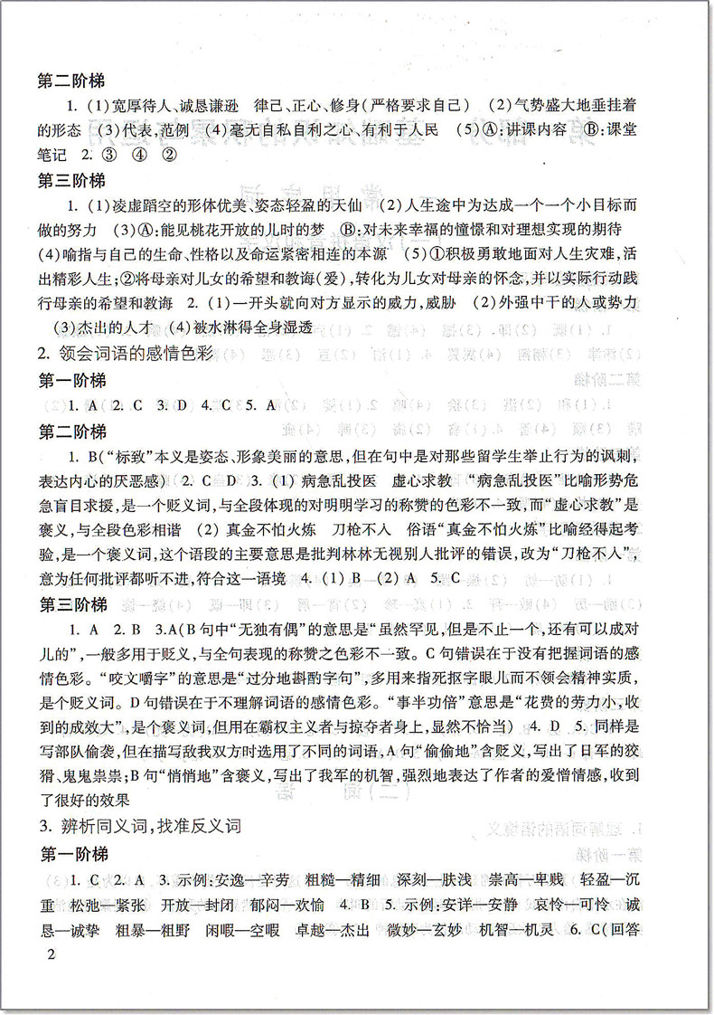 2021届新版 初中语文教与学 阅读 参考答案 光明日报出版社 仅答案