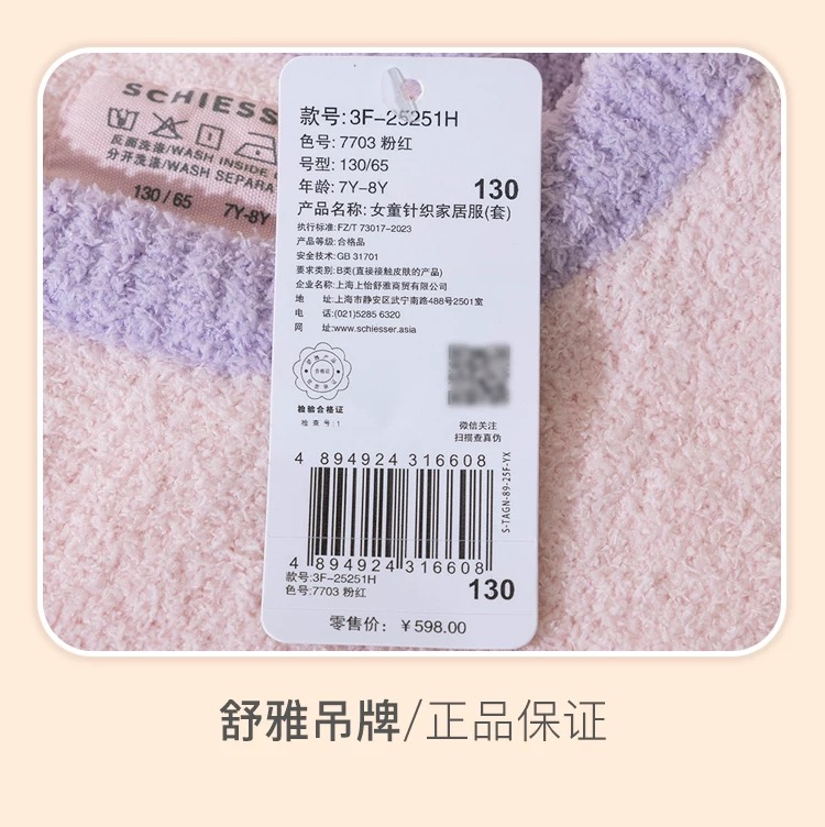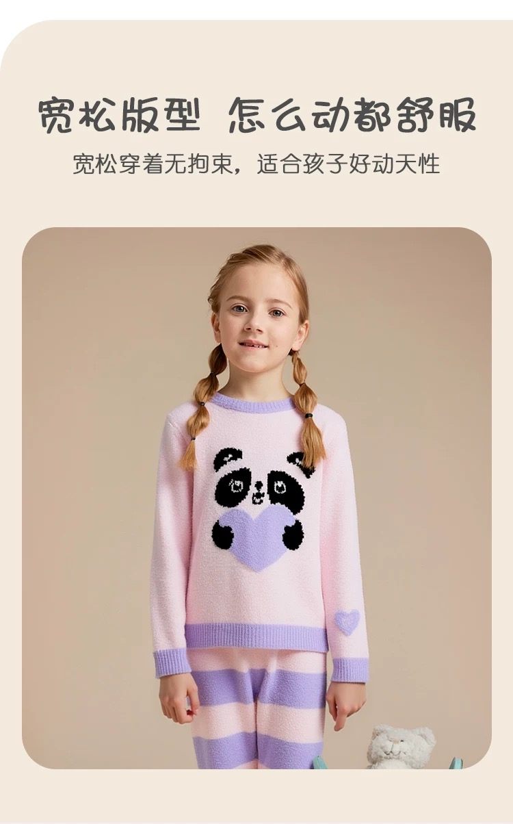 【半边绒国宝】舒雅童装女童长袖长裤家居套装半边绒纤维柔软 舒适 温暖细腻 3F/25251H