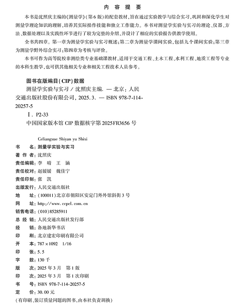 书名:测量学实验与实习