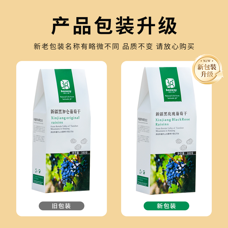 新疆黑玫瑰葡萄干 原味380g 北纬纯净食品 吐鲁番特产 人工精选 果肉饱满果形统一无果柄 脱氧保鲜