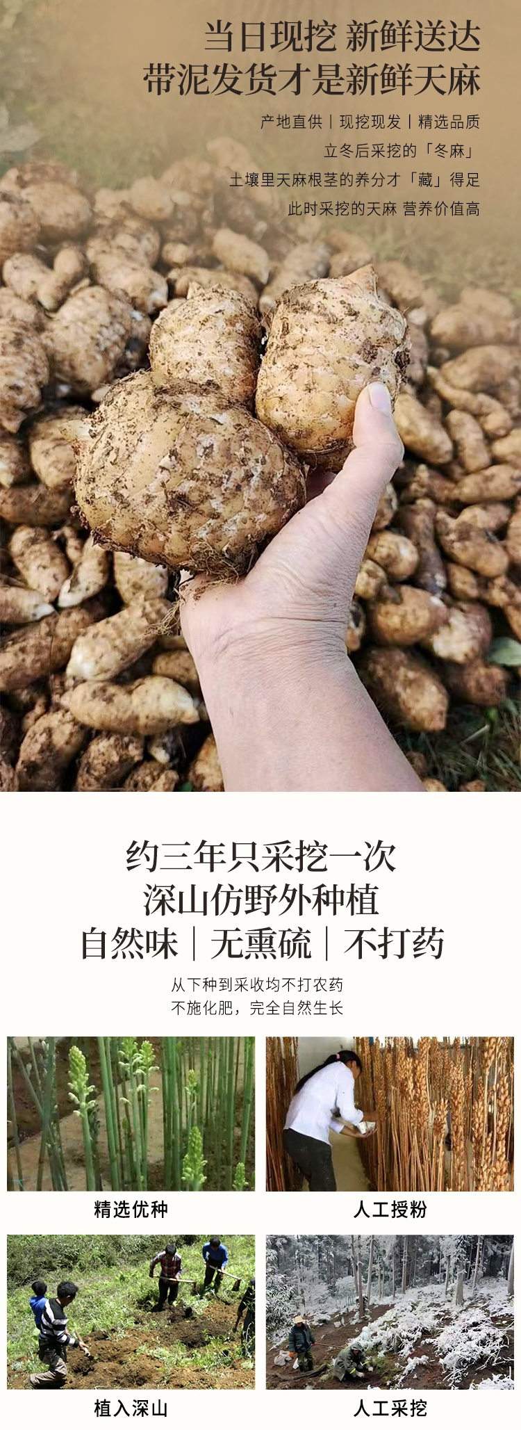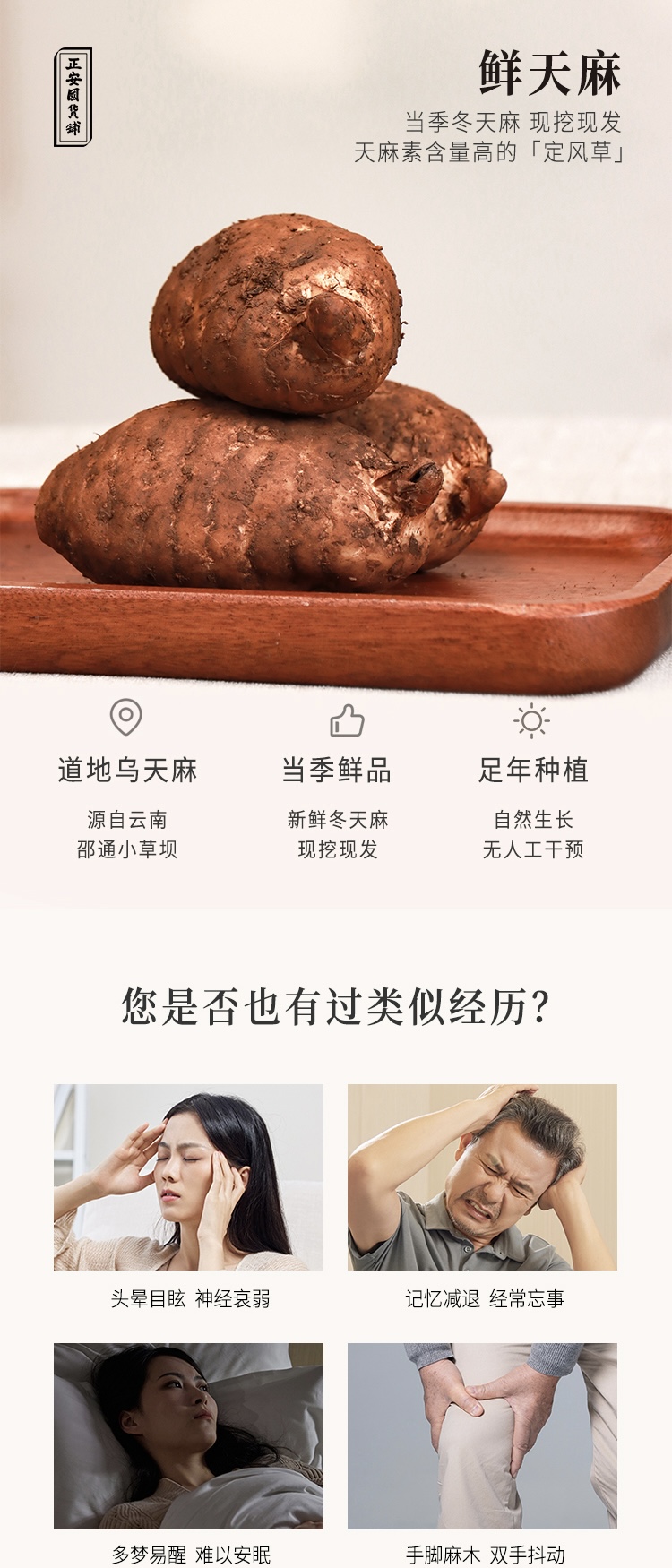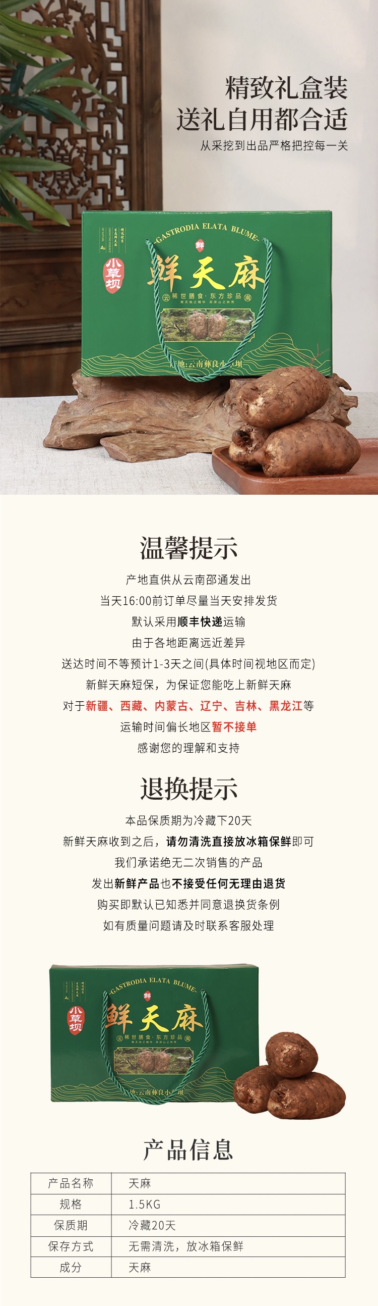 正安 云南昭通小草坝新鲜天麻 道地产区核心区现挖现发 补充头脑营养 优质原材 个头短肥肉质肥厚 1.5kg/箱【预计下单后三天内发货】【上新秒杀价-不叠加任何活动】